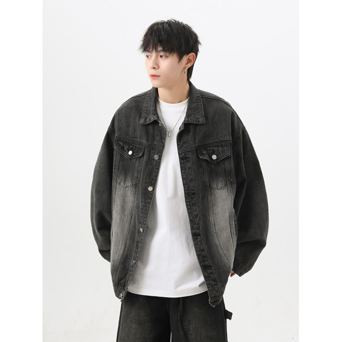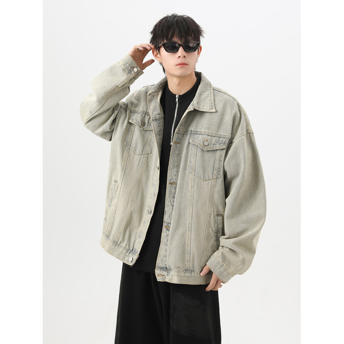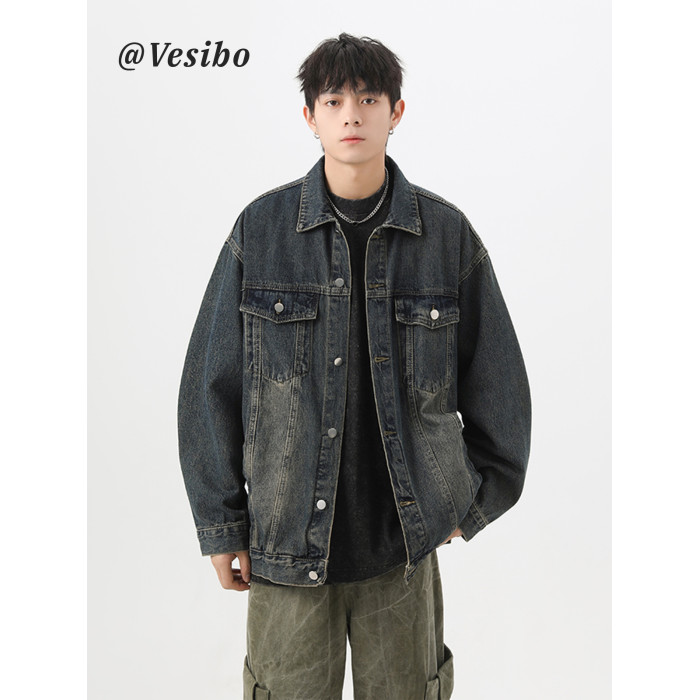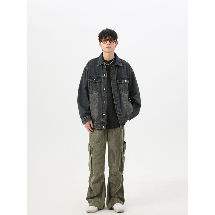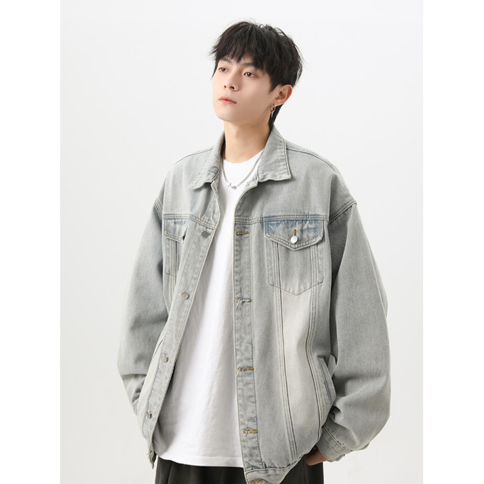 美式水洗牛仔外套男冬高街復古做舊工裝夾克潮牌百搭情侶休閒上衣