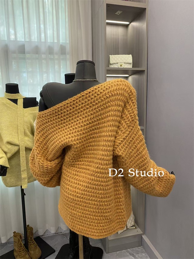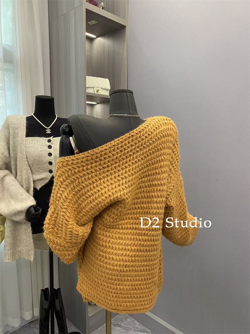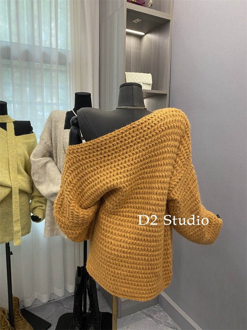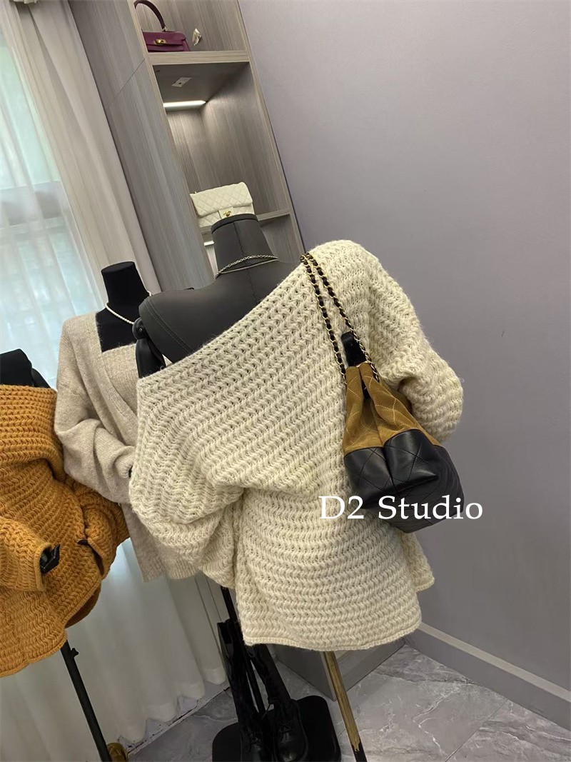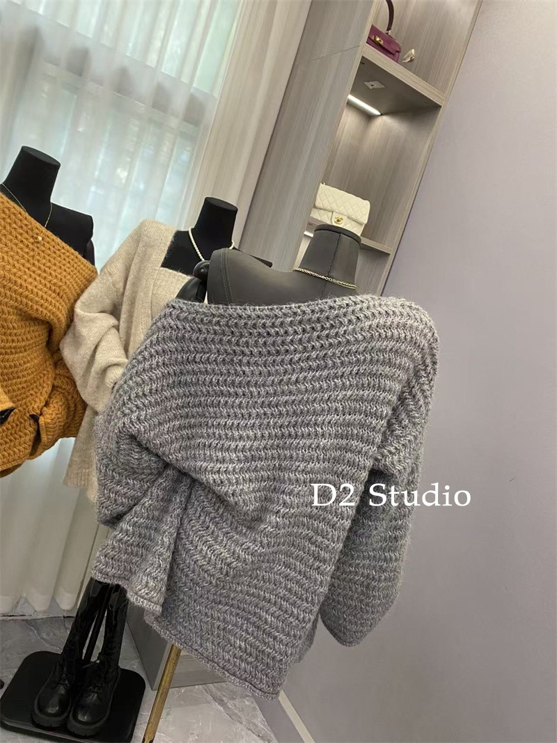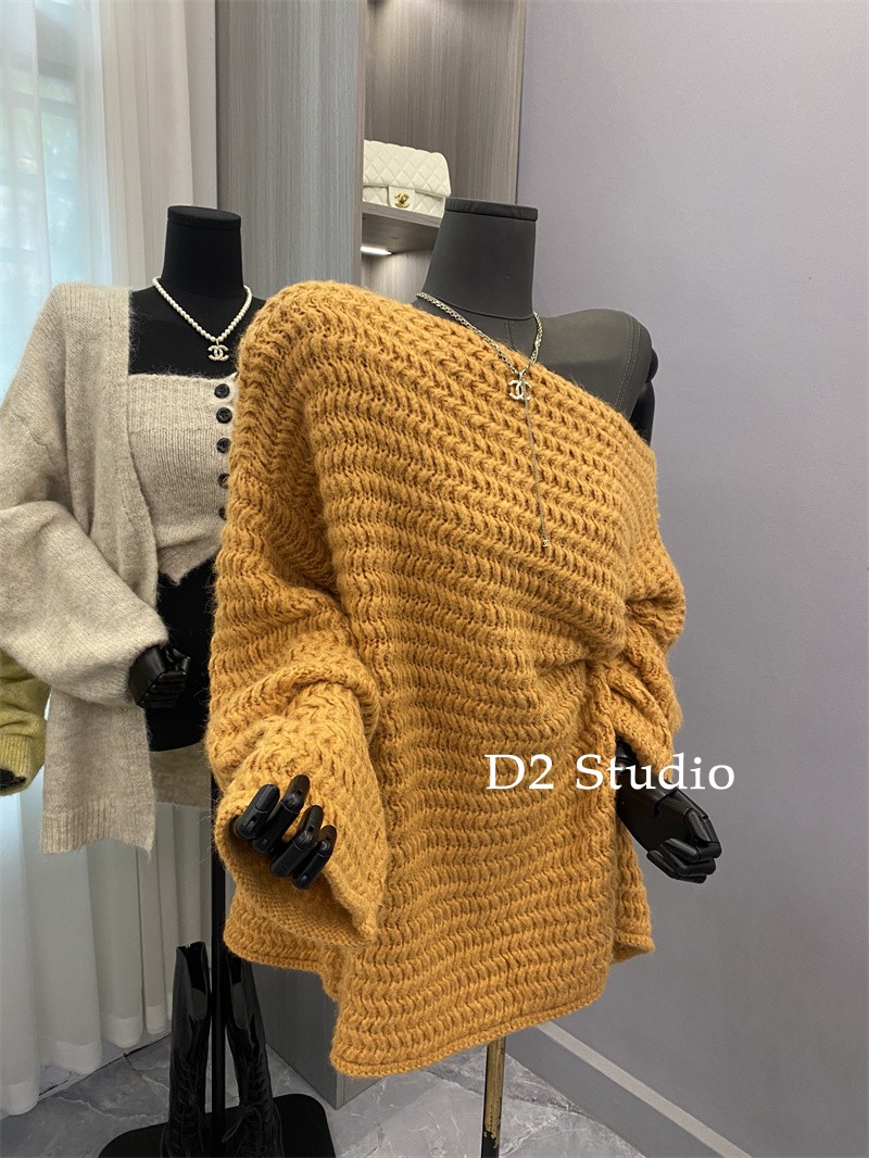 韓版慵懶風氣質斜肩長袖毛衣女秋季新款寬松顯瘦純色針織衫上衣潮