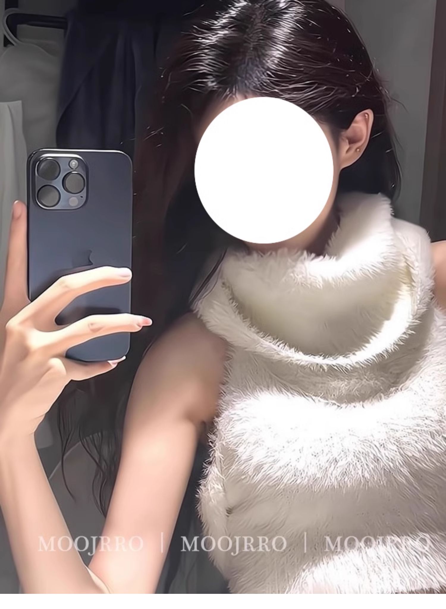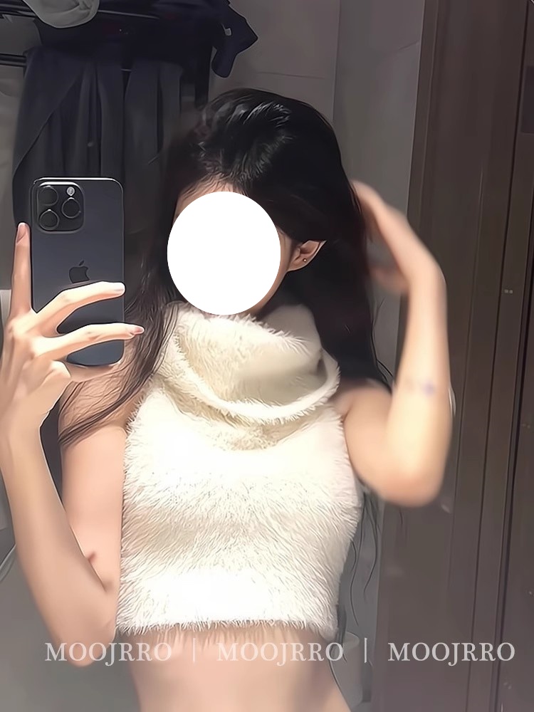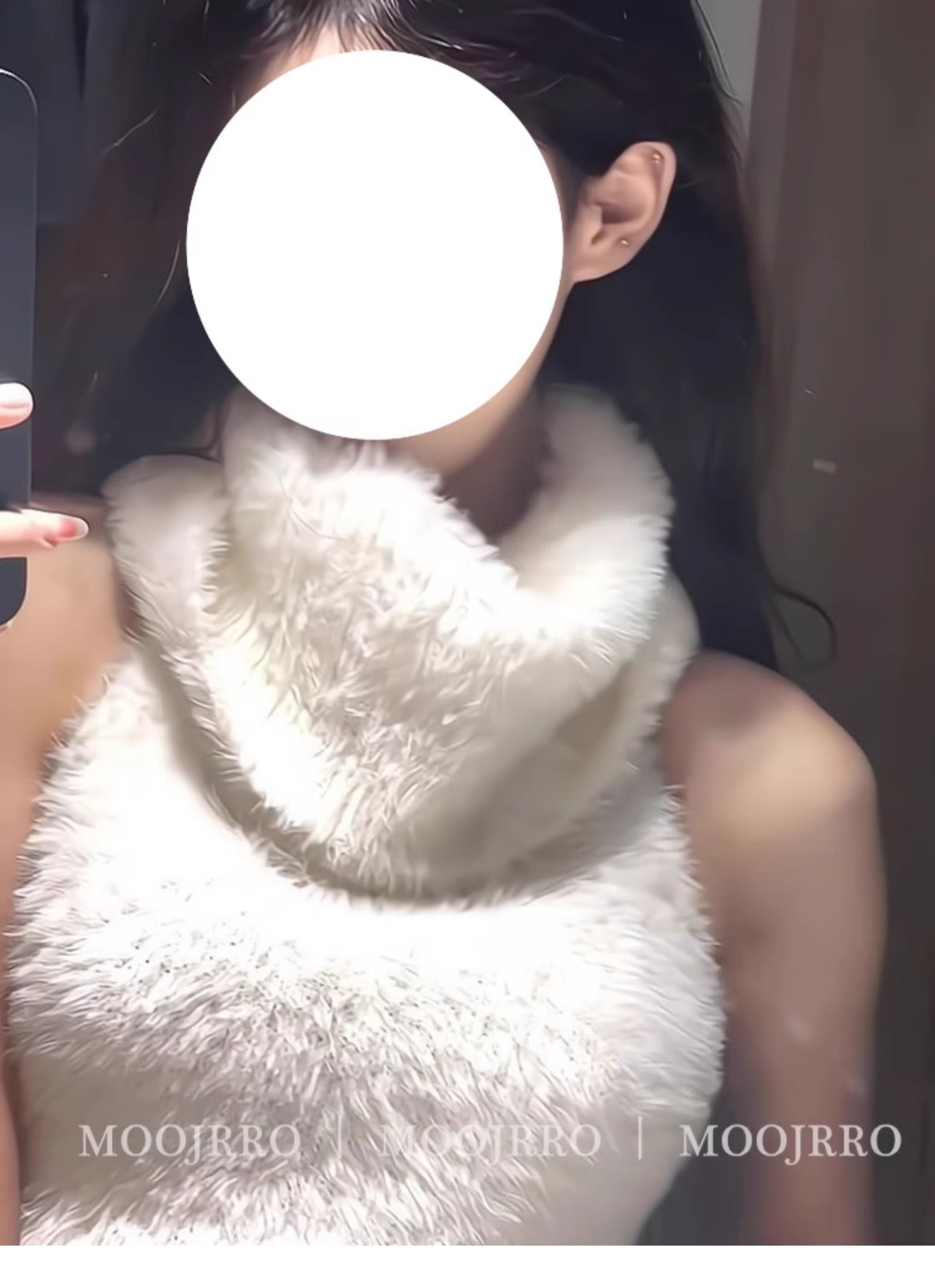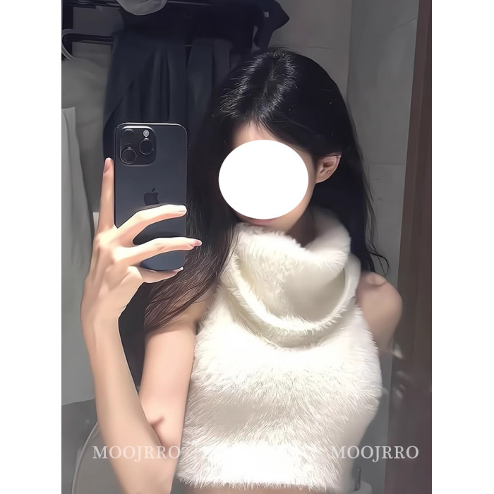 白色高領馬海毛套頭毛衣女秋季小個子慵懶風軟糯內搭短款無袖上衣
