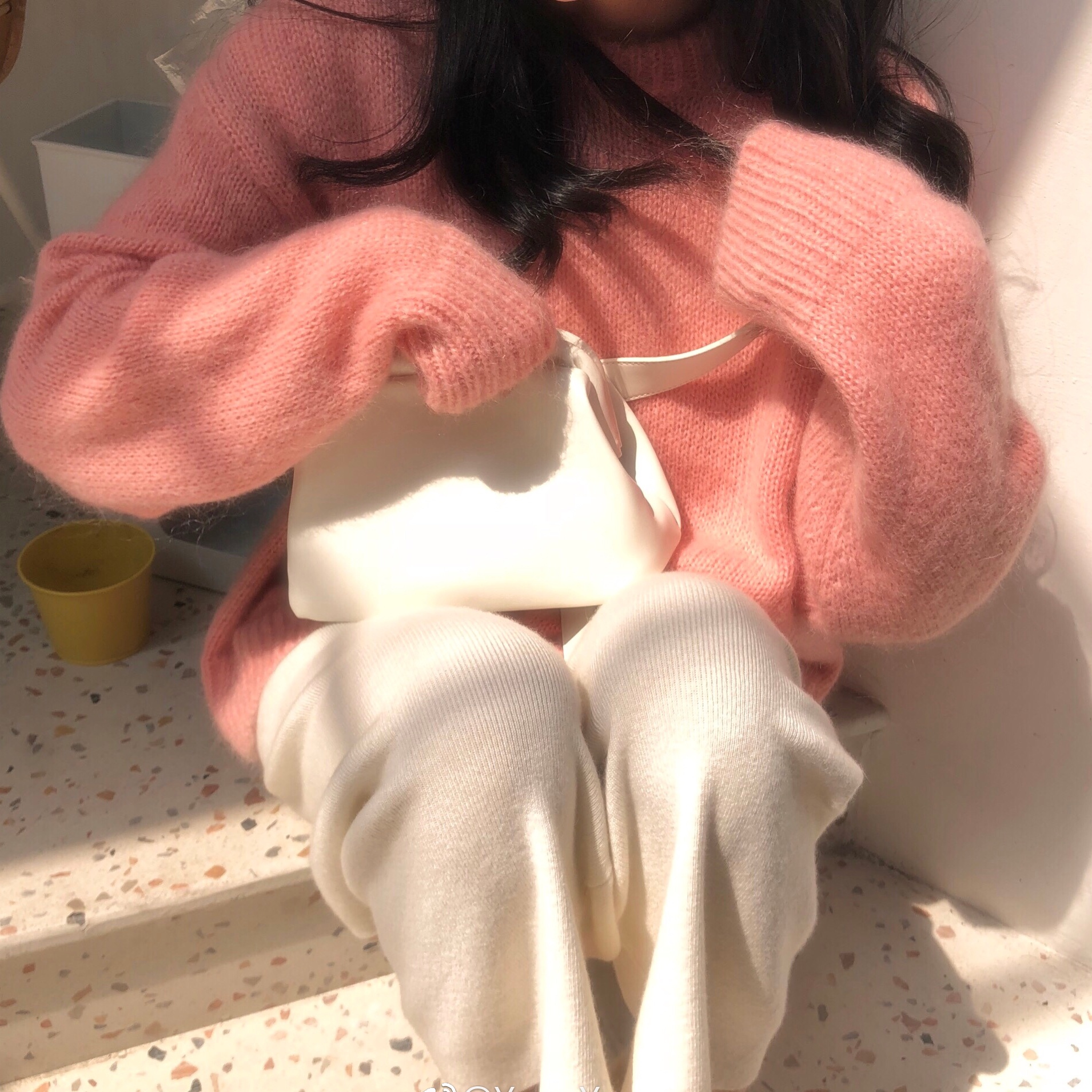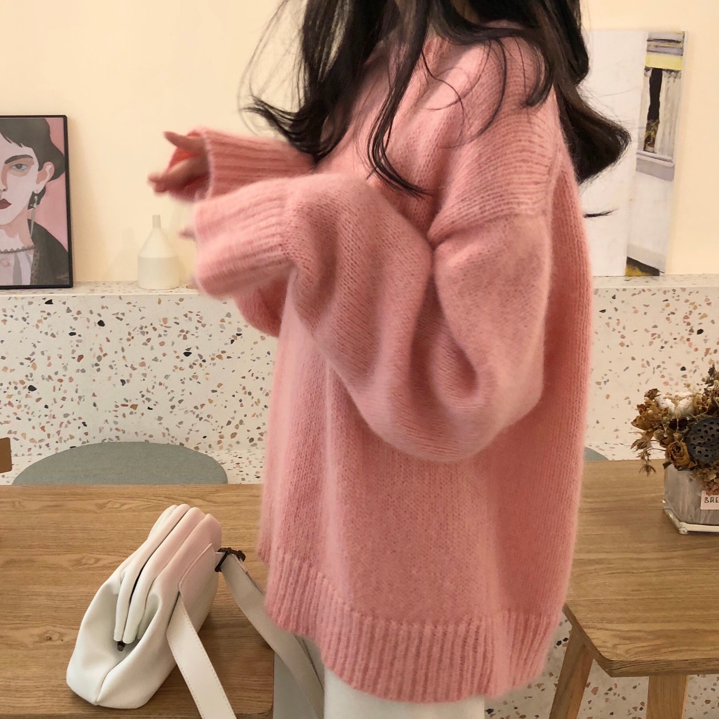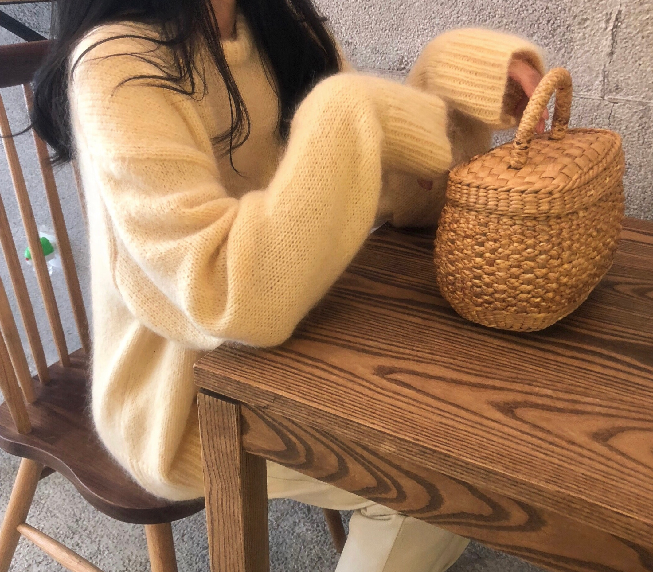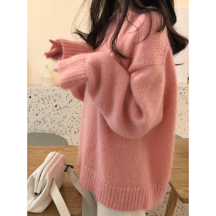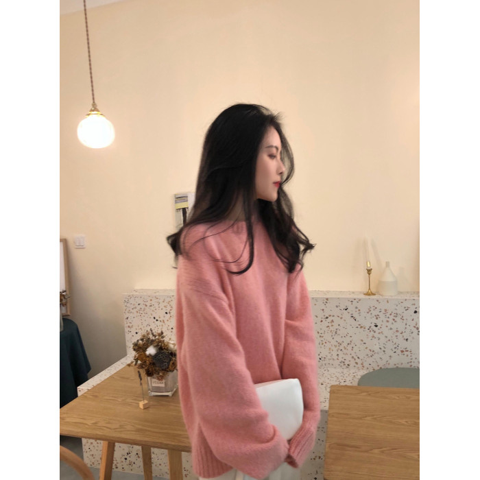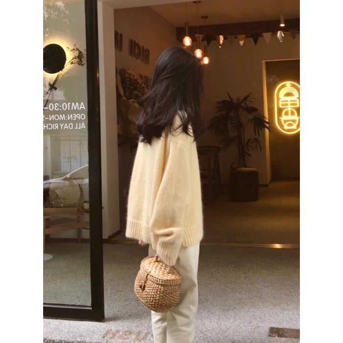 馬海毛奶黃色毛衣套頭秋冬新款慵懶風軟糯圓領針織衫寬松加厚外穿