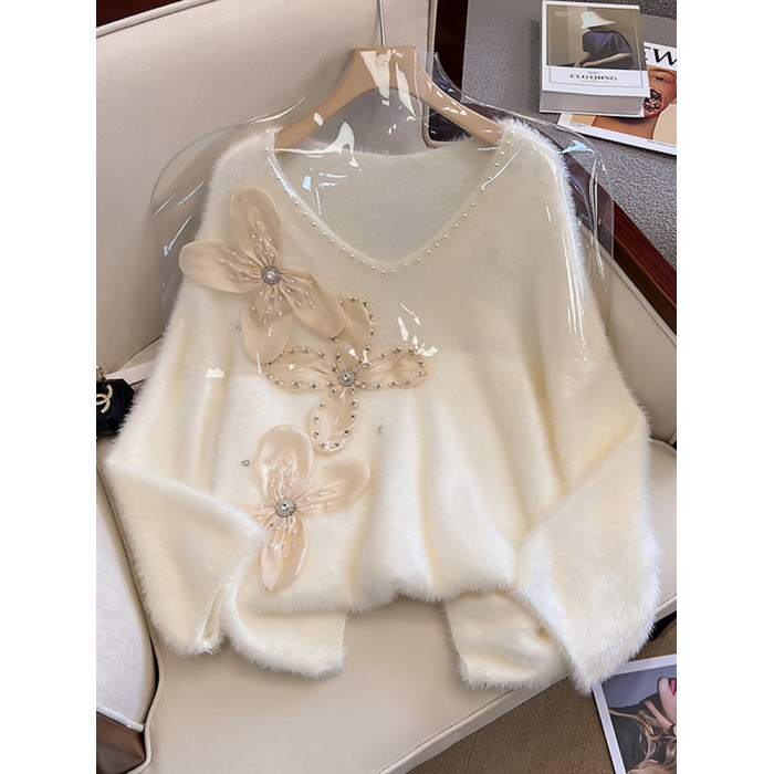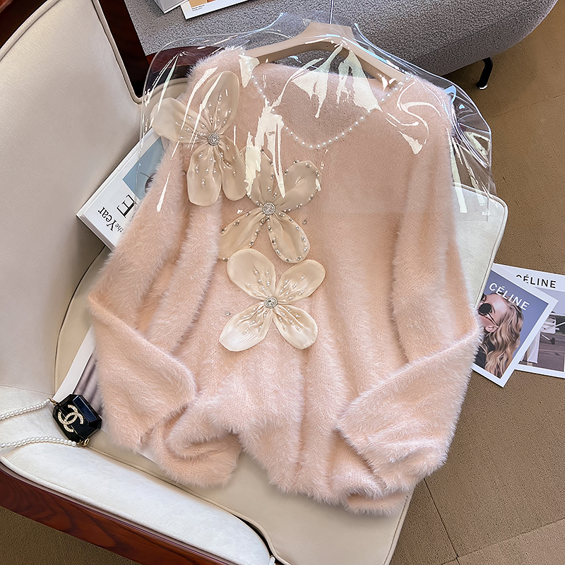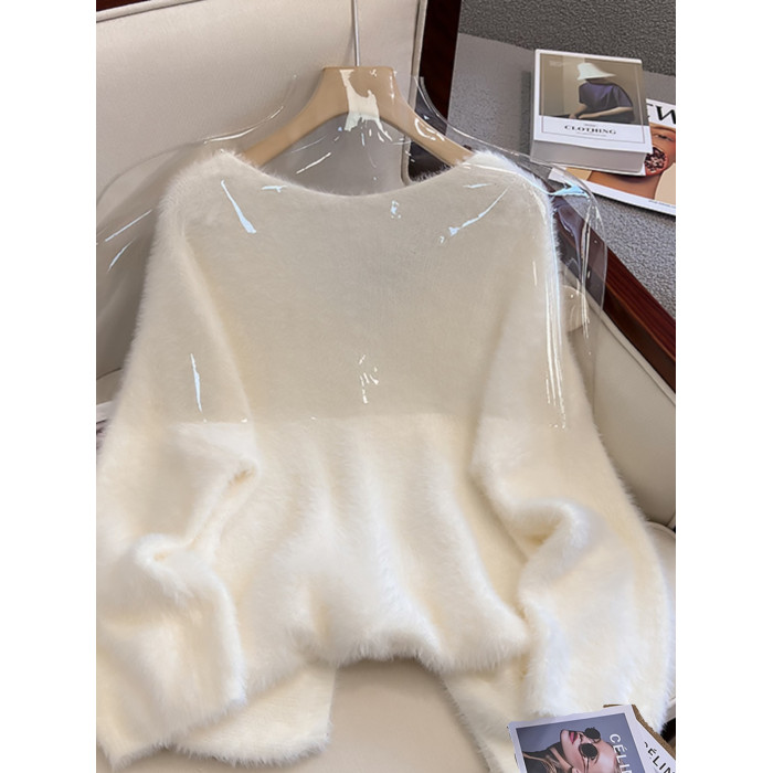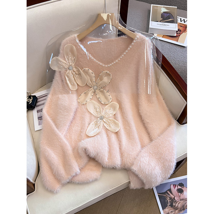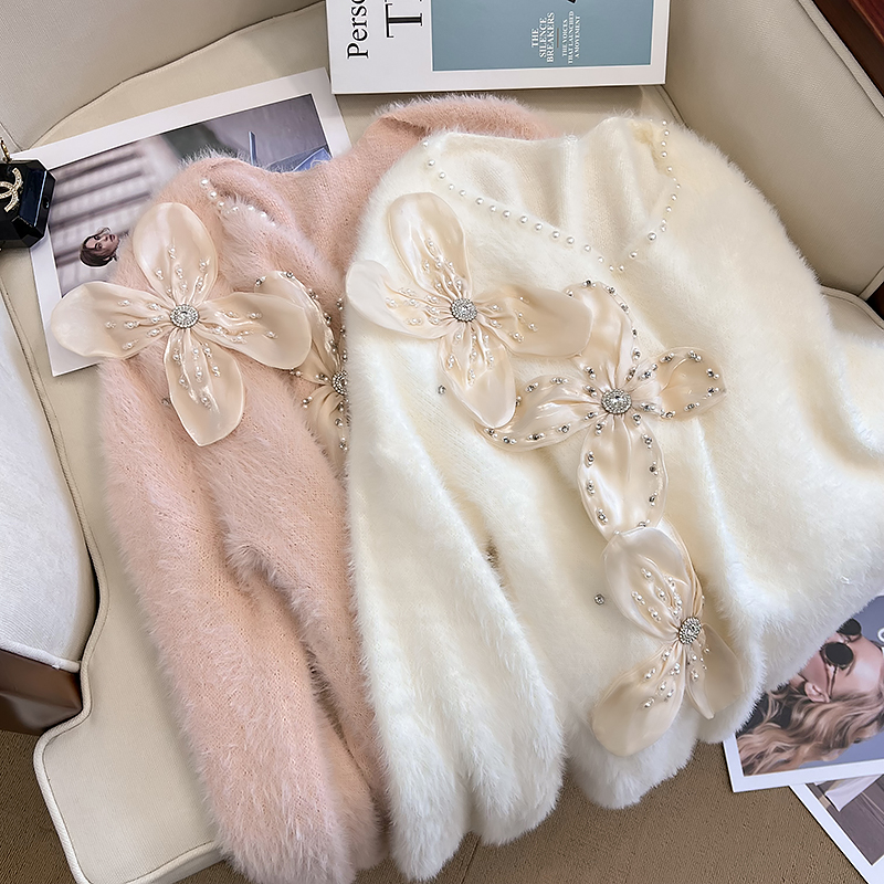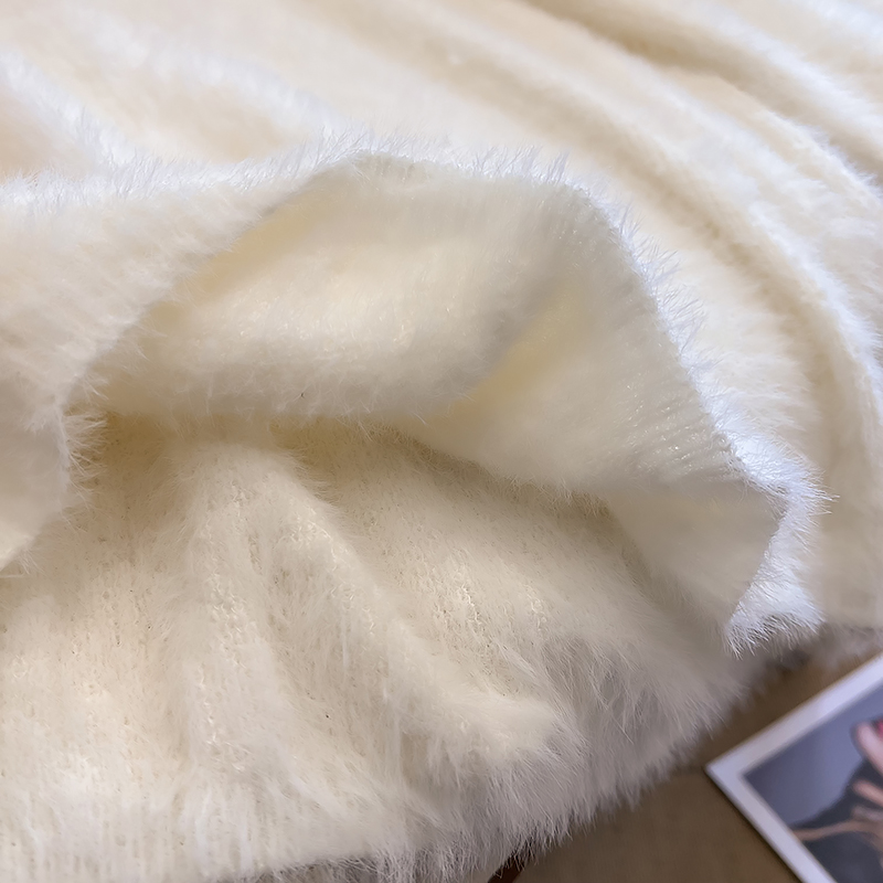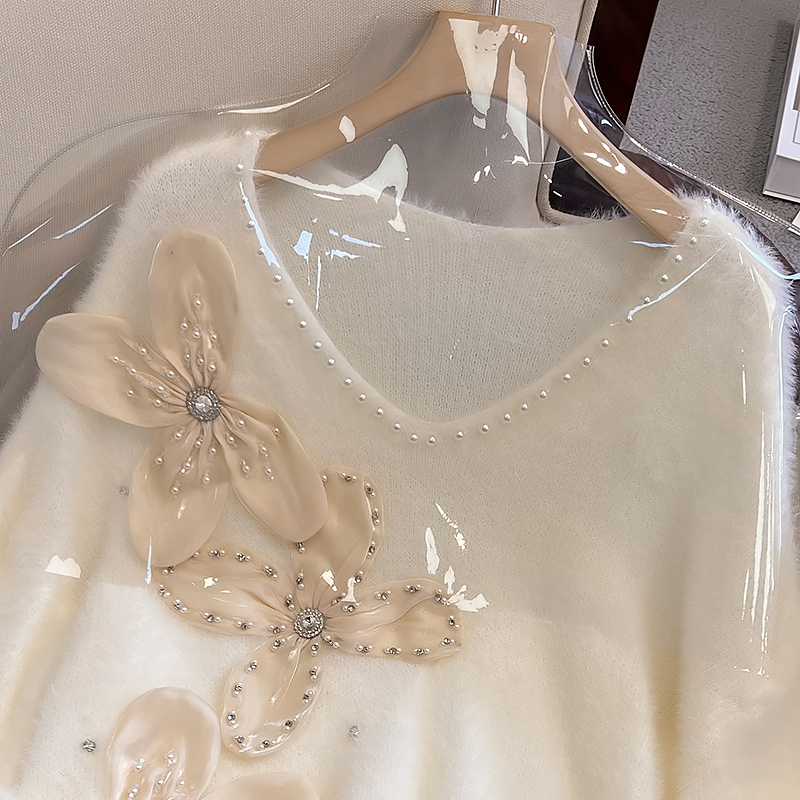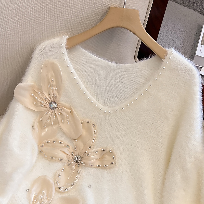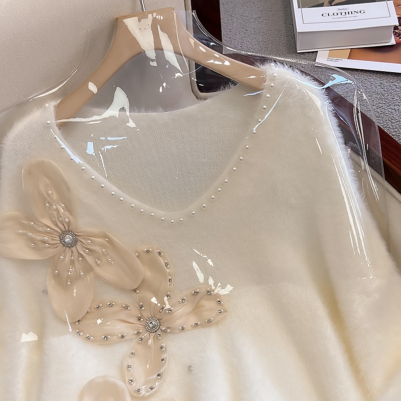 大碼女秋冬季新款高級感水貂絨v領毛衣胖mm顯瘦加厚打底內搭上衣