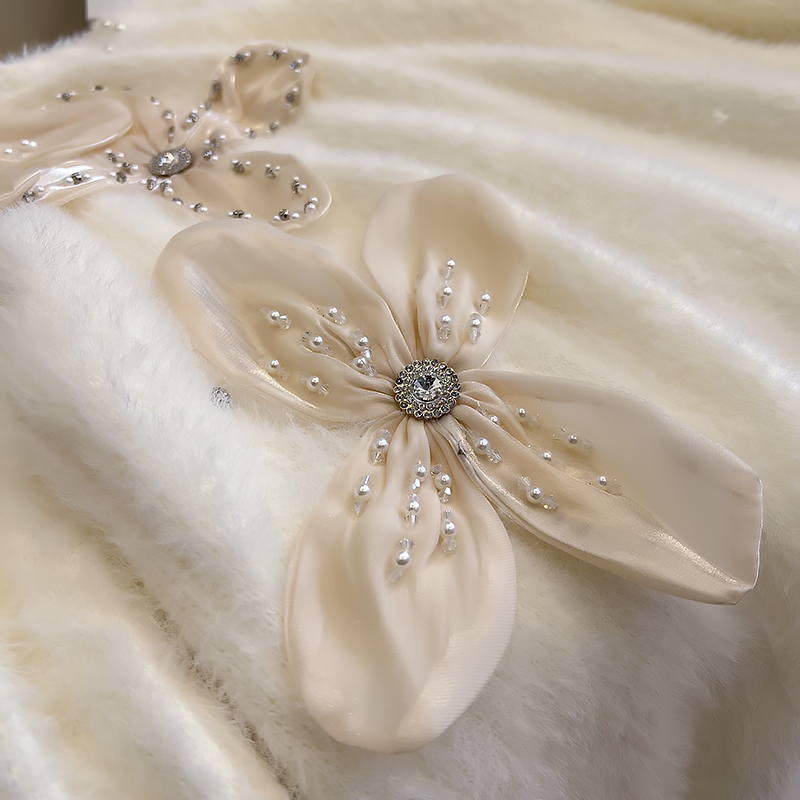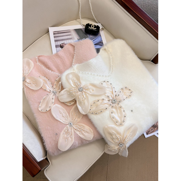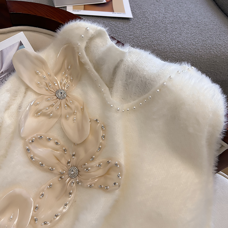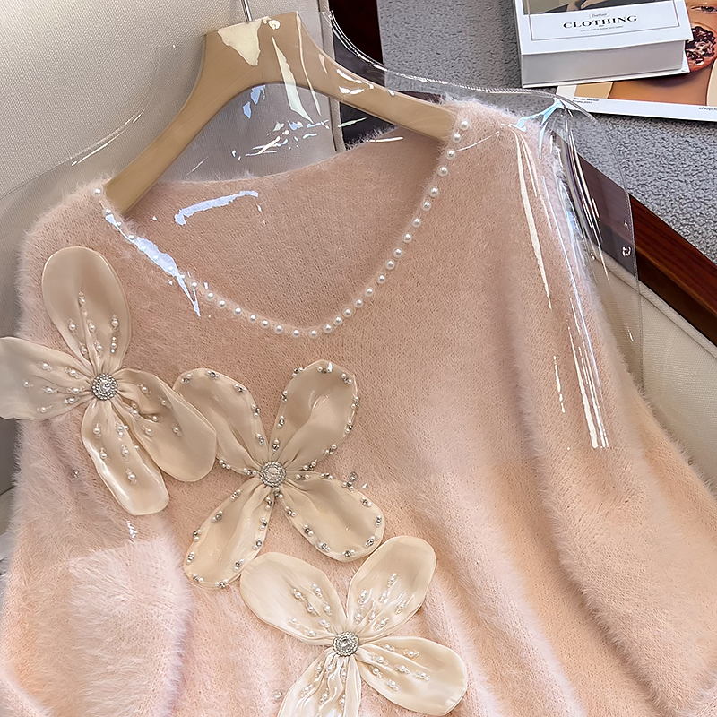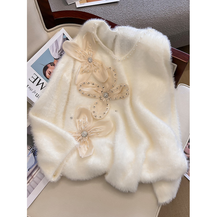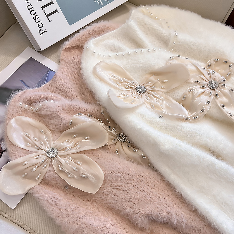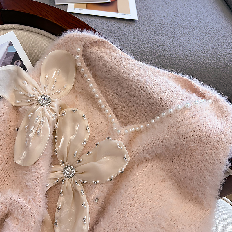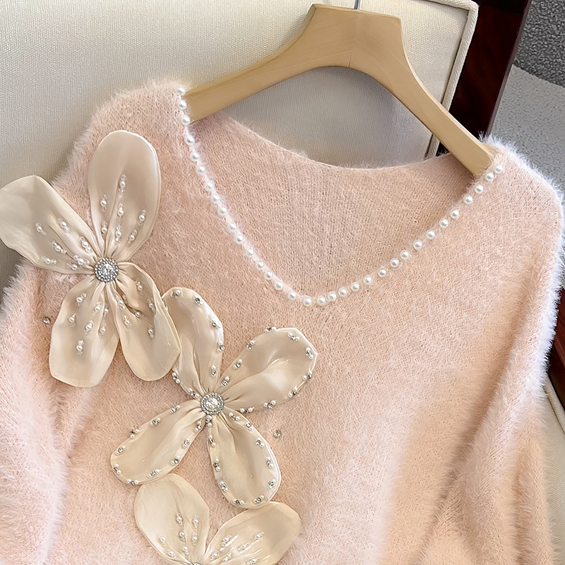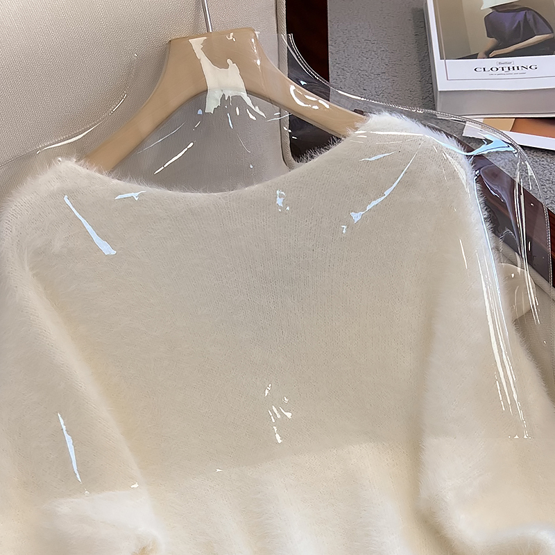 大碼女秋冬季新款高級感水貂絨v領毛衣胖mm顯瘦加厚打底內搭上衣