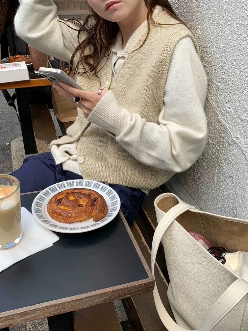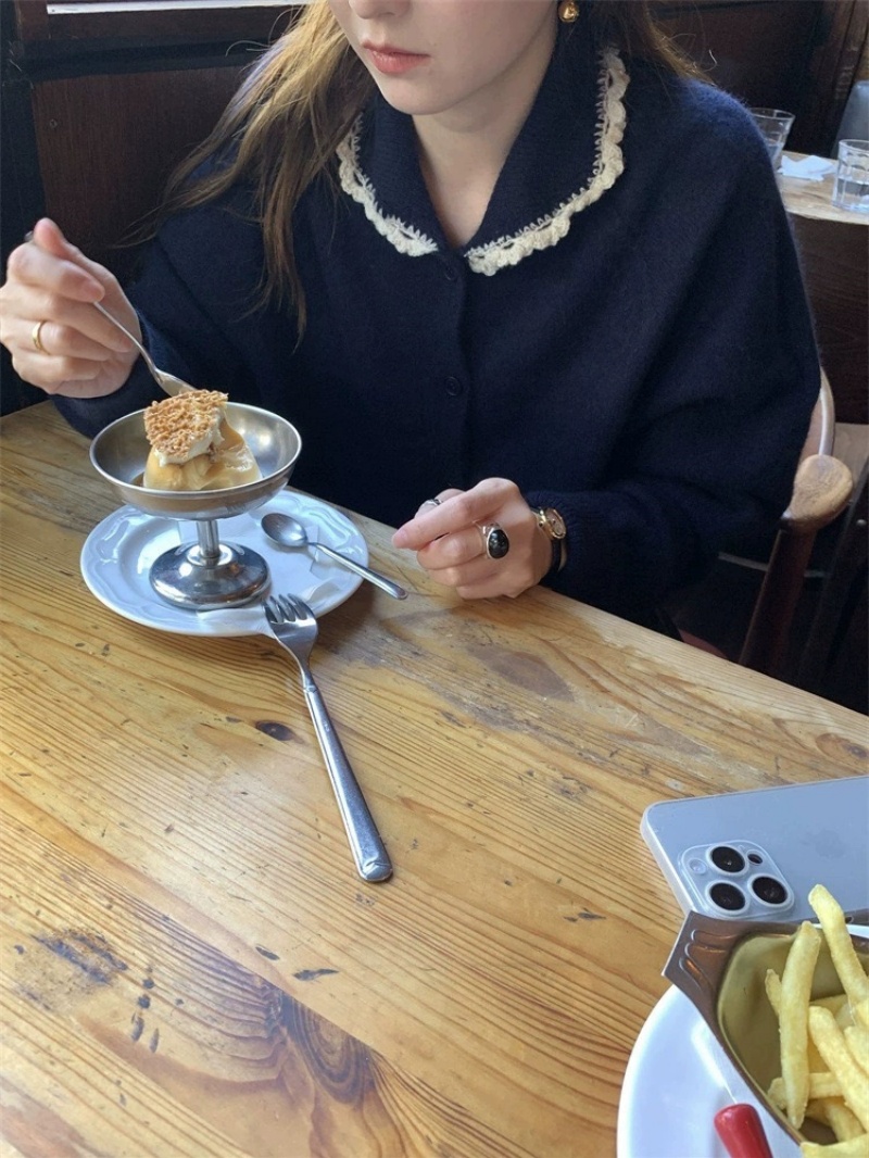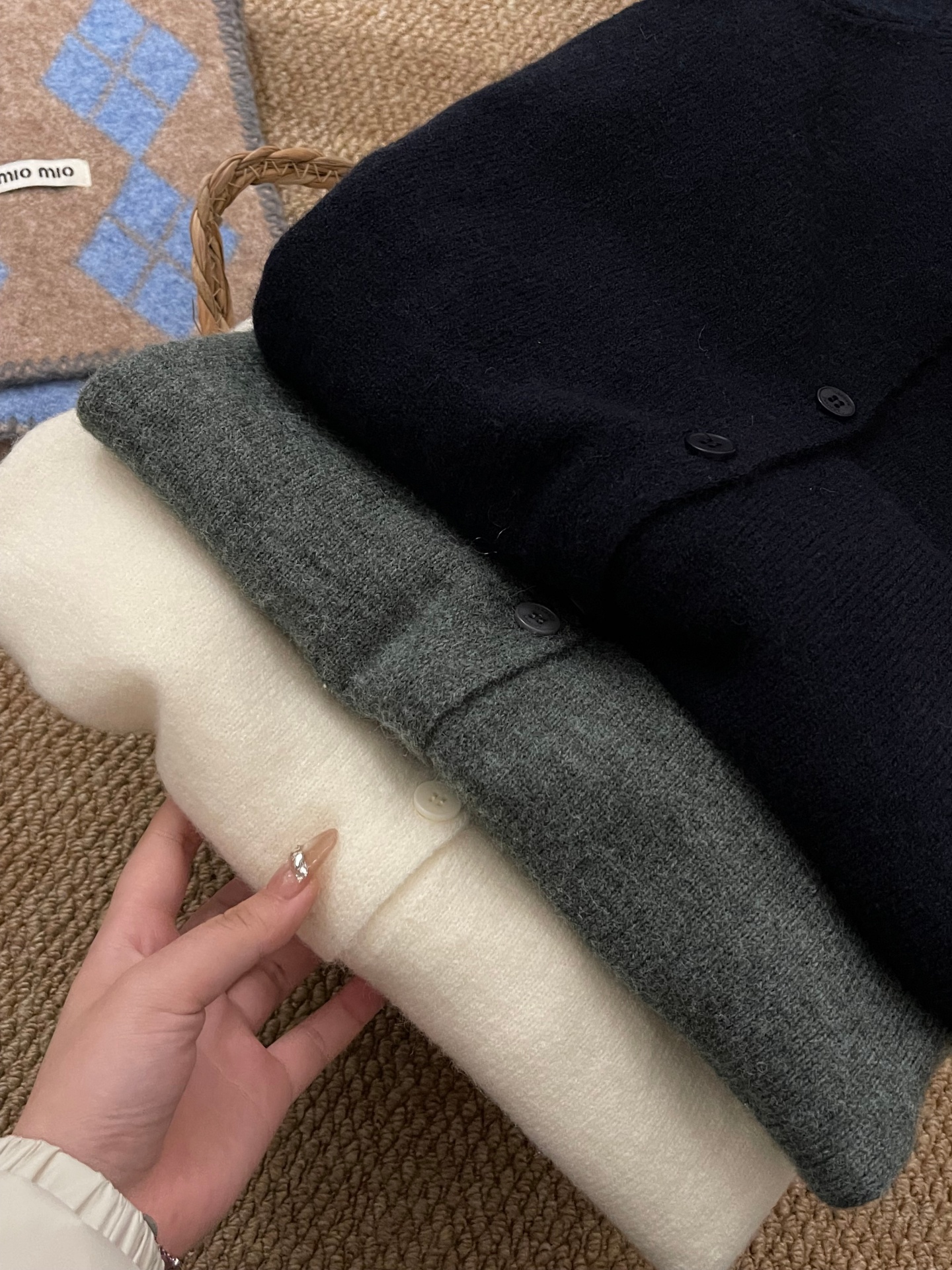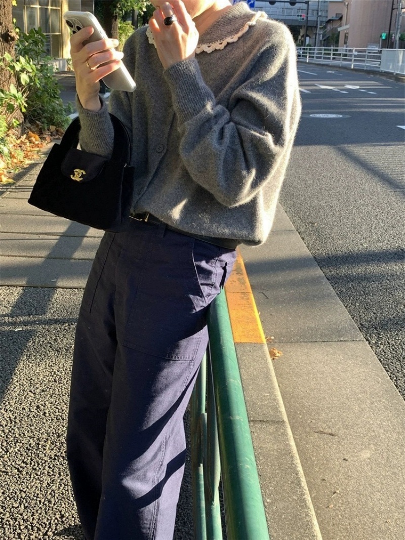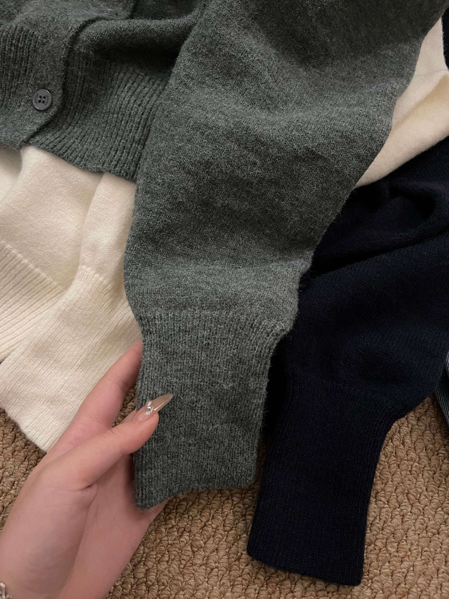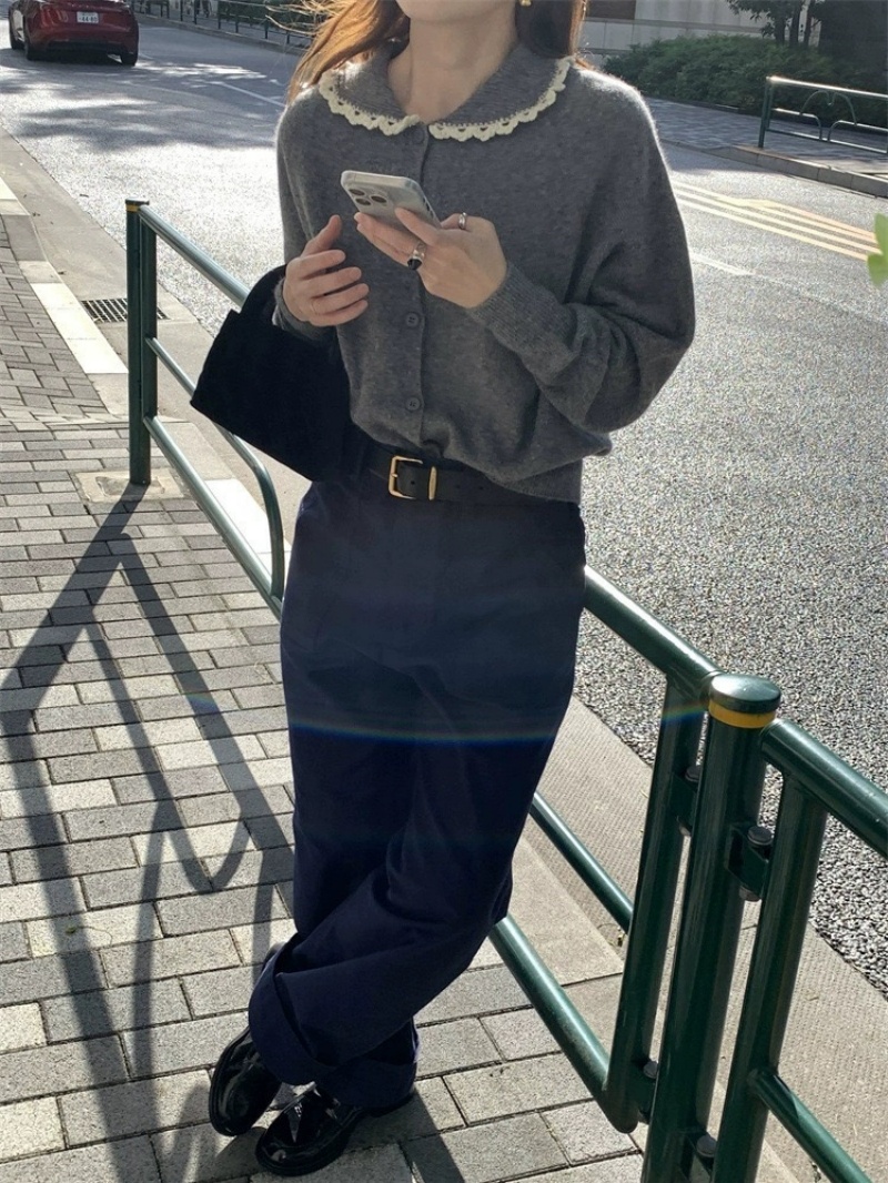 10%羊毛 韓代@lero*e 手工鉤花甜美花邊翻領軟糯針織毛衣開衫外套