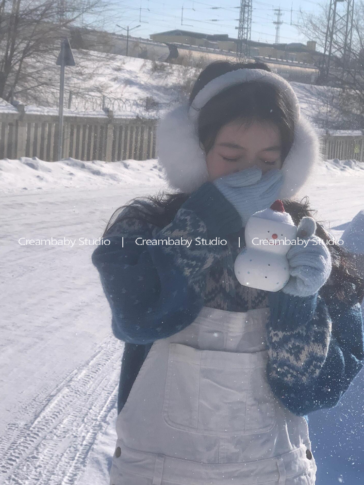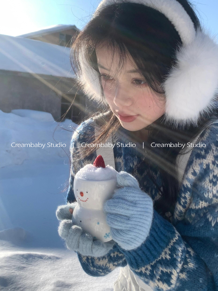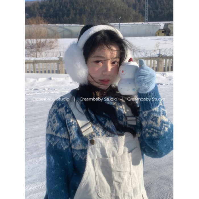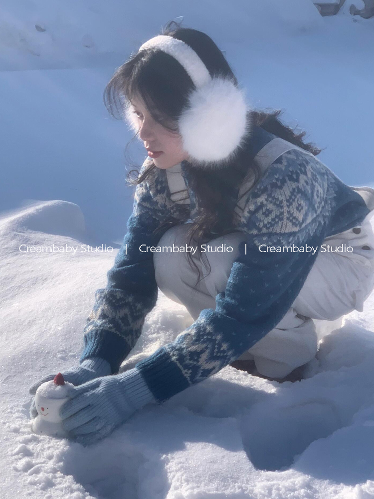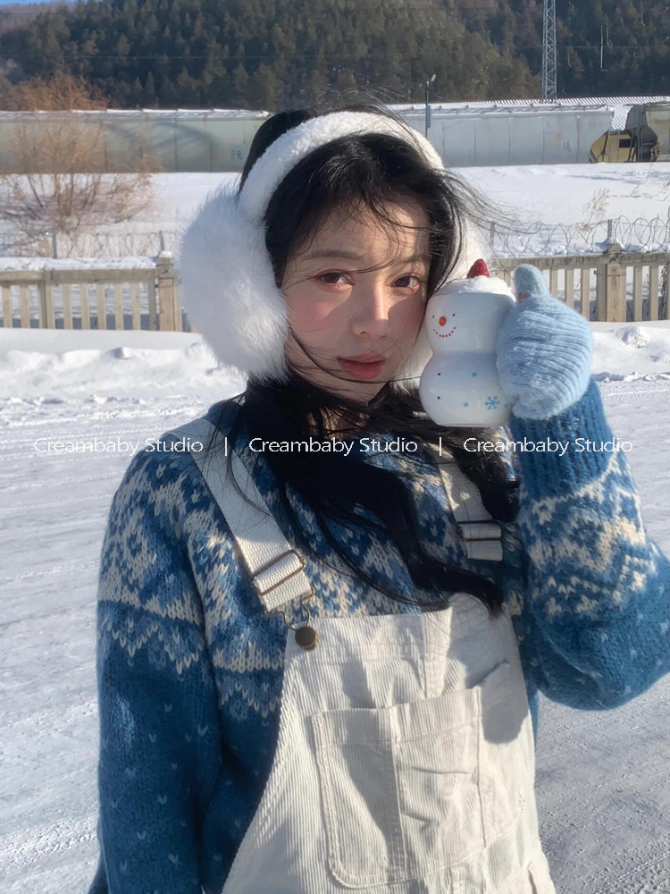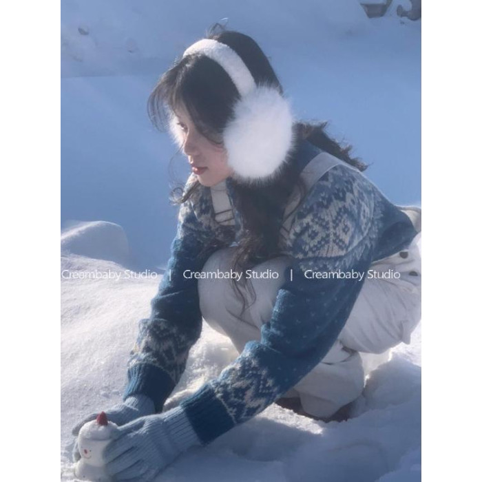聖誕藍!復古冰島藍色慵懶風提花毛衣女顯白費爾島穿搭甜美針織衫
