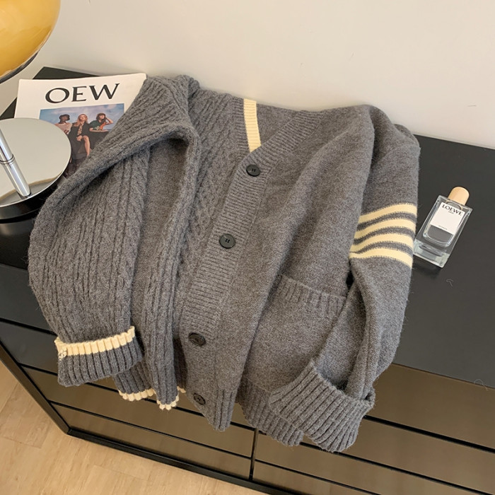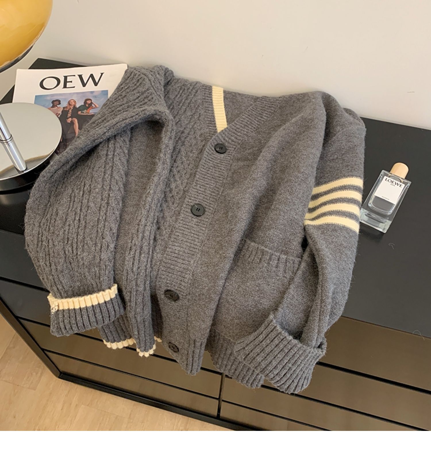 kor-anya 慵懶風復古毛衣外套女秋冬韓系設計感小衆針織開衫上衣