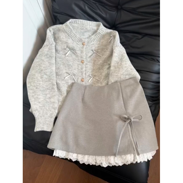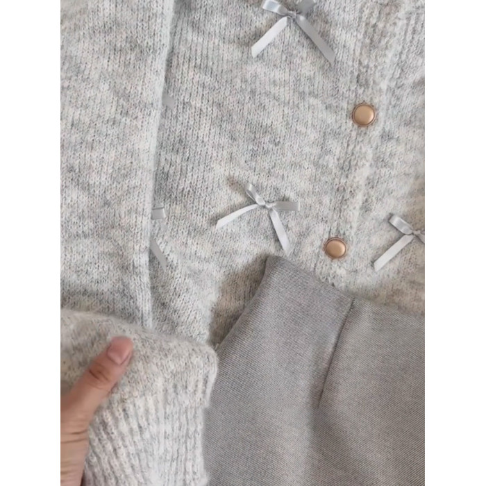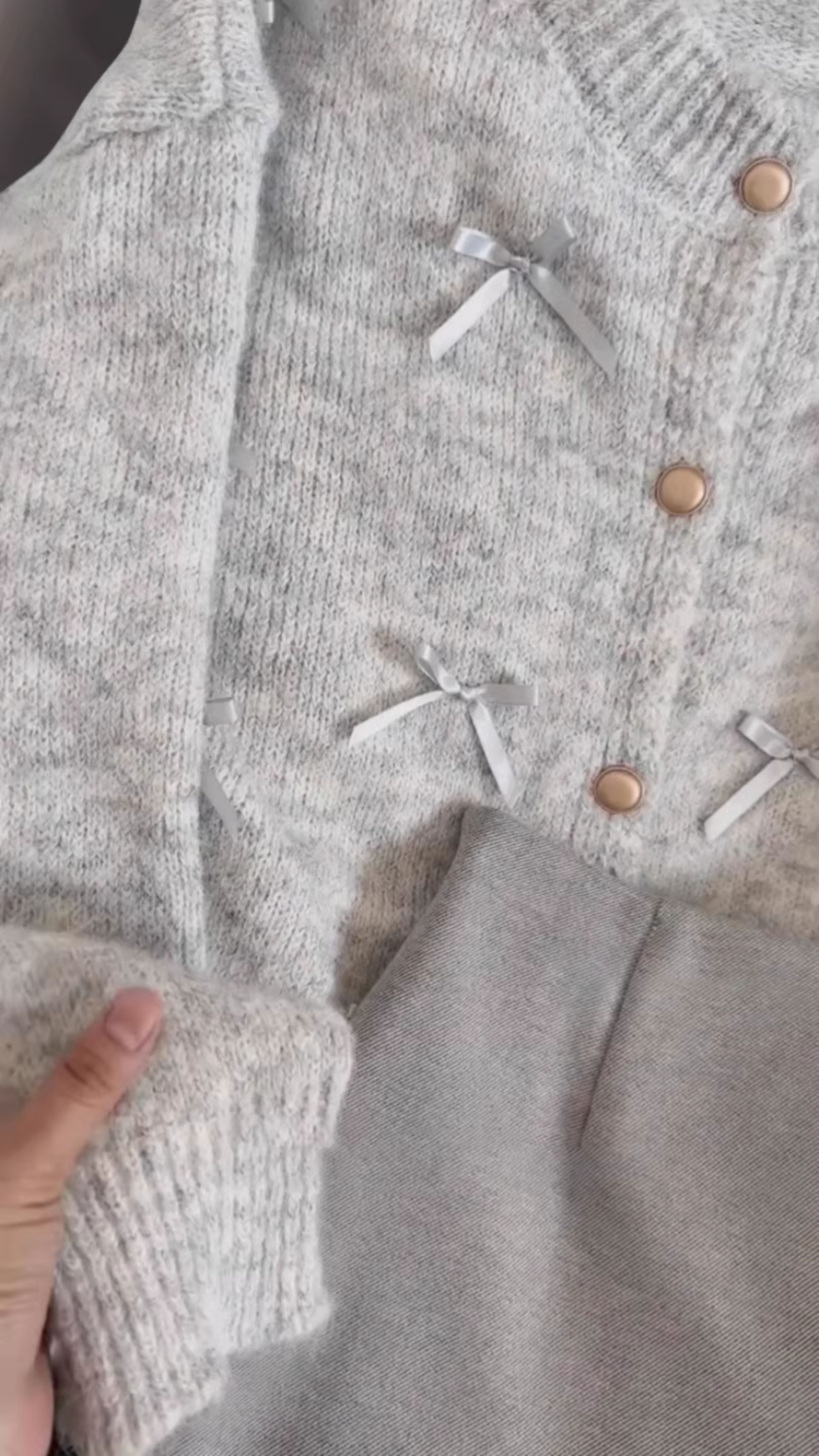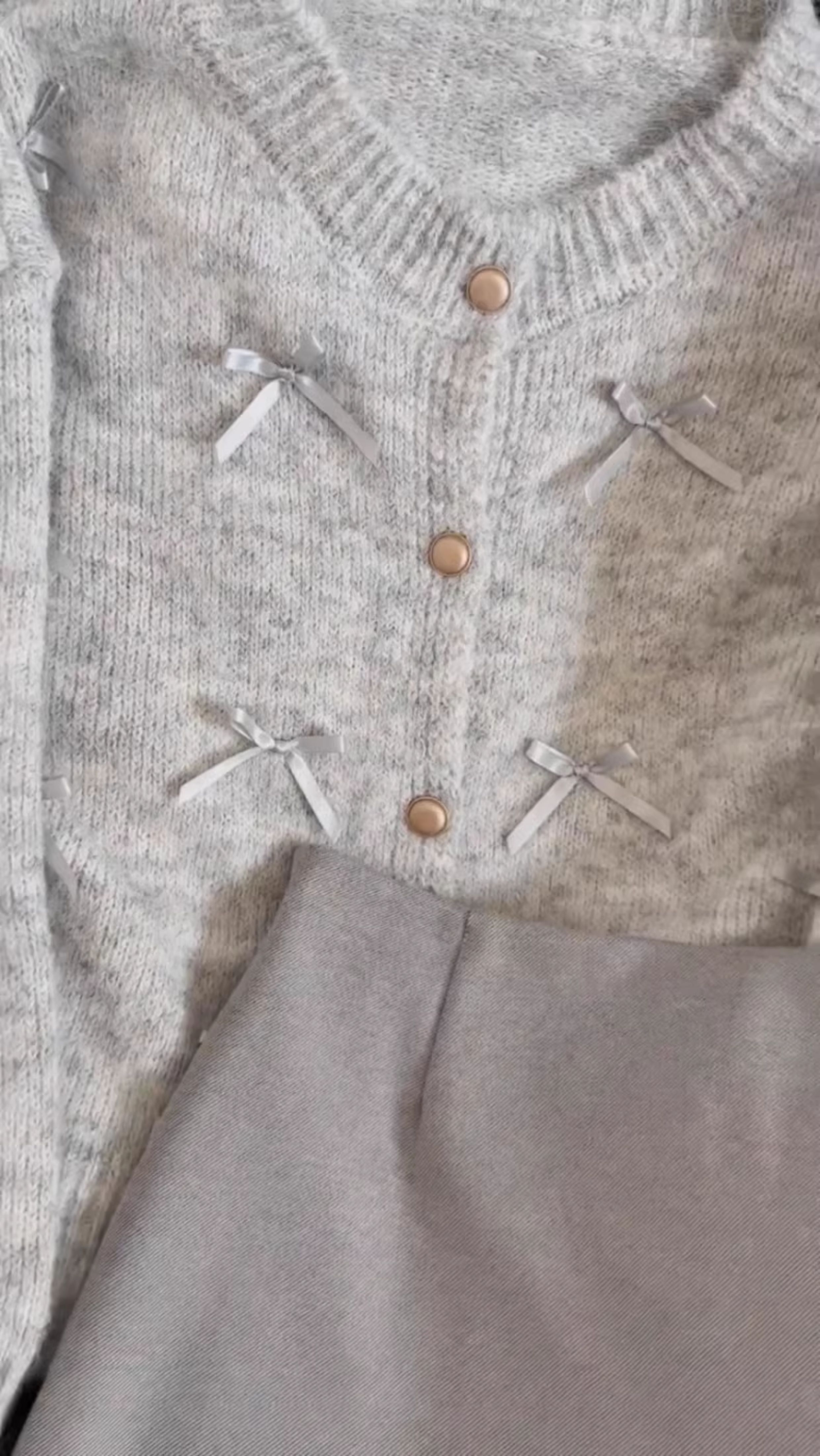 小個子香風灰色針織毛衣女秋冬2025新款韓風慵懶miu系開衫外套春
