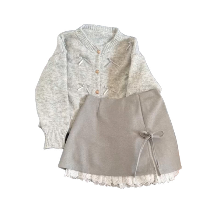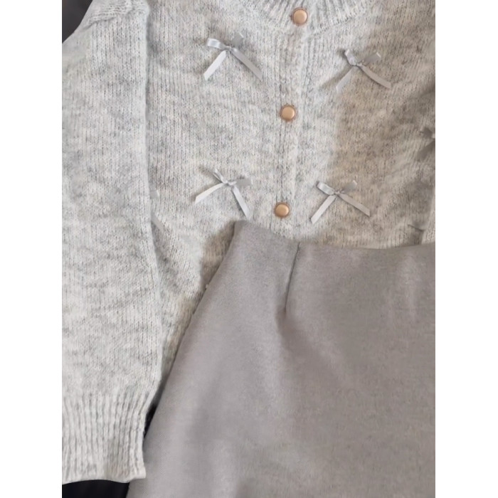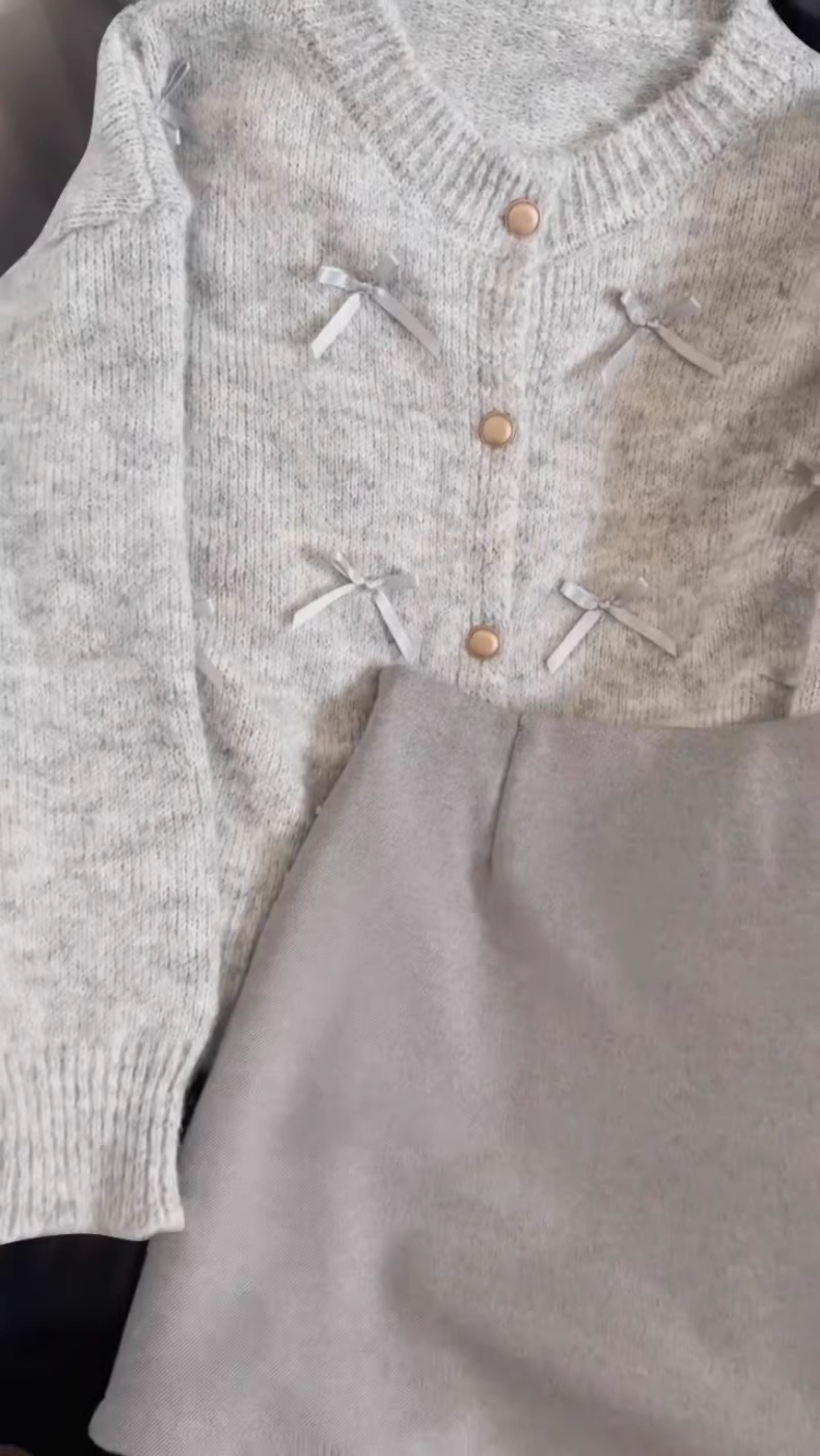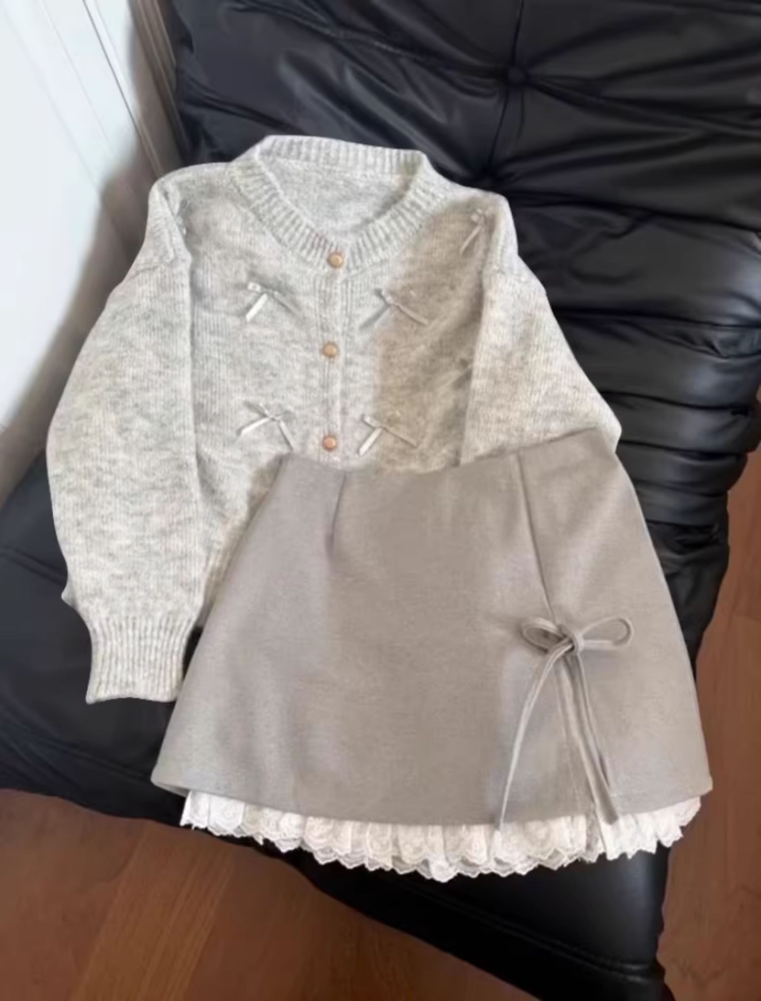 小個子香風灰色針織毛衣女秋冬2025新款韓風慵懶miu系開衫外套春