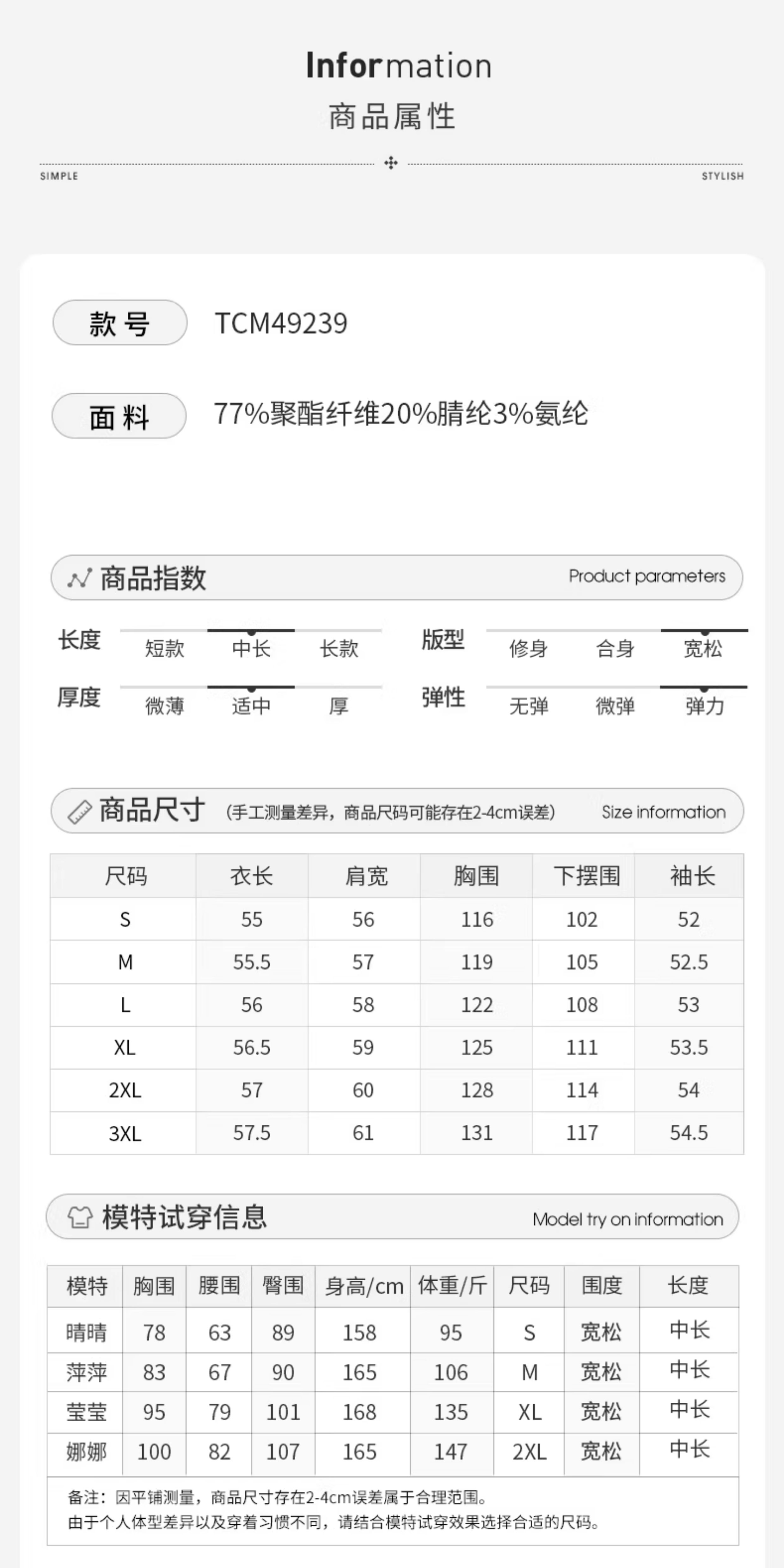 | 材質成分 | 聚酯纖維77% 改性聚丙烯腈纖維(改性腈綸)20% 聚氨酯彈性纖維(氨綸)3% |