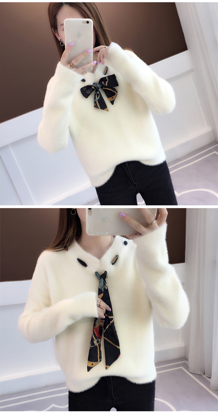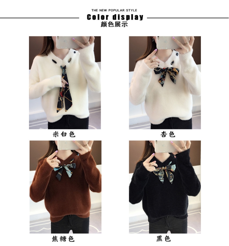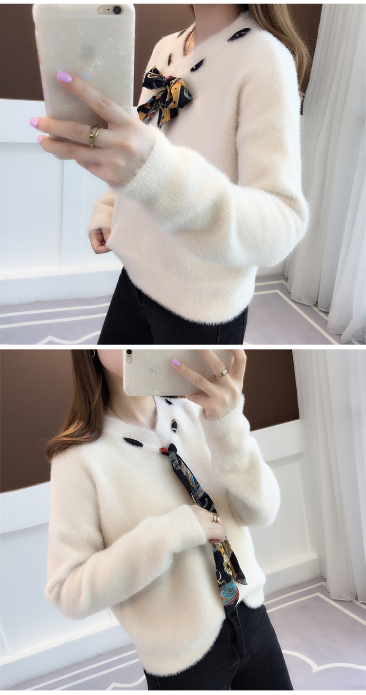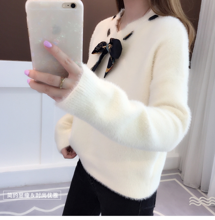 【不掉毛】加厚秋冬新款小清新馬海毛衣女寬松仿水貂絨套頭針織衫