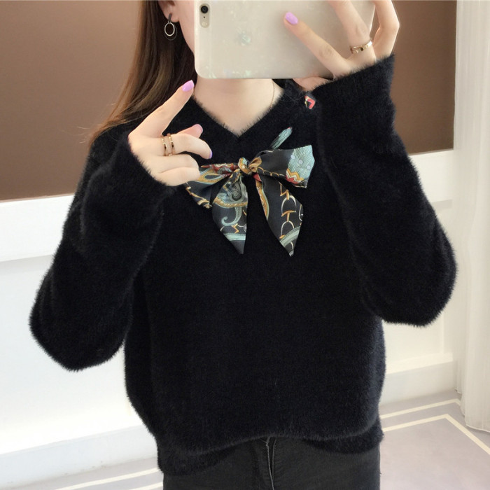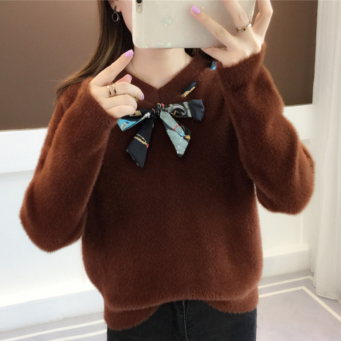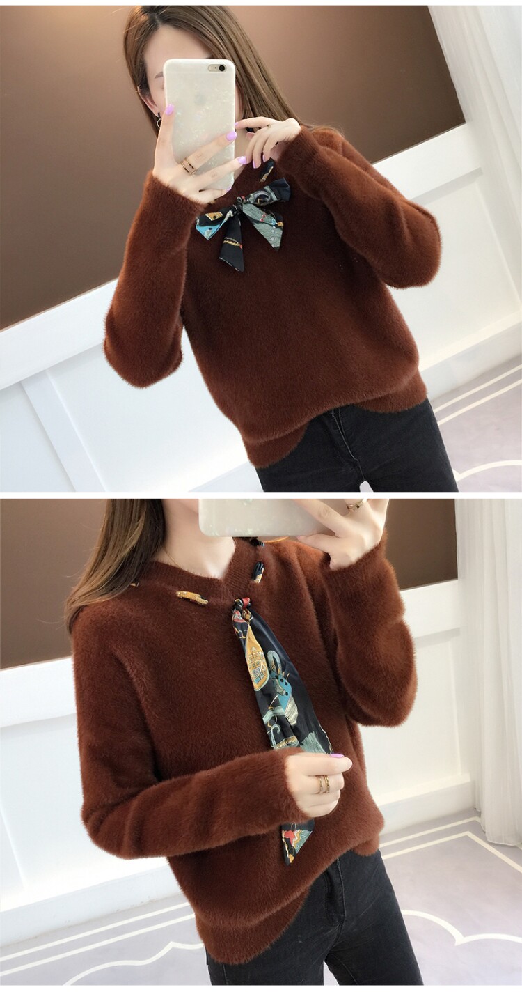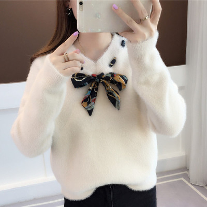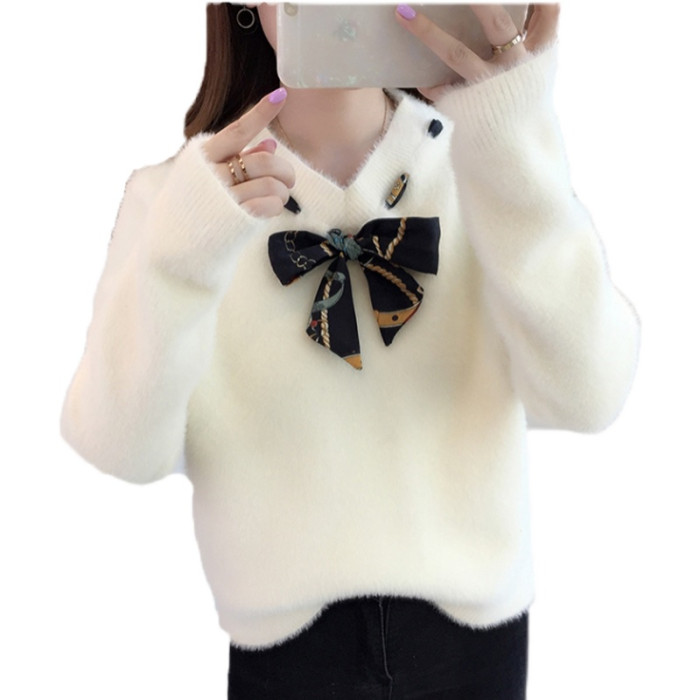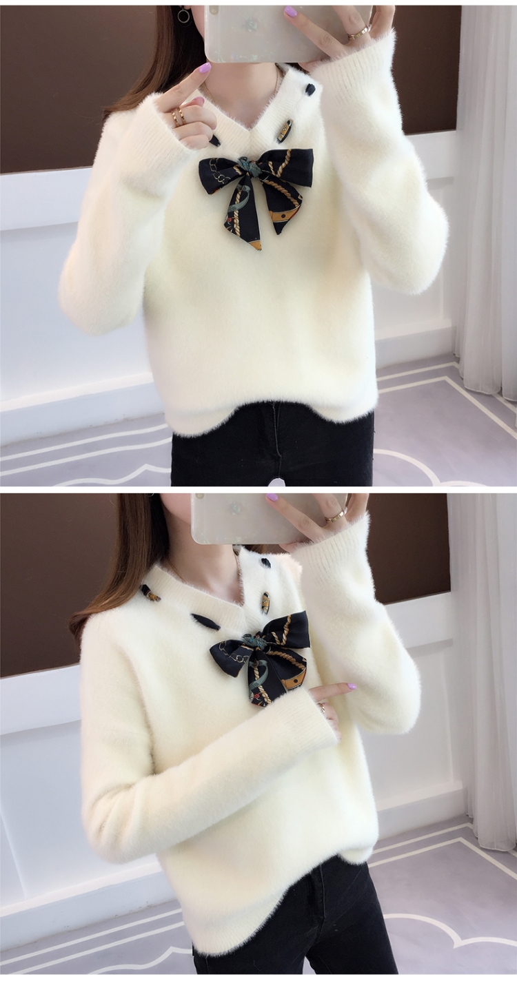 【不掉毛】加厚秋冬新款小清新馬海毛衣女寬松仿水貂絨套頭針織衫
