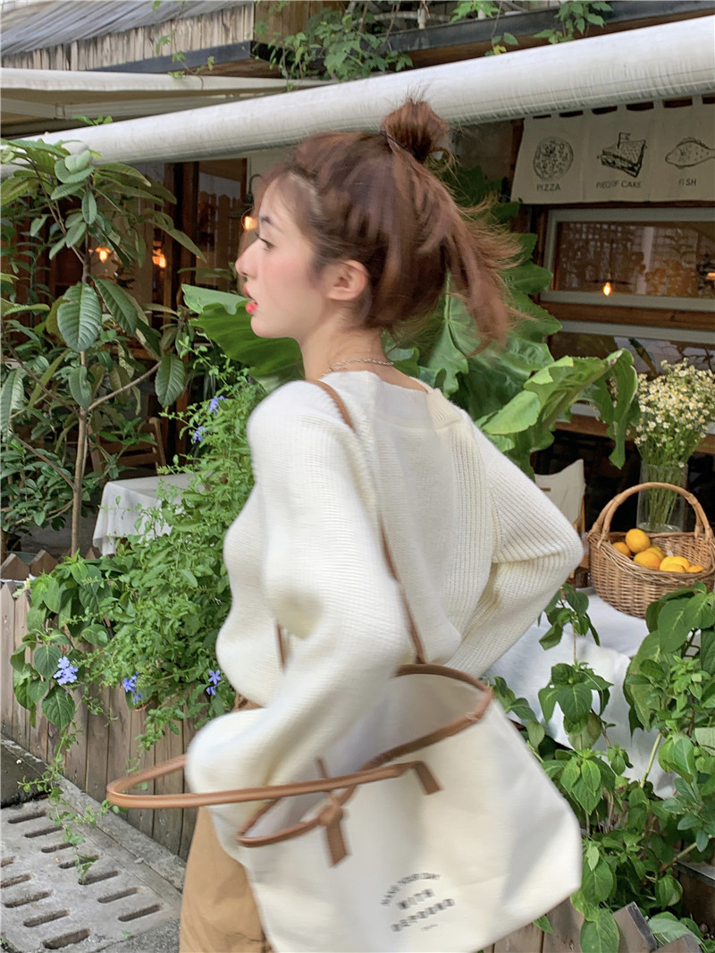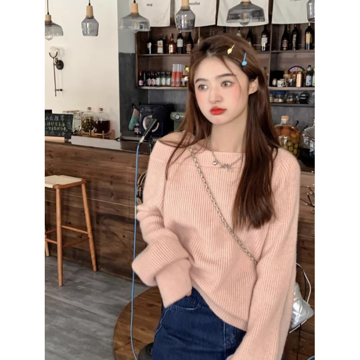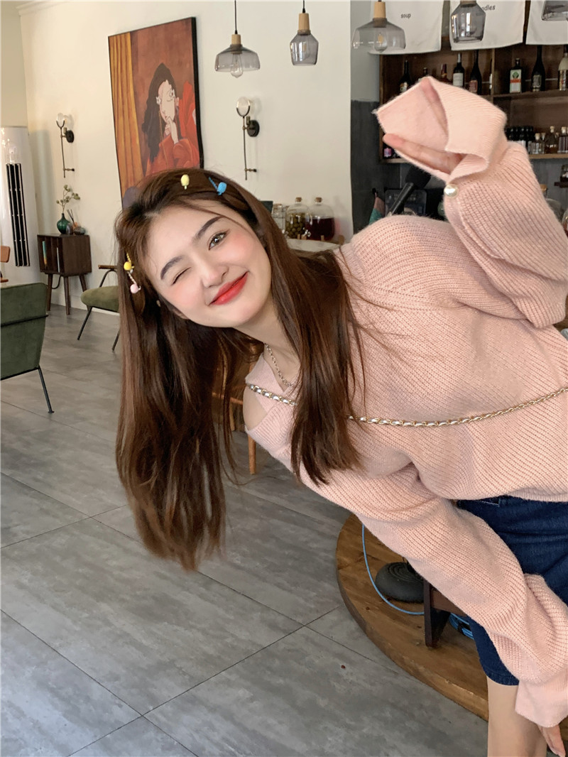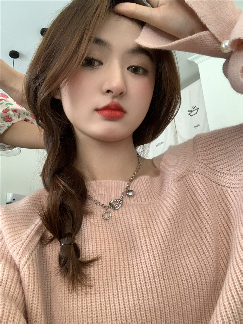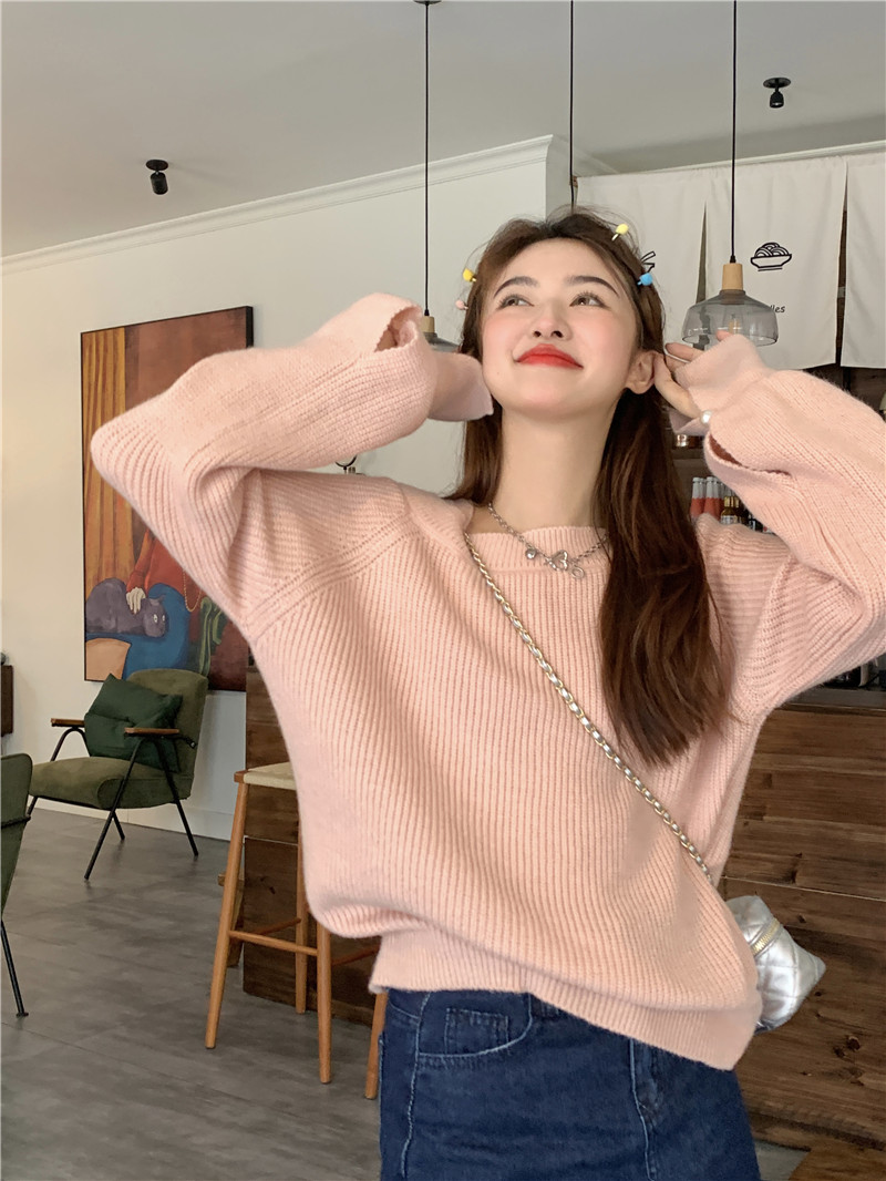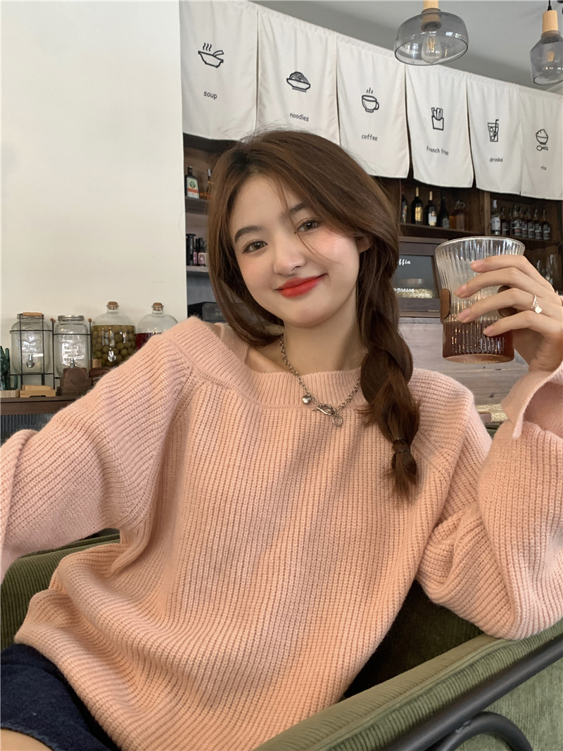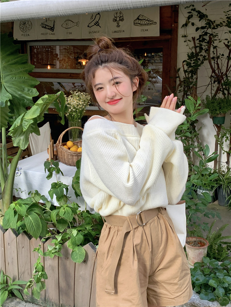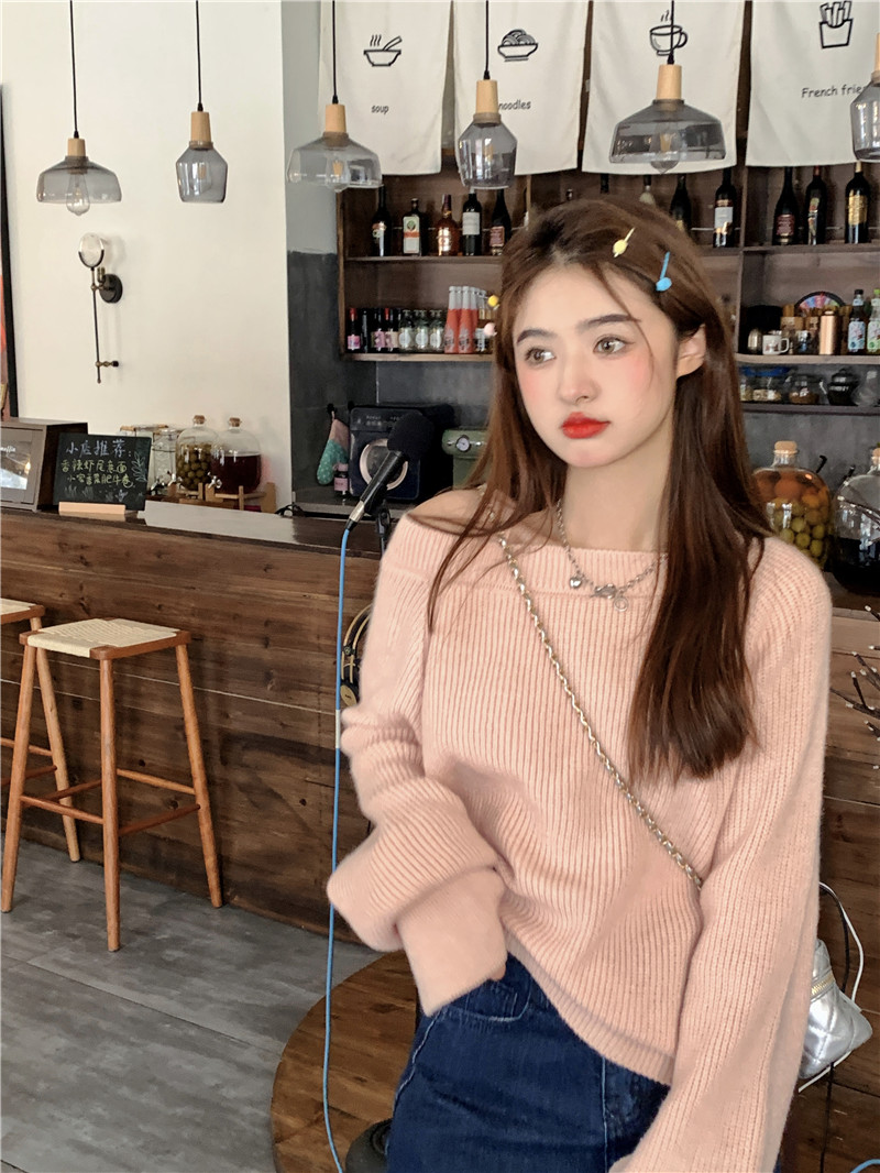 小心機露肩軟糯針織衫毛衣女早秋季設計感小衆法式溫柔風寬松上衣
