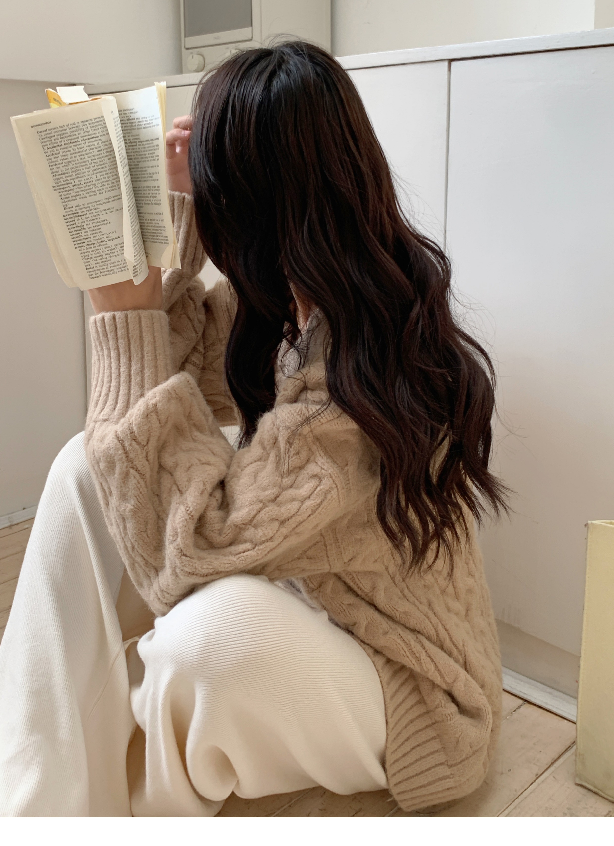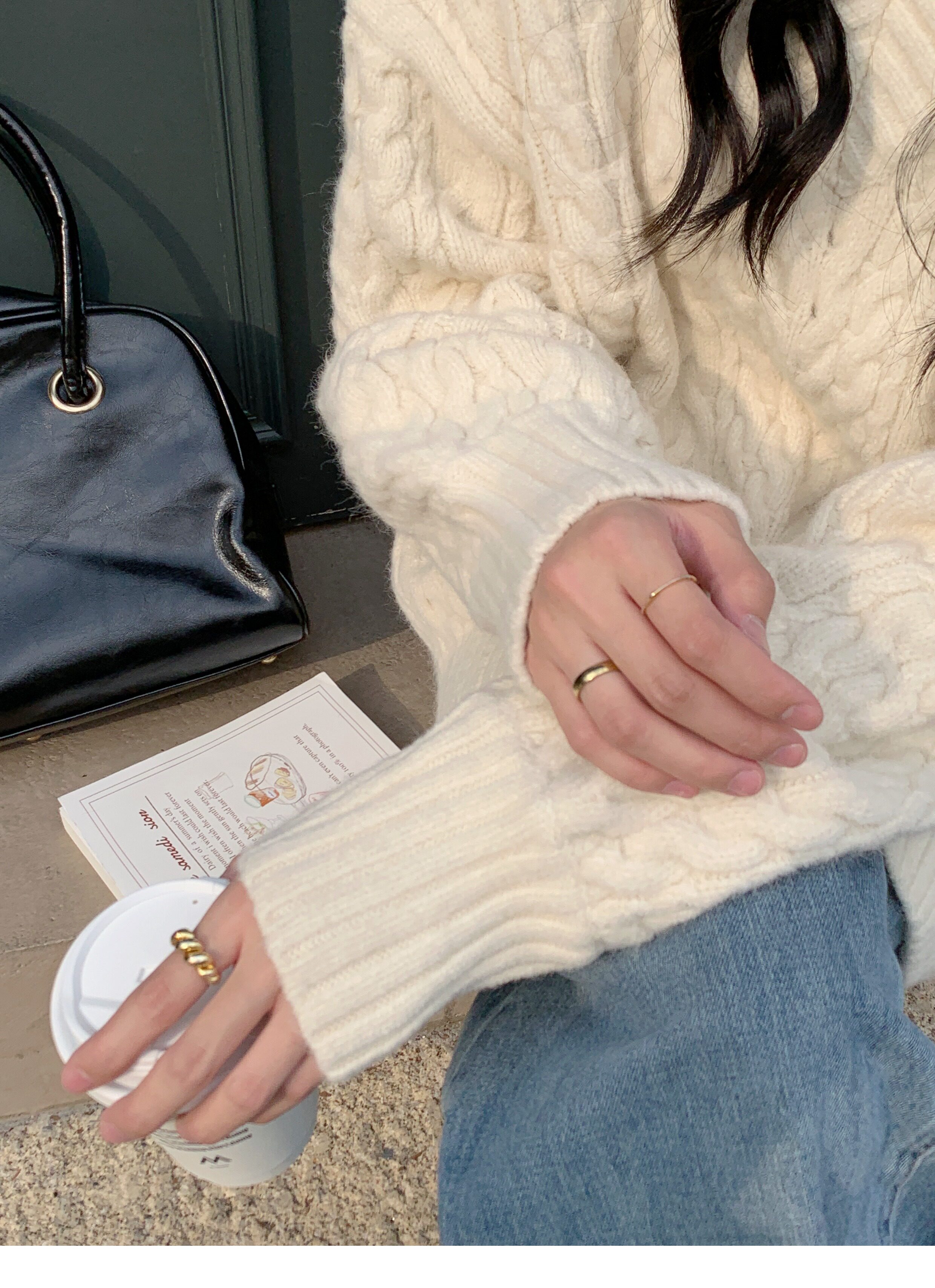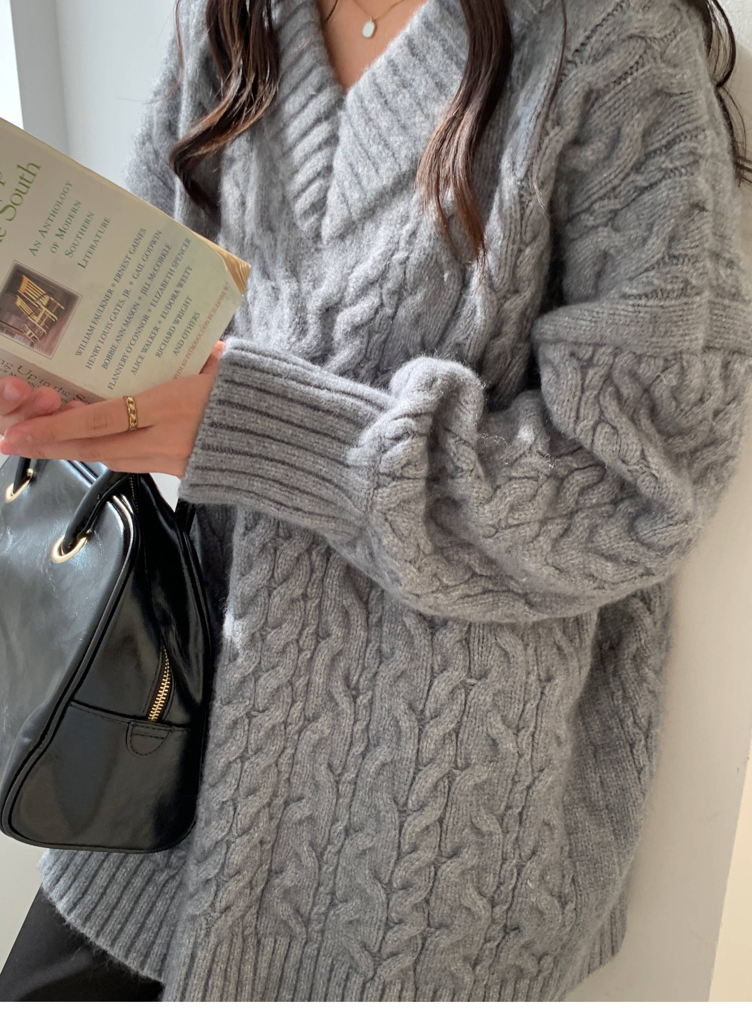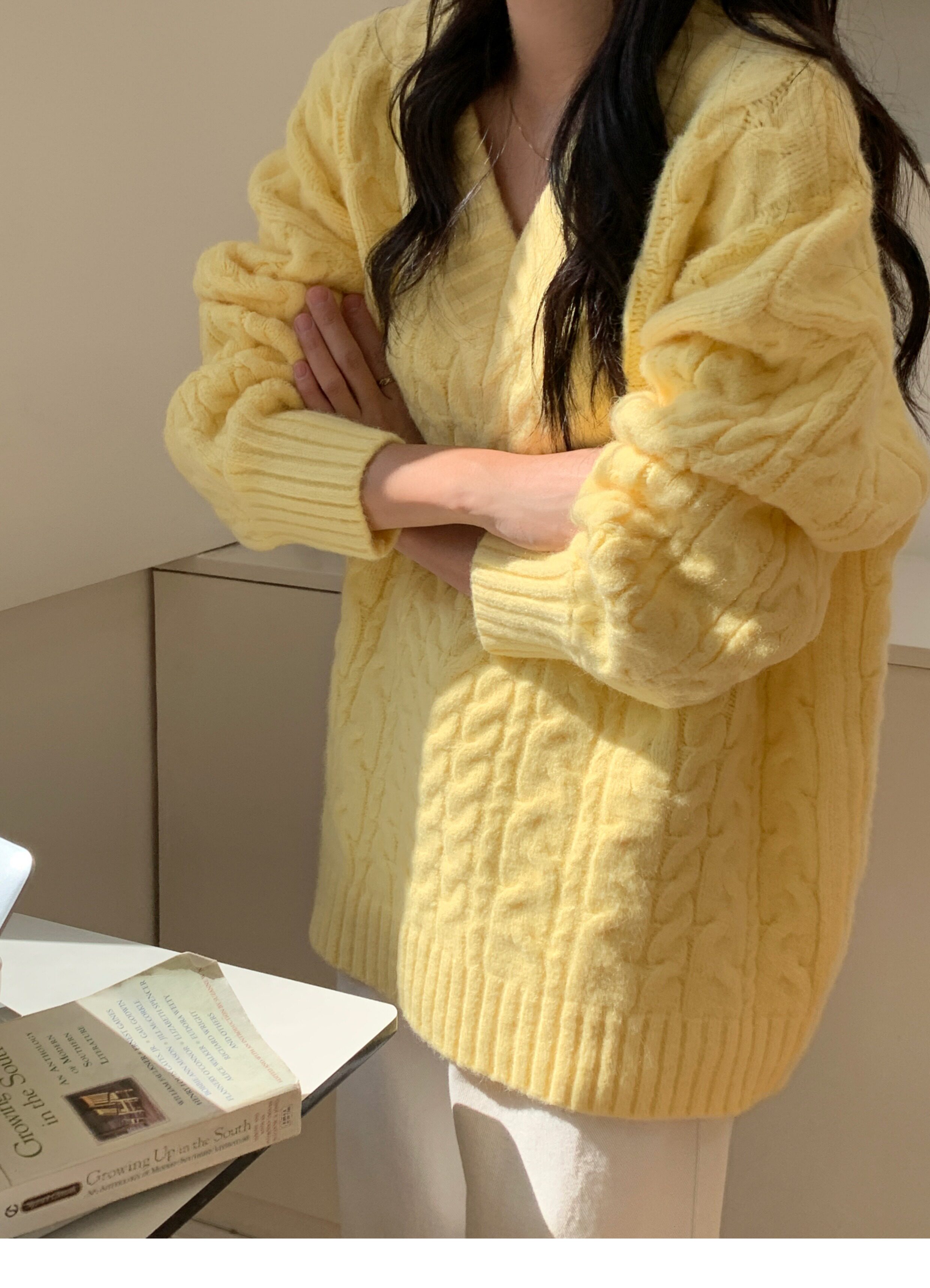 藍色奶系V領麻花套頭毛衣女2024秋冬新款韓系穿搭慵懶寬松上衣厚