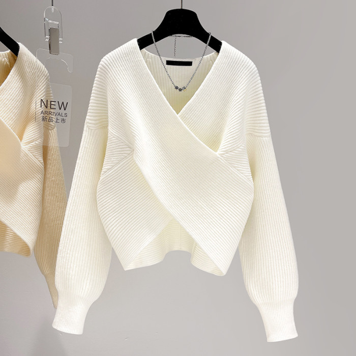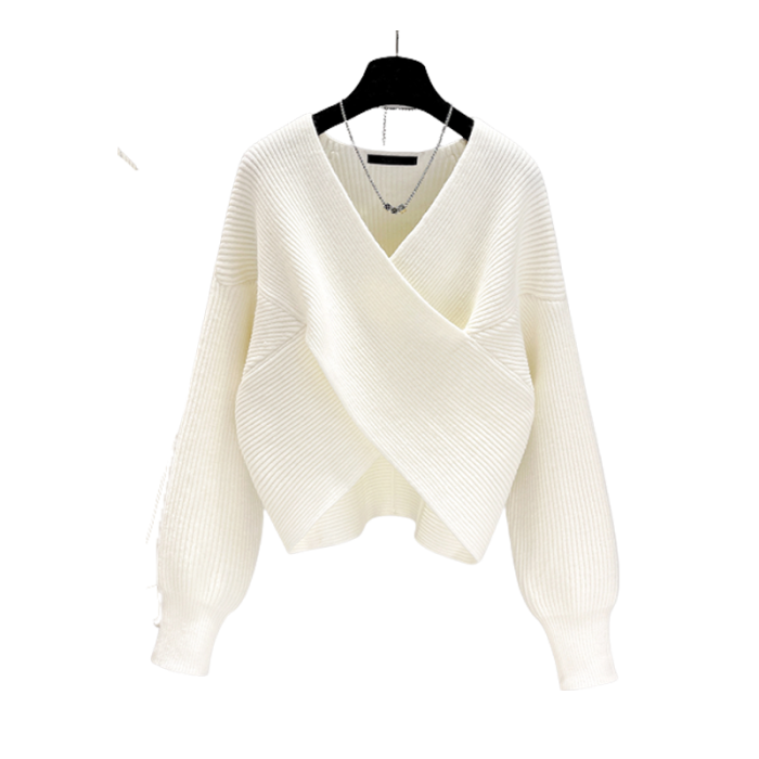毛衣女秋冬小個子溫柔風嬭系穿搭設計感小衆交叉針織衫套頭上衣