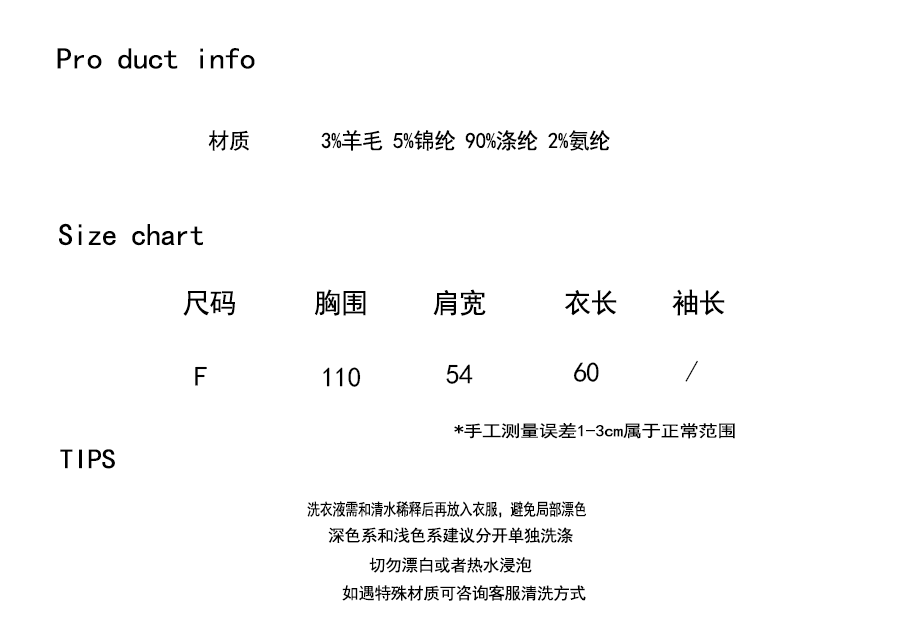 | 材質成分 | 聚對苯二甲酸乙二酯(滌綸)90% 聚醯胺纖維(錦綸)5% 羊毛3% 聚氨酯彈性纖維(氨綸)2% |