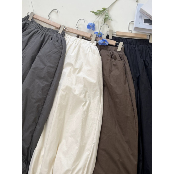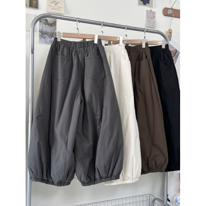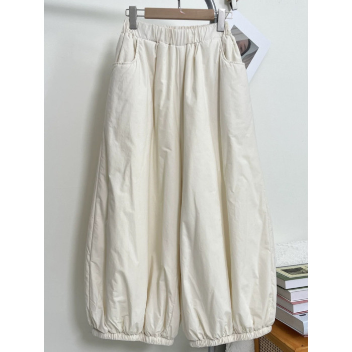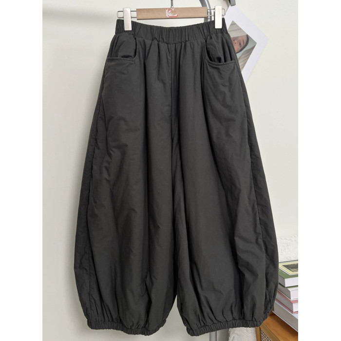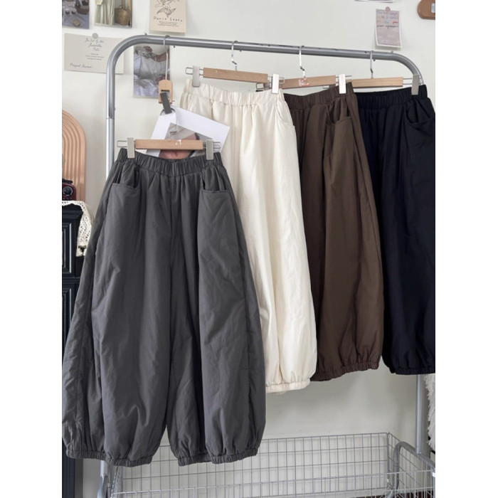 日系復古加棉燈籠褲女冬季松緊腰寬松大版棉褲防風束腳休閒濶腿褲