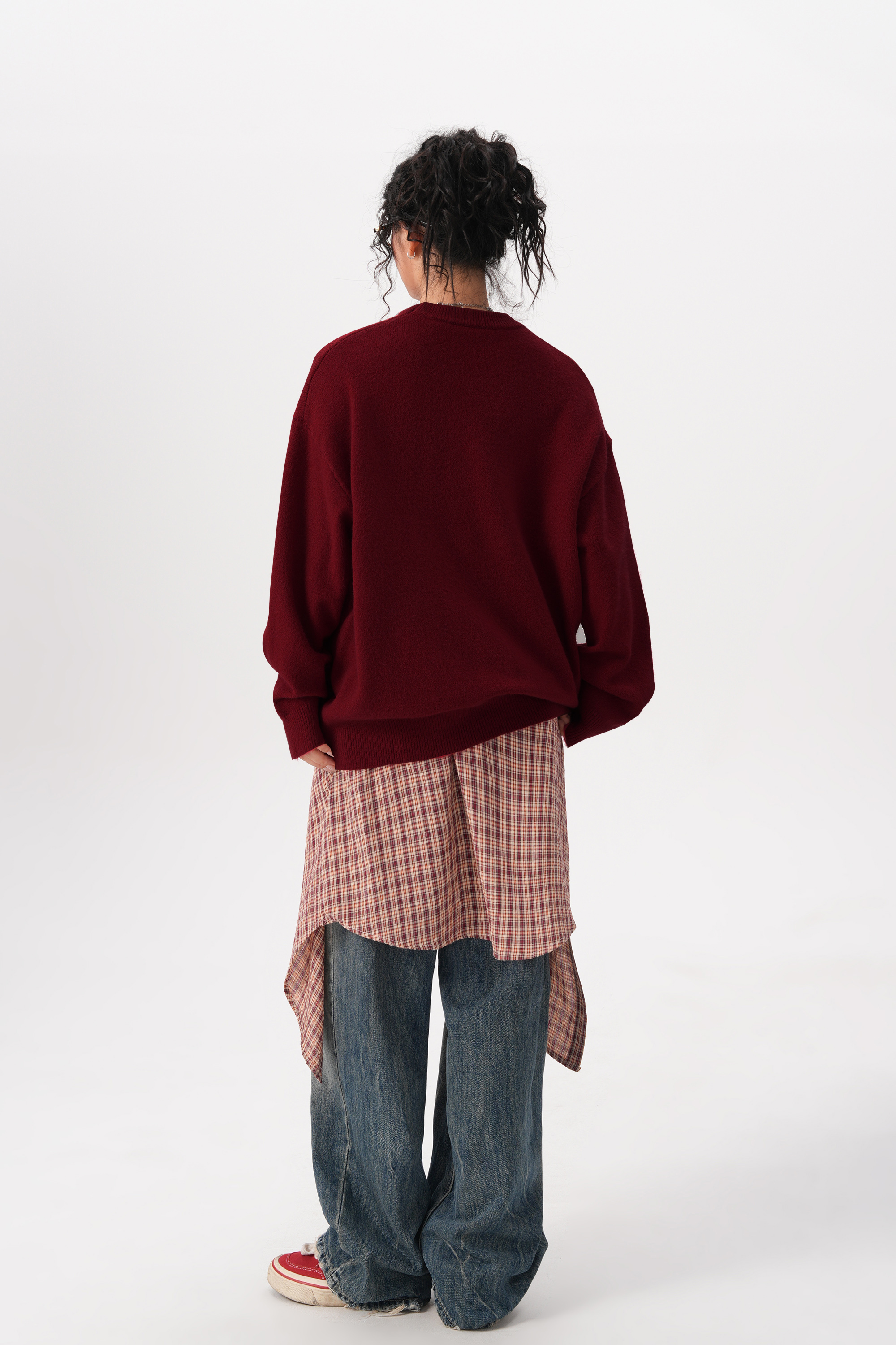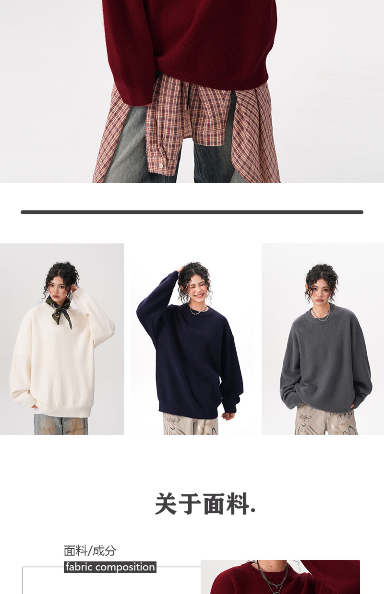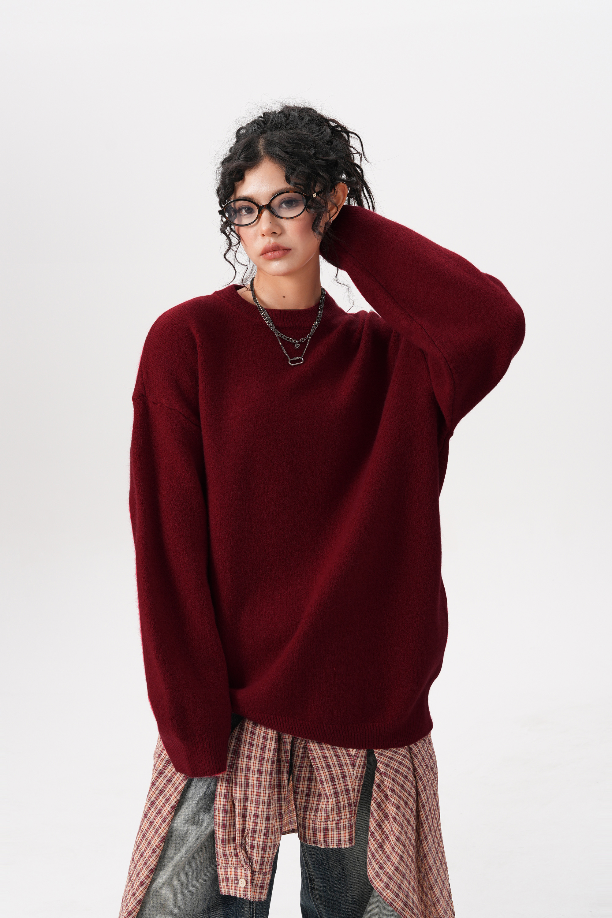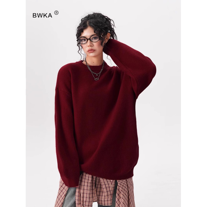 BWKA新年安可拉紅毛衣女男秋冬季復古重磅加厚線衣寬松慵懶針織衫
