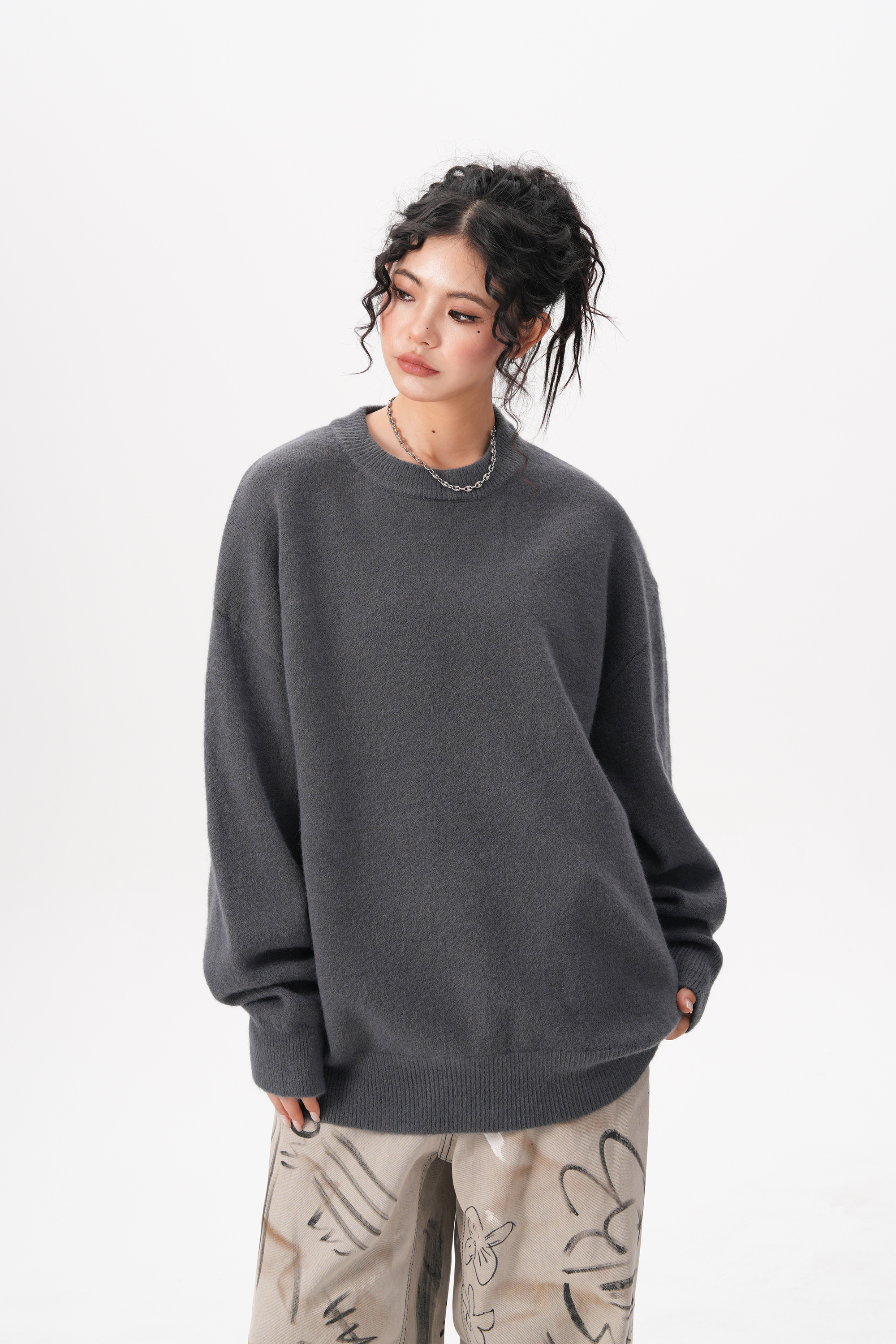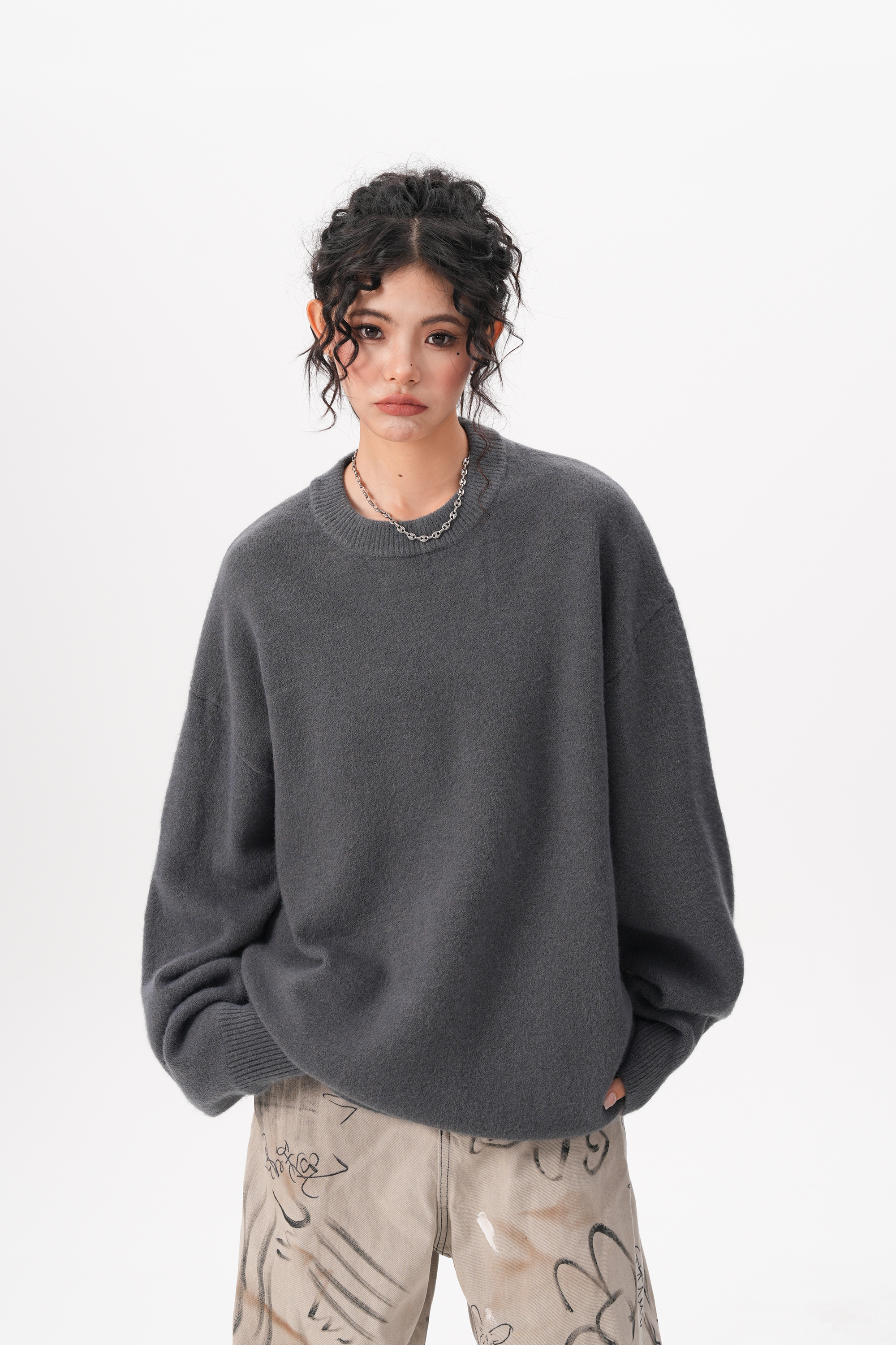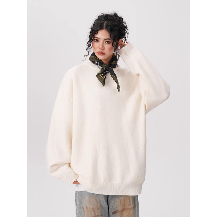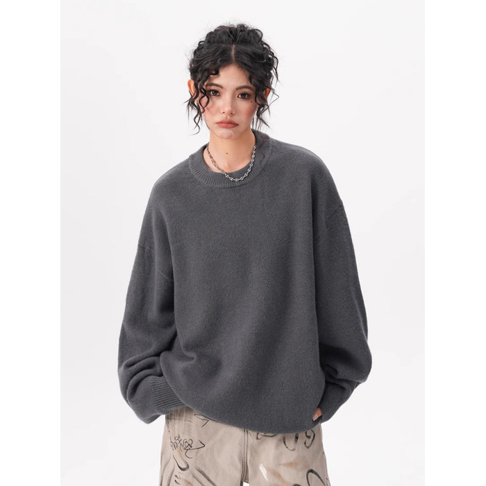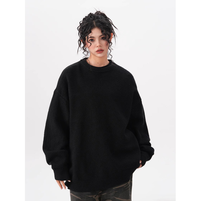 BWKA新年安可拉紅毛衣女男秋冬季復古重磅加厚線衣寬松慵懶針織衫