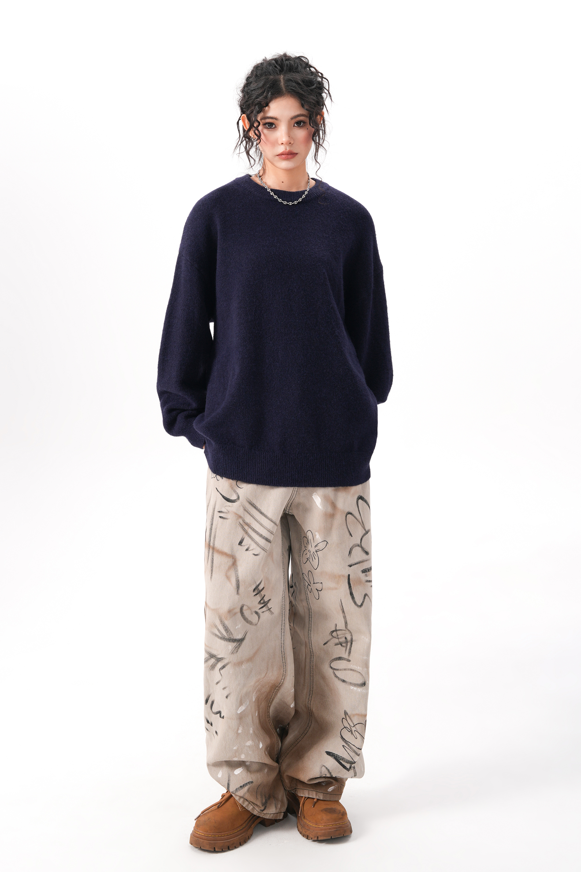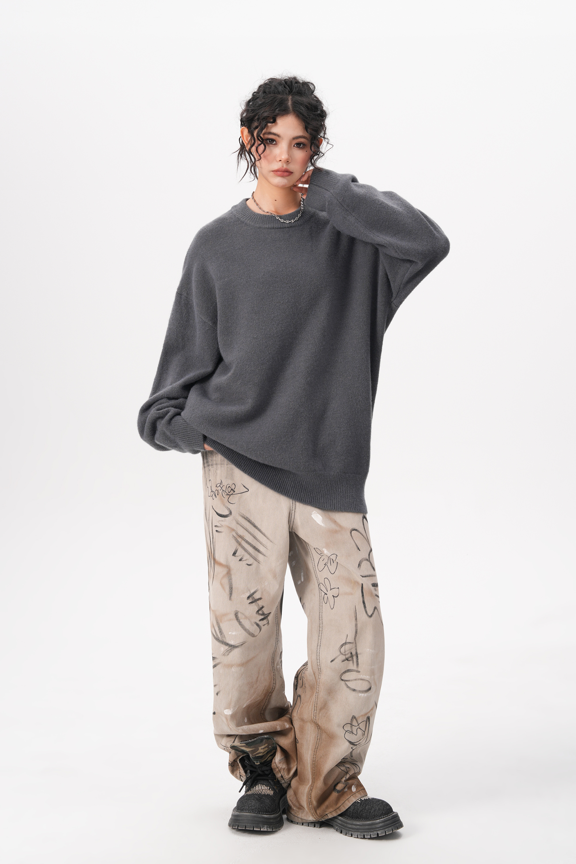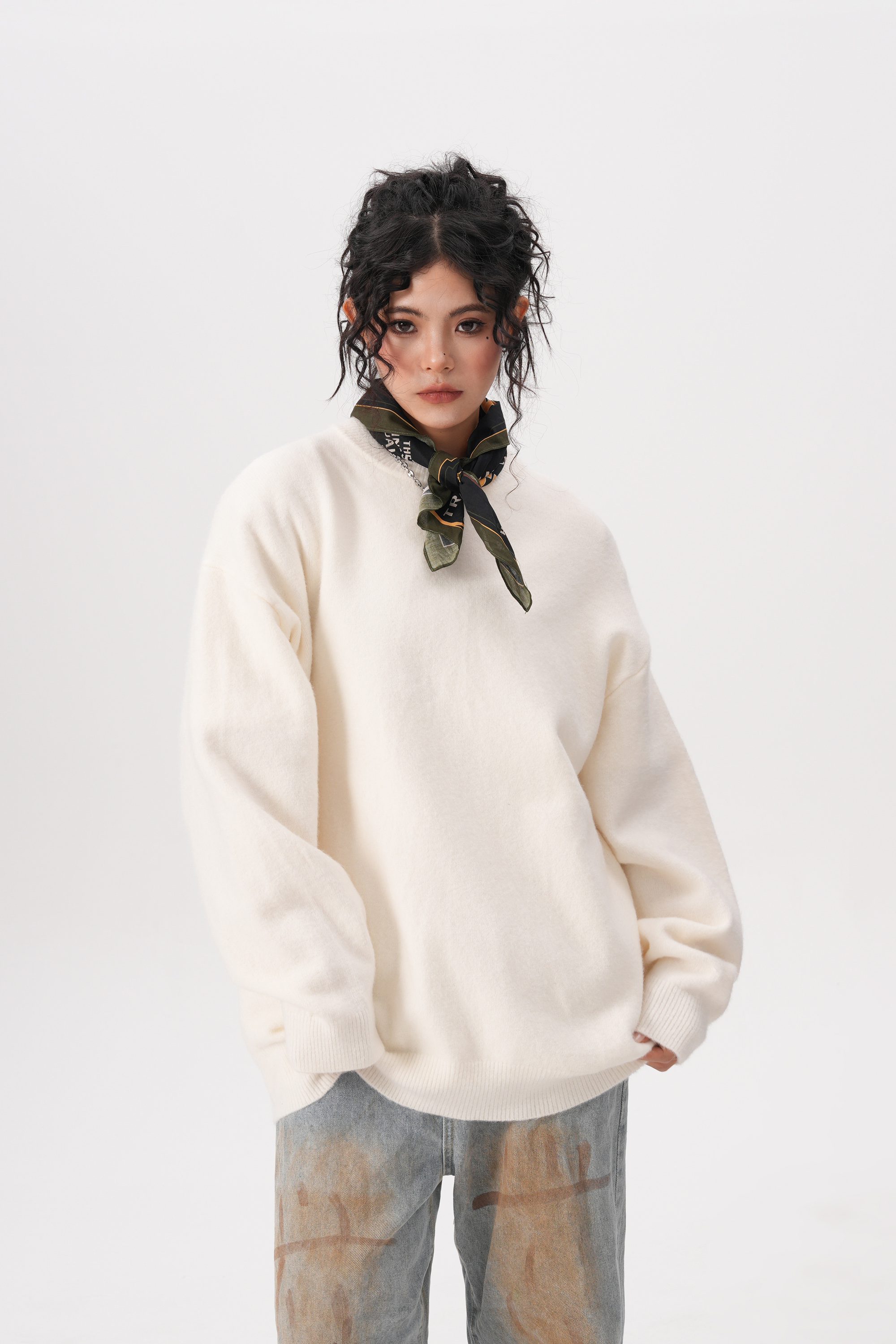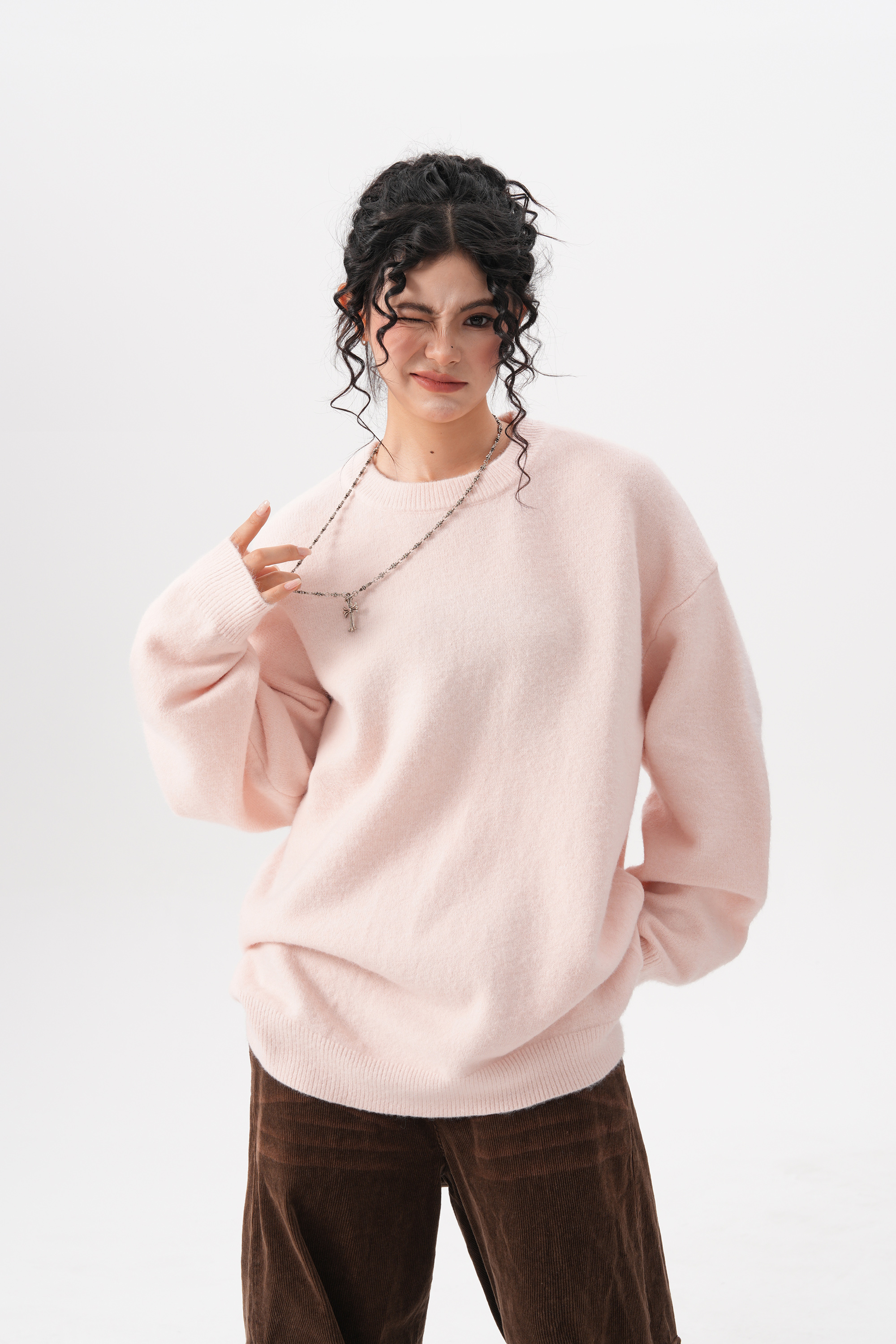 BWKA新年安可拉紅毛衣女男秋冬季復古重磅加厚線衣寬松慵懶針織衫