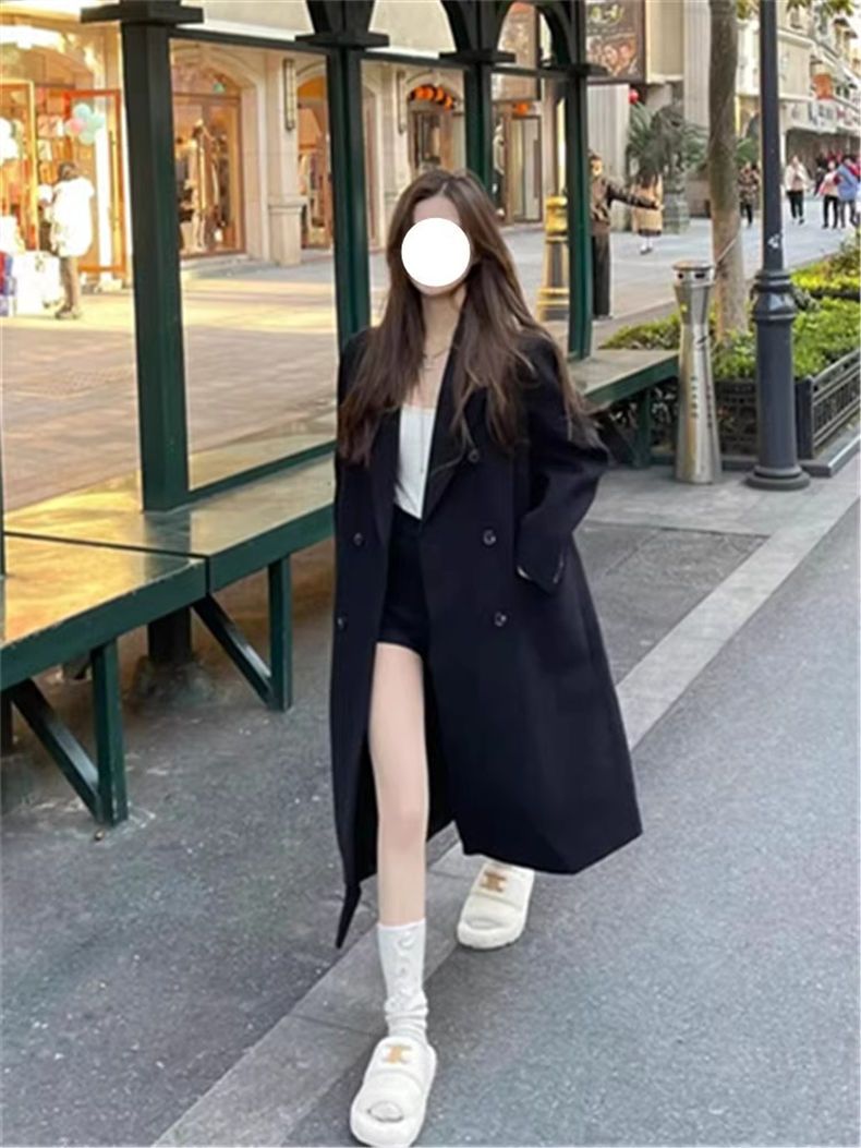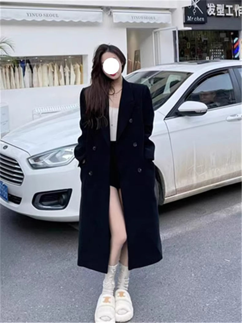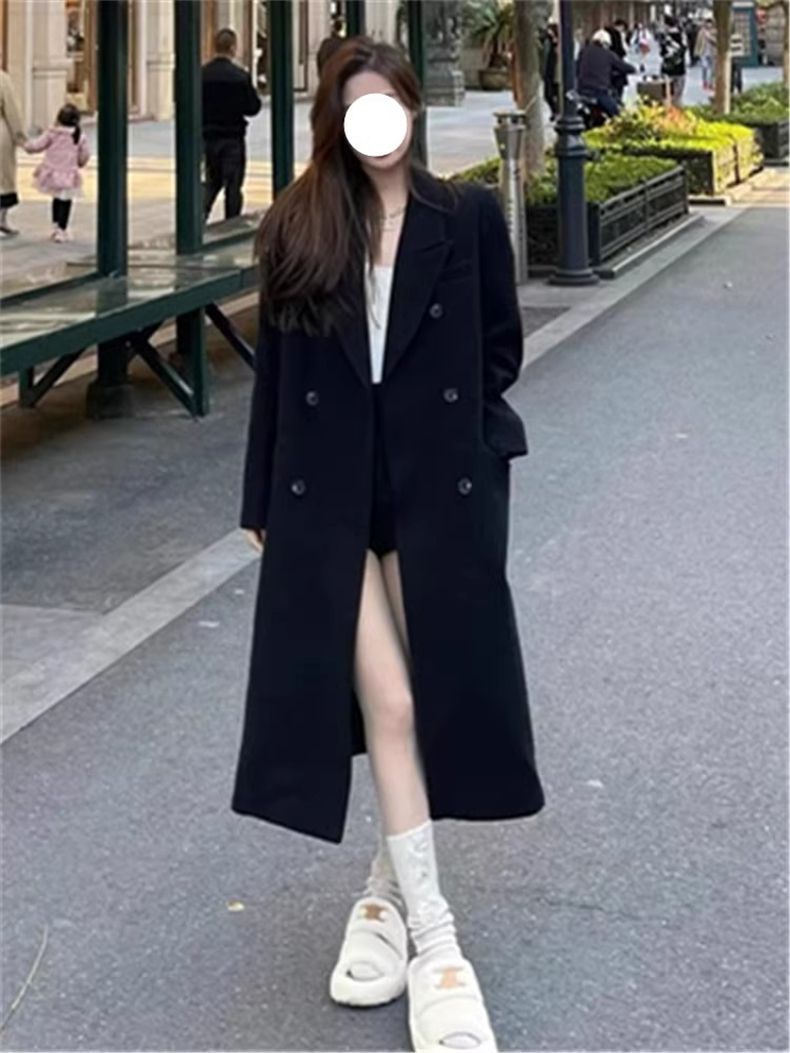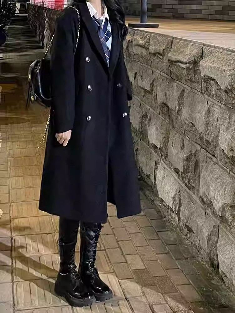女黑色潮毛呢外套赫本風小個子呢子大衣高級感秋冬季長款大衣