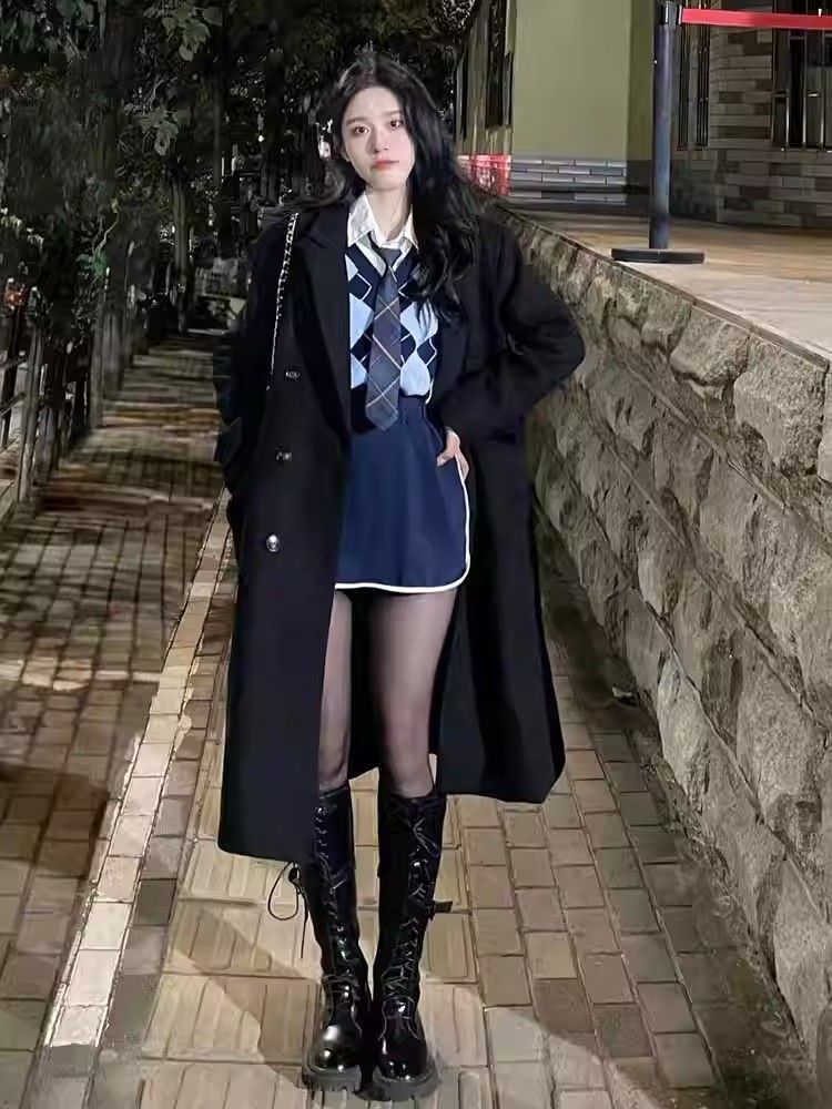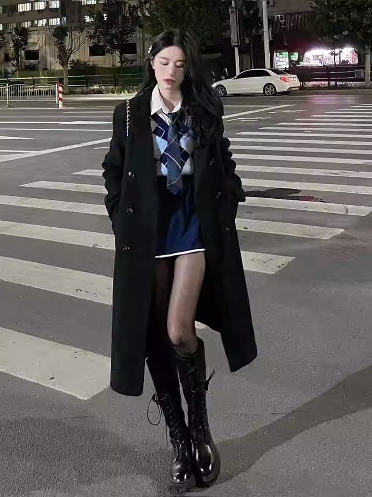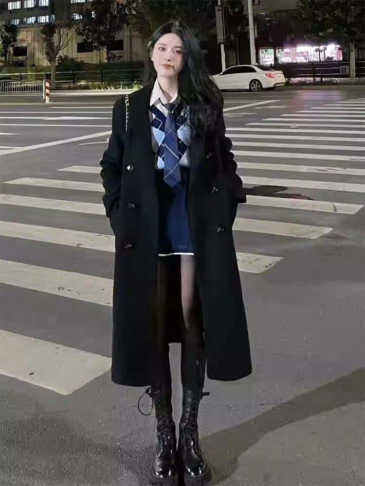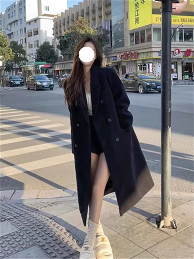 女黑色潮毛呢外套赫本風小個子呢子大衣高級感秋冬季長款大衣