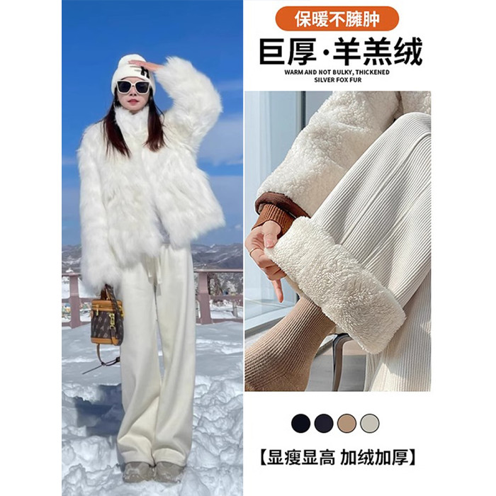 東北防寒裝備加厚羊羔絨濶腿褲加絨保暖直筒寬松哈爾濱雪鄕旅遊