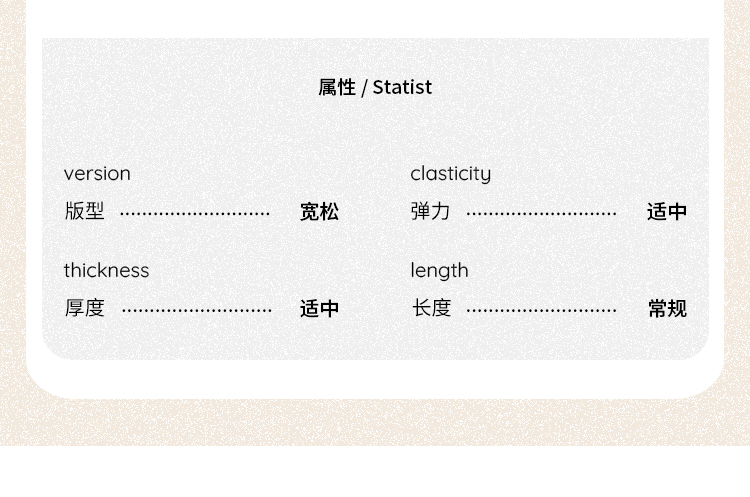 | 材質成分 | 聚對苯二甲酸乙二酯(滌綸)45% 聚丙烯腈纖維(腈綸)37% 改性聚丙烯腈纖維(改性腈綸)8% 羊毛7% 聚氨酯彈性纖維(氨綸)3% |