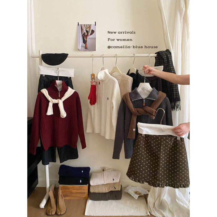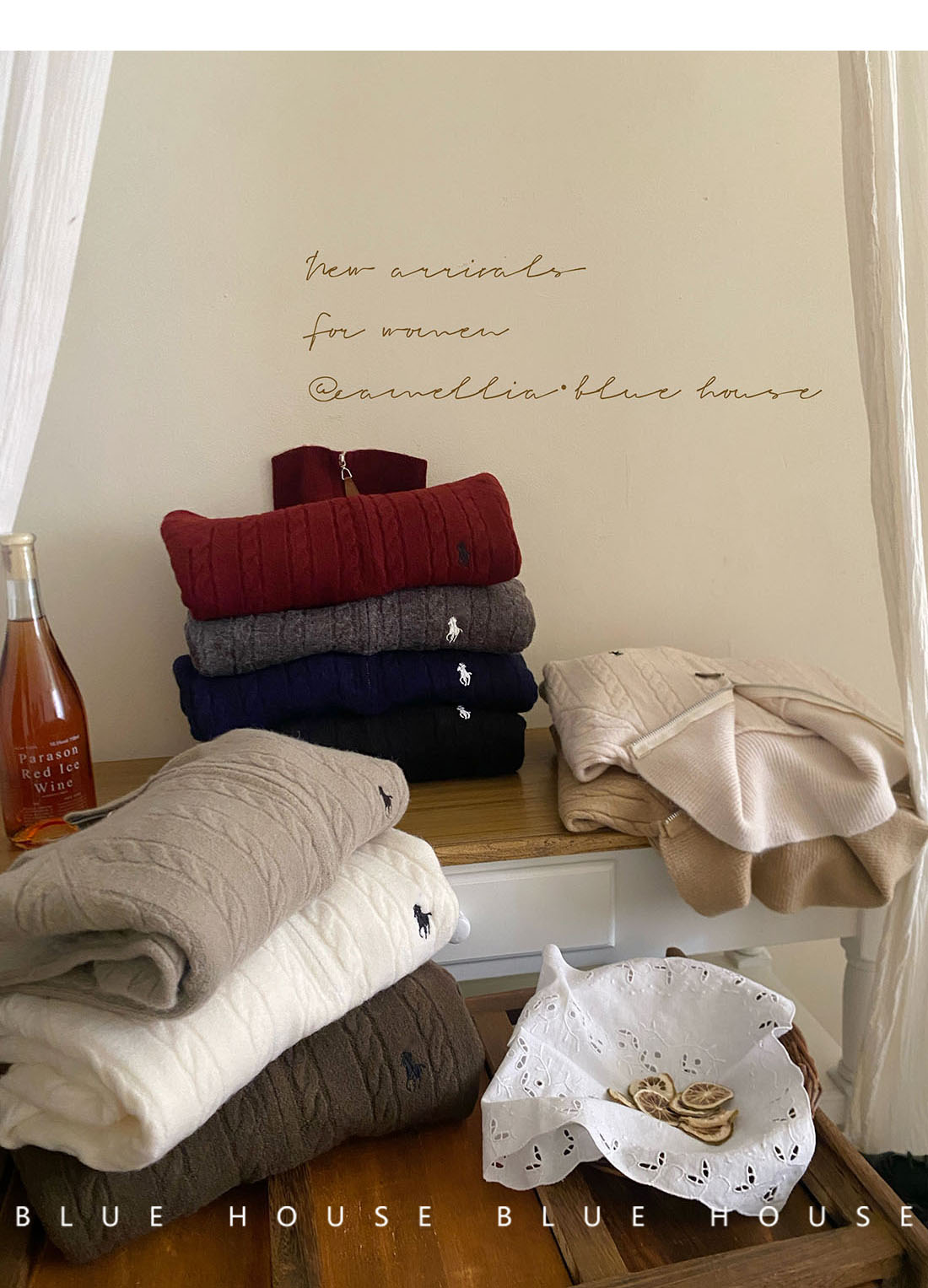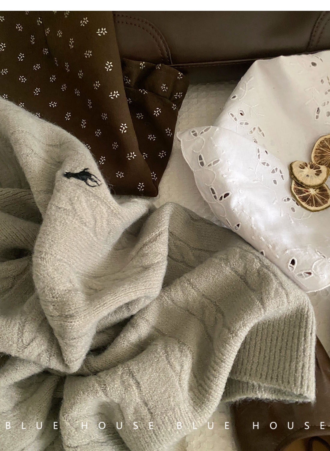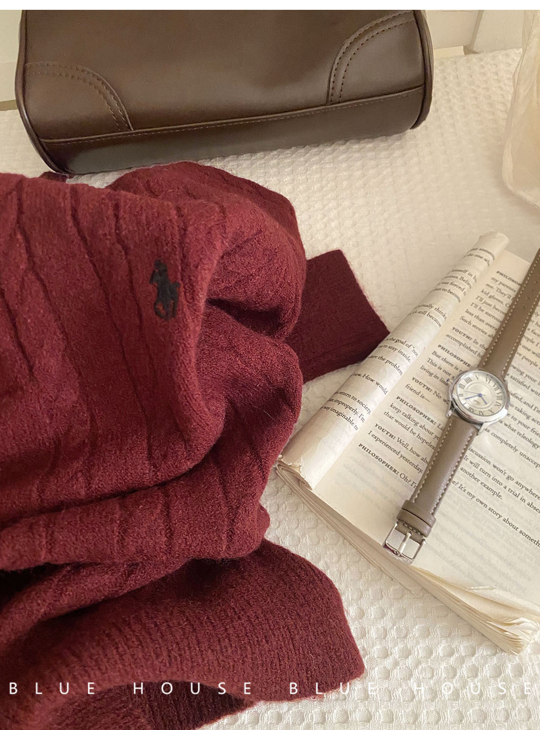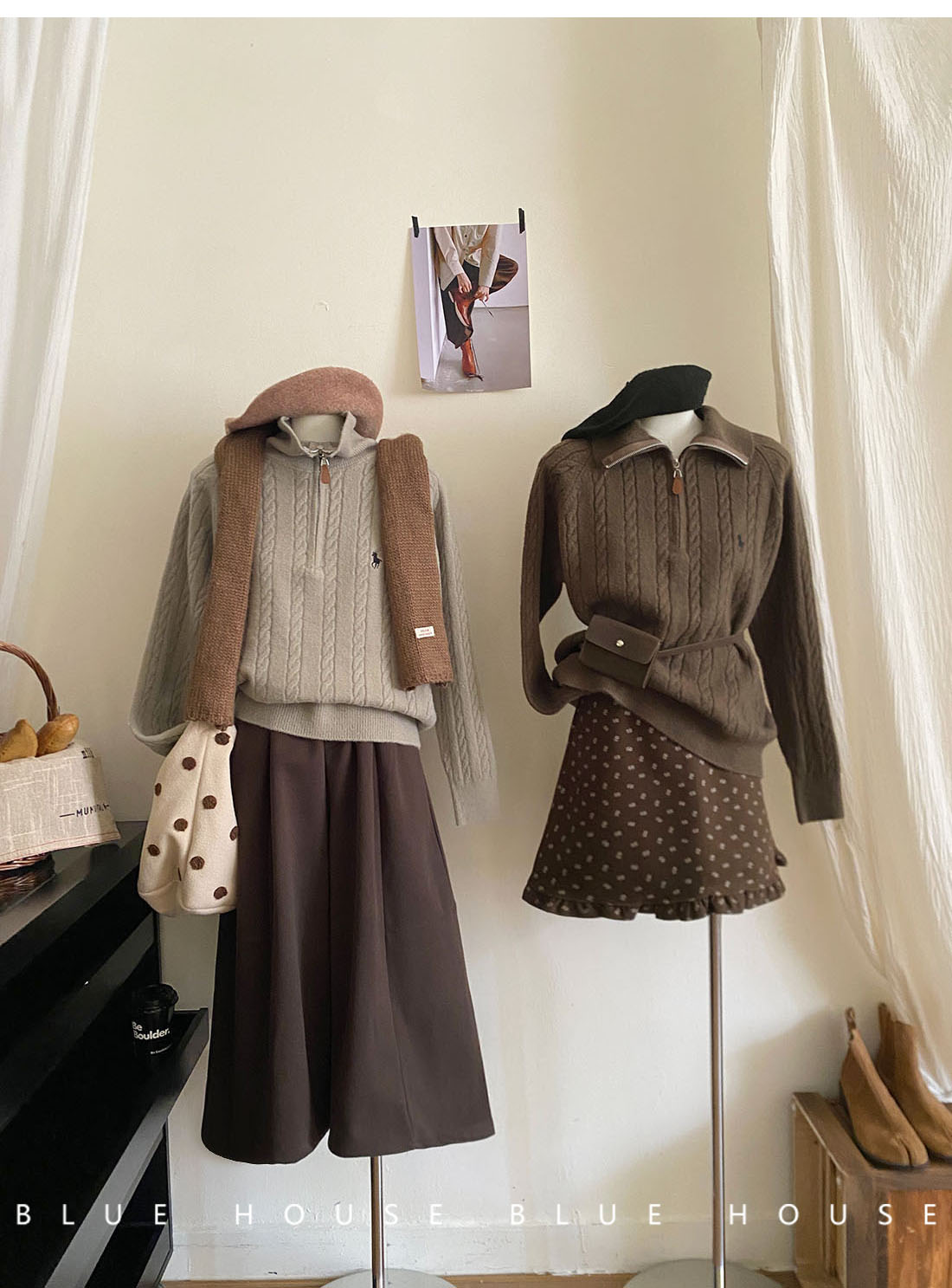 韓系復古麻花半拉鍊立領毛衣女秋冬小刺綉休閒百搭套頭針織衫上衣