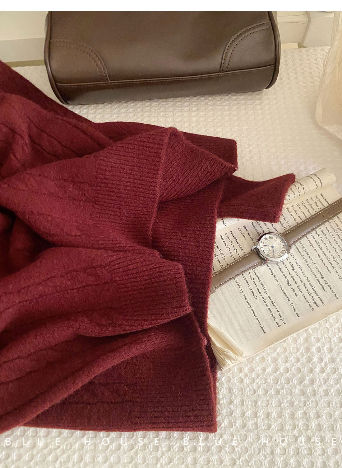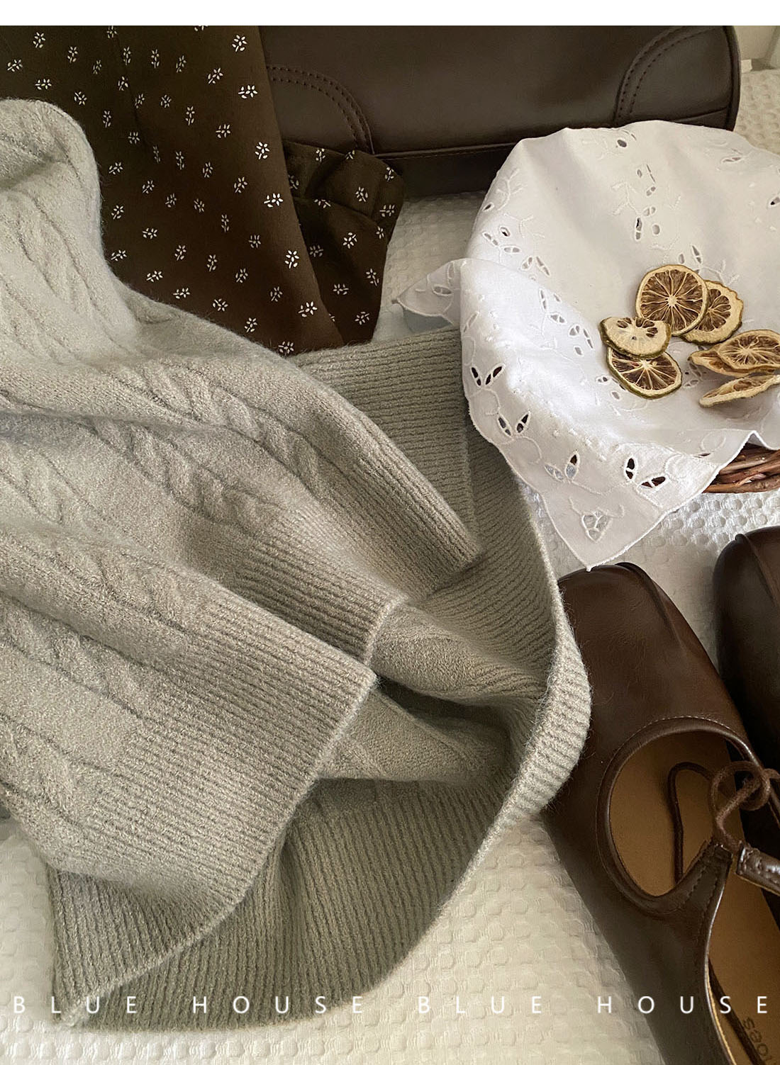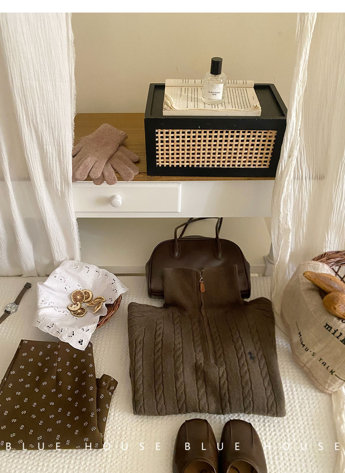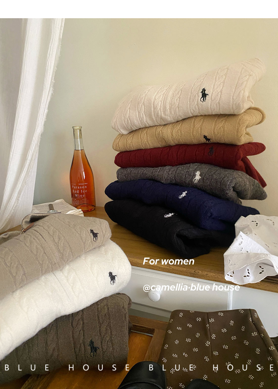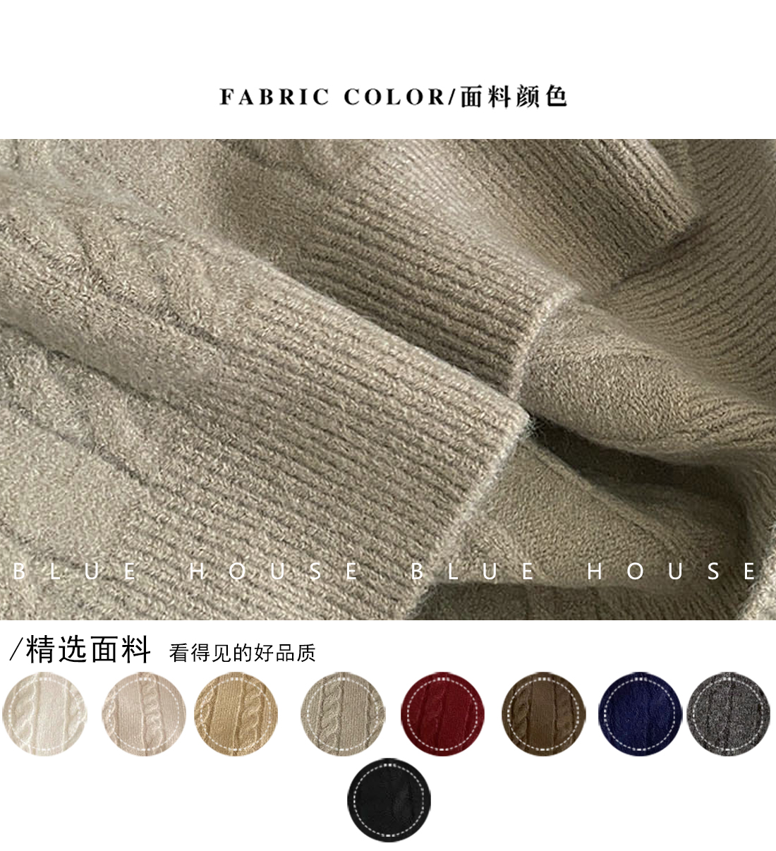 韓系復古麻花半拉鍊立領毛衣女秋冬小刺綉休閒百搭套頭針織衫上衣