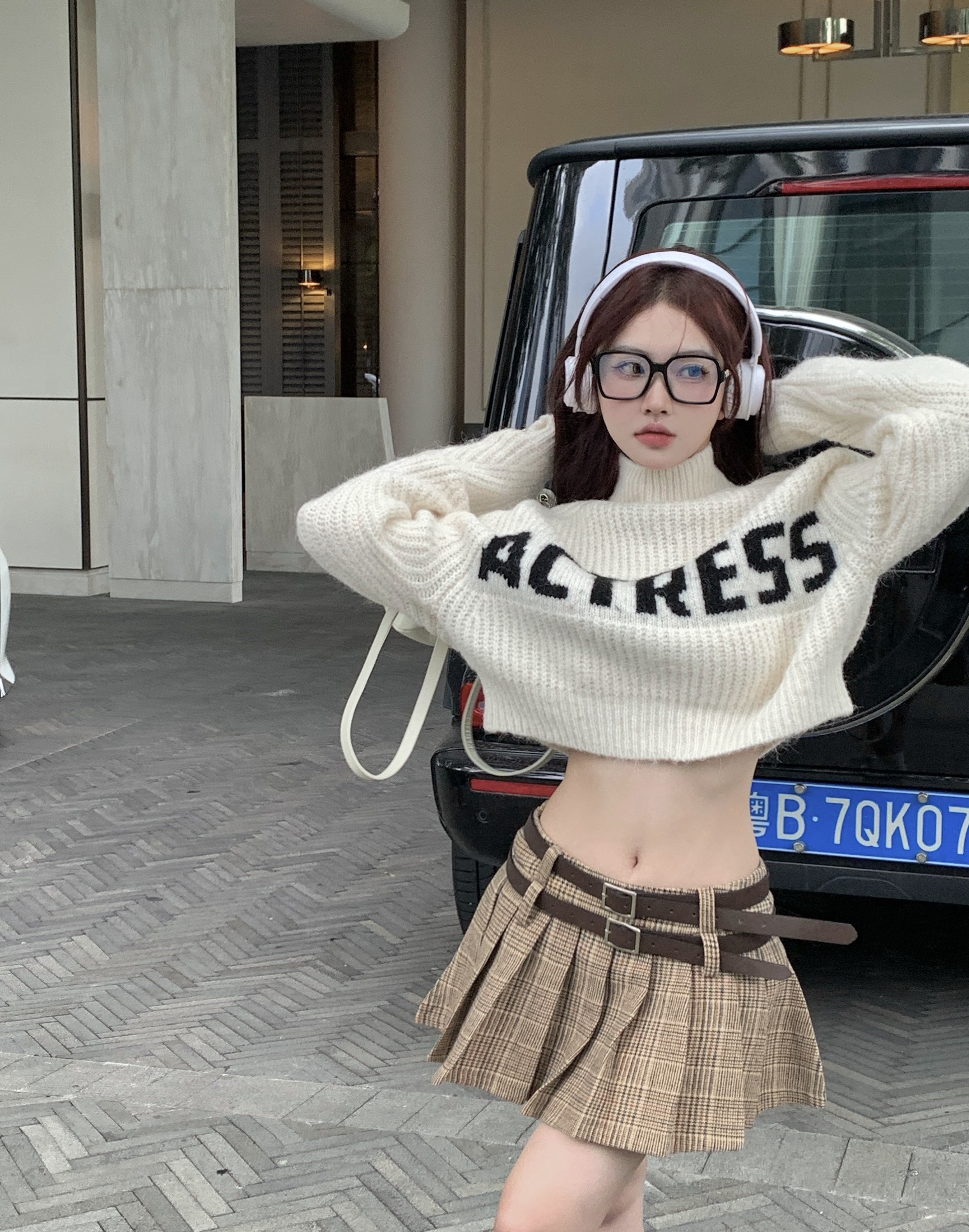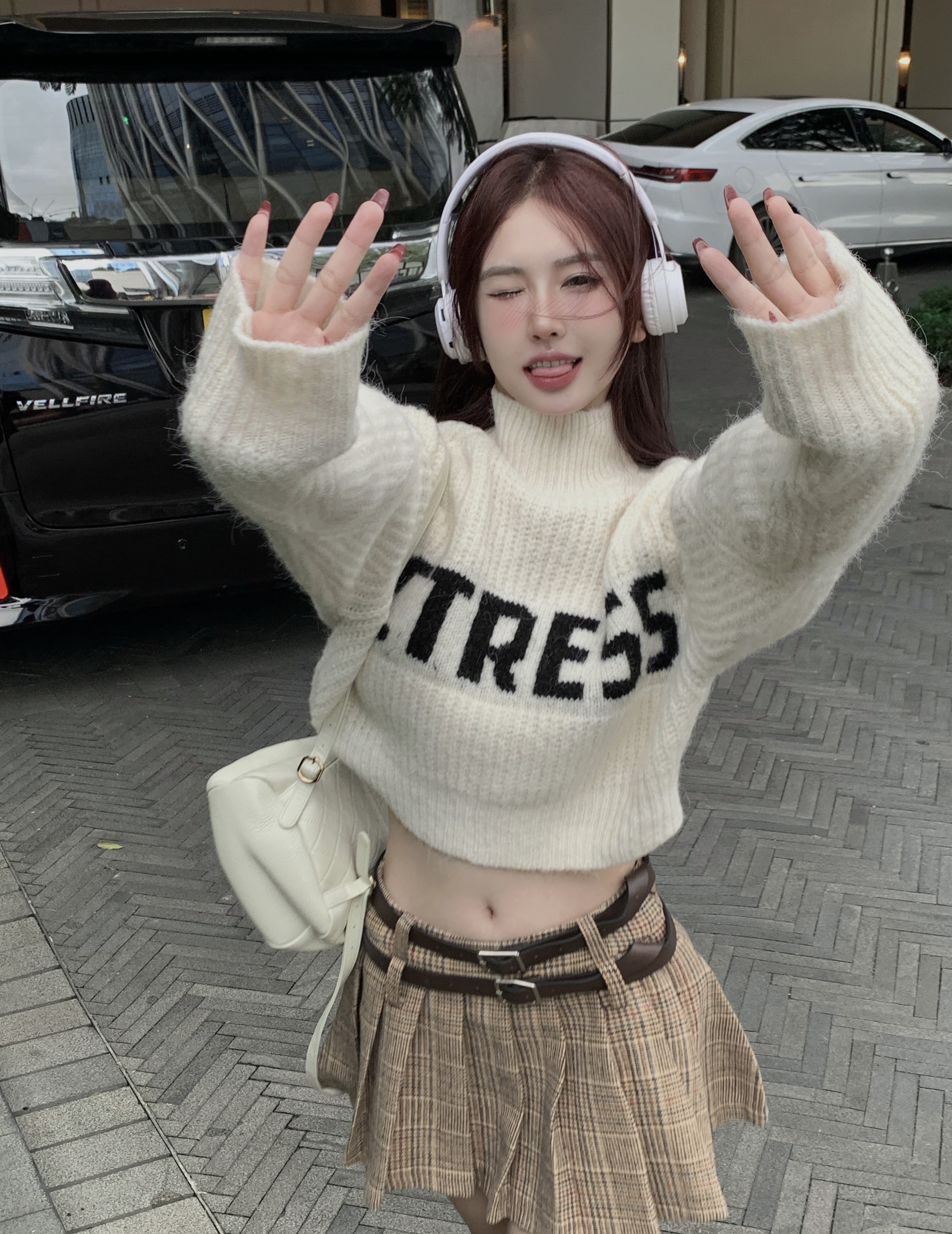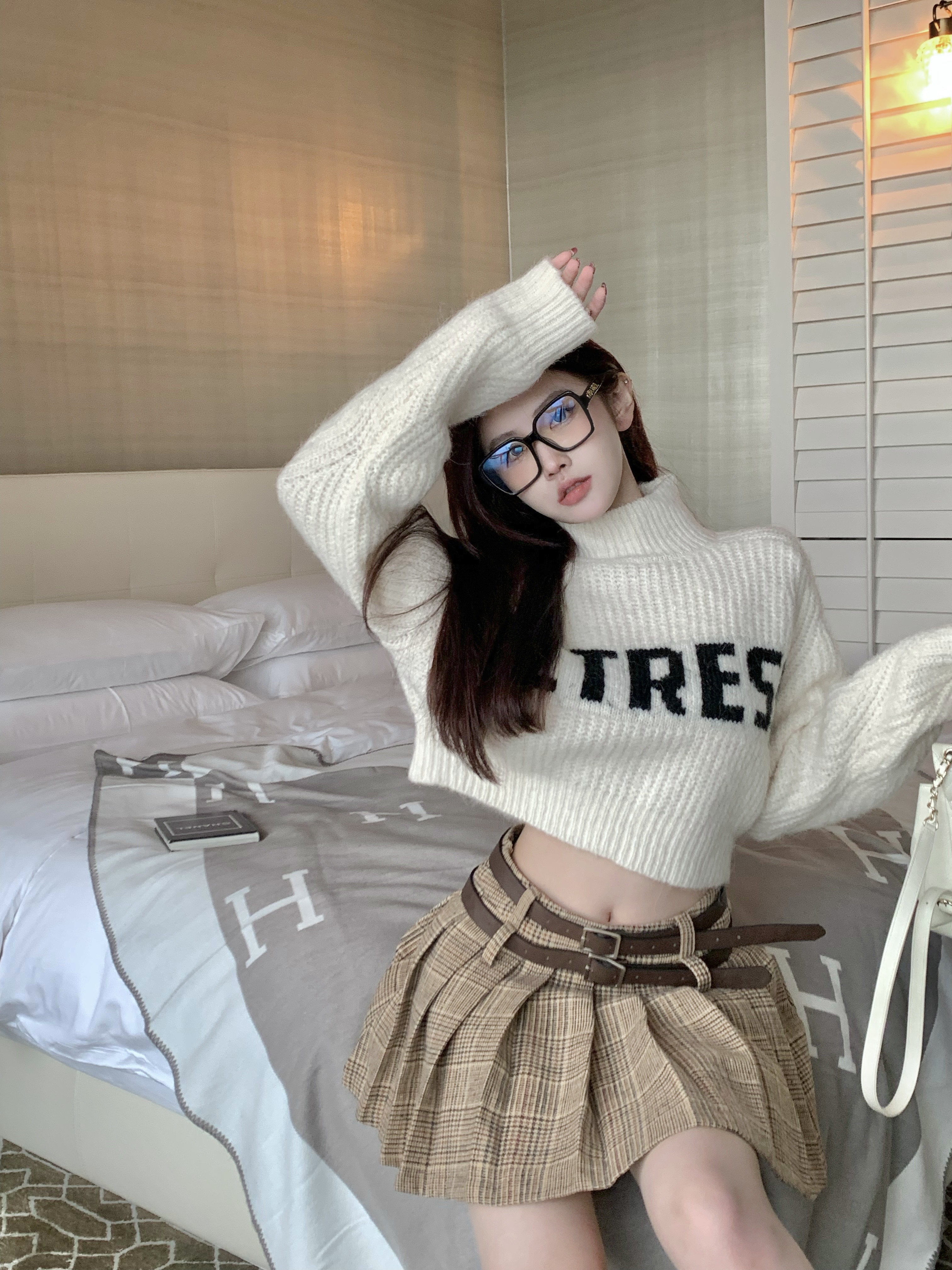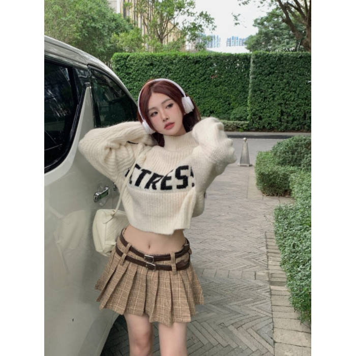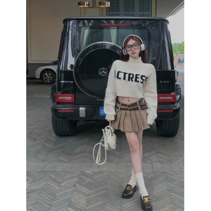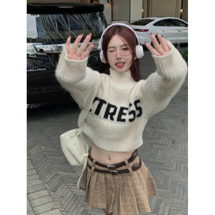 純欲甜辣妹性感短款上衣女秋季設計感小衆高領針織衫毛衣外套上衣