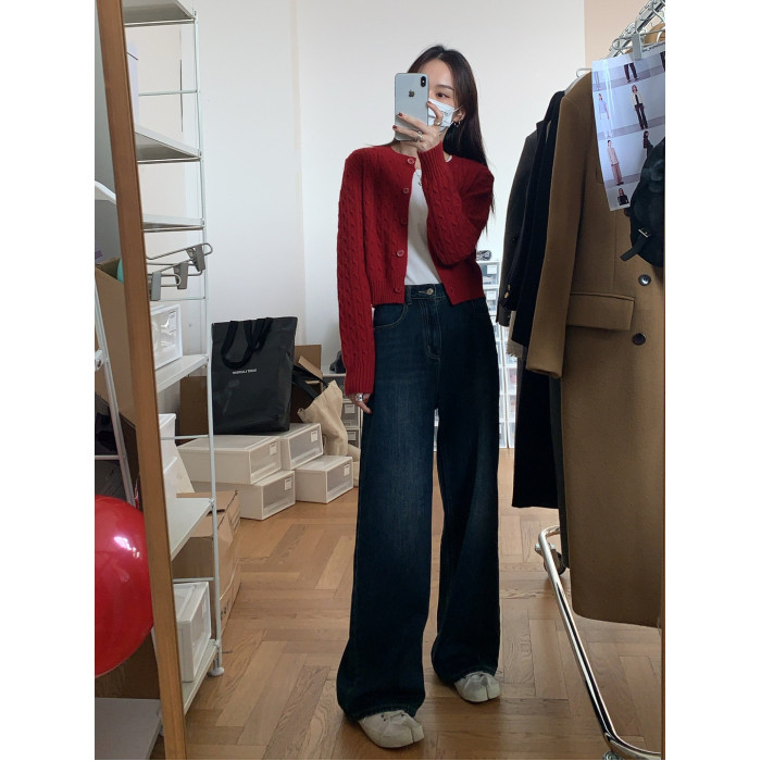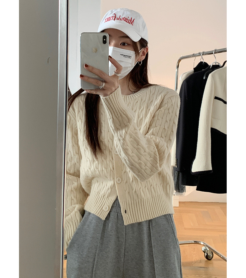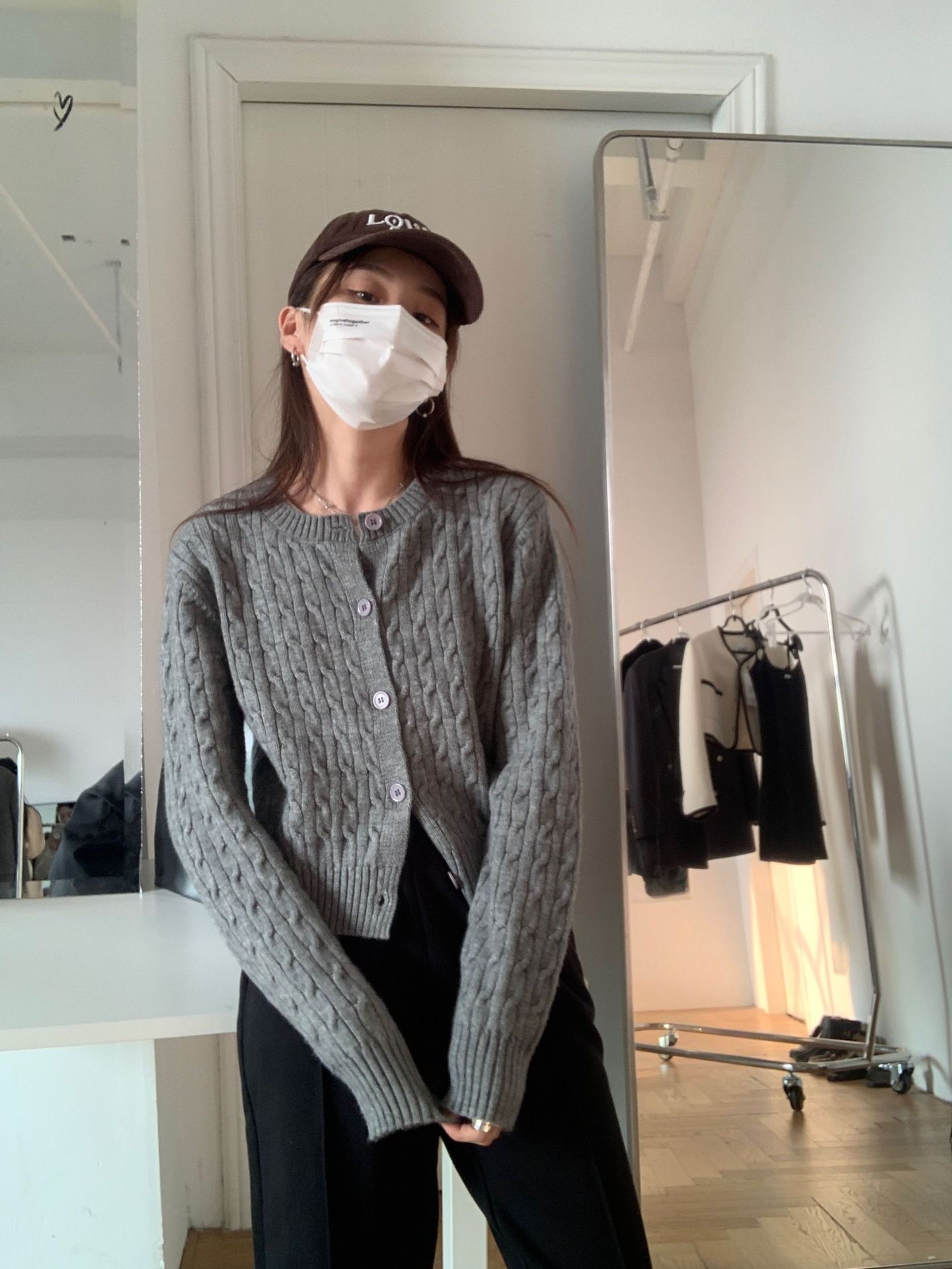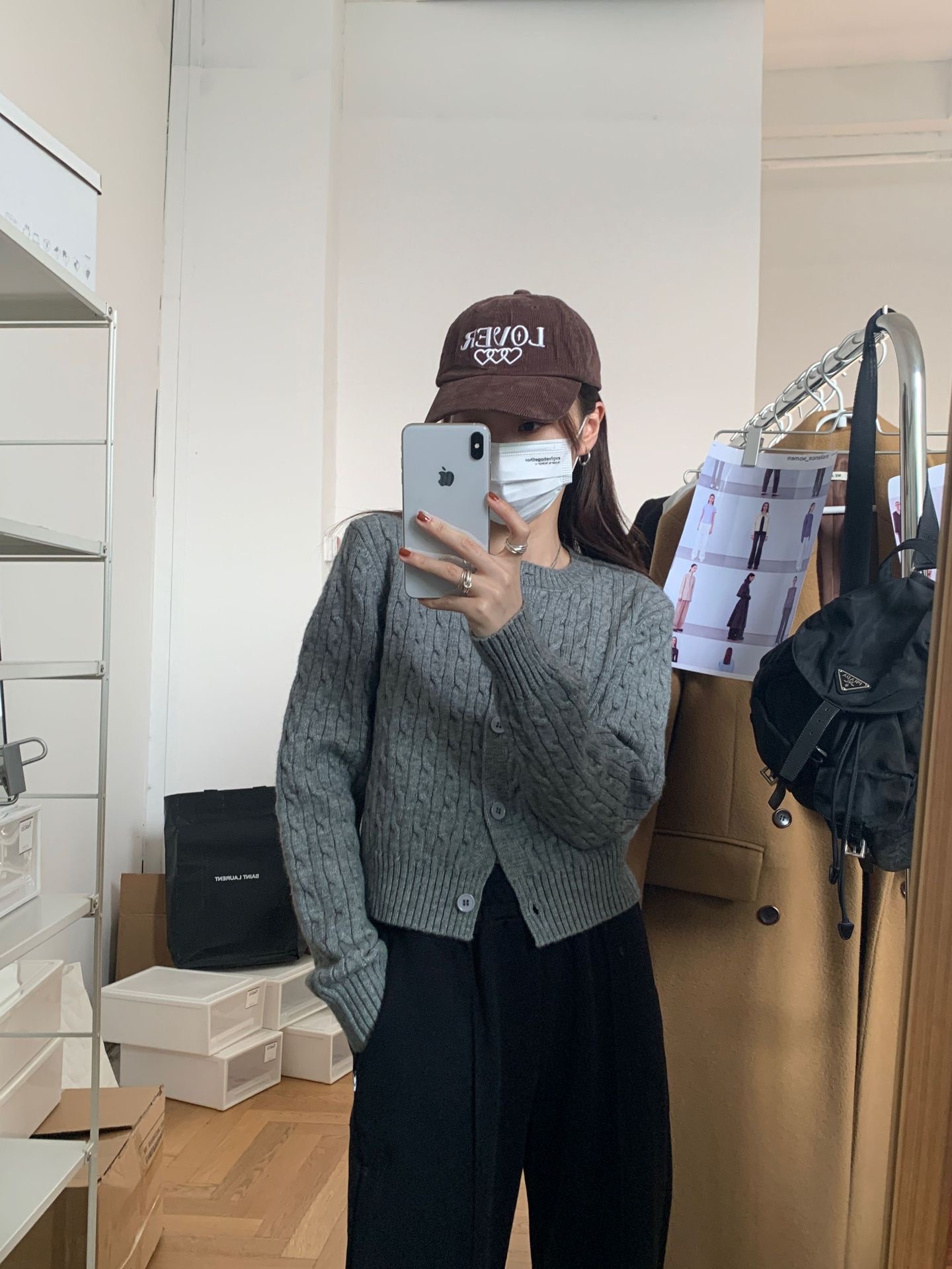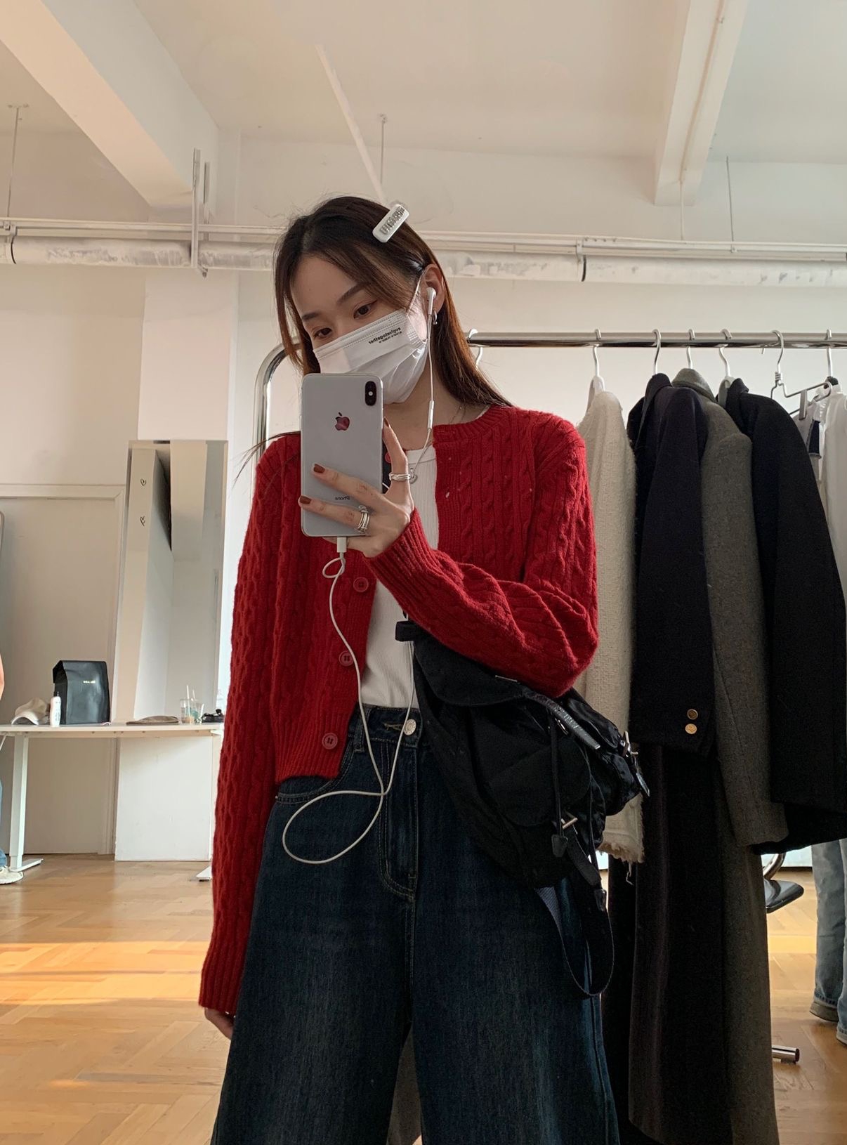 麻花開衫毛衣女外套秋冬內搭學院風灰色紅色針織衫小個子短款上衣