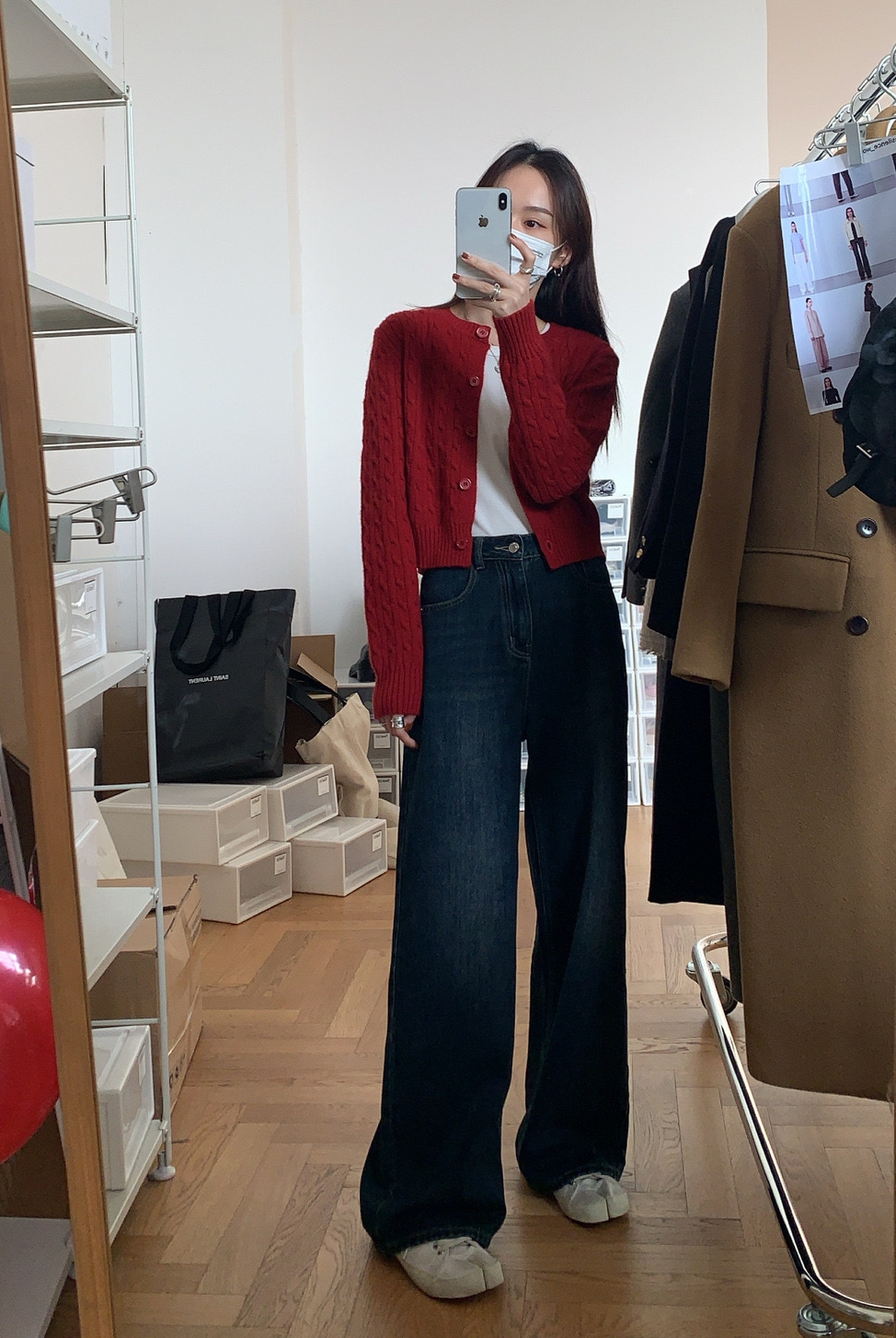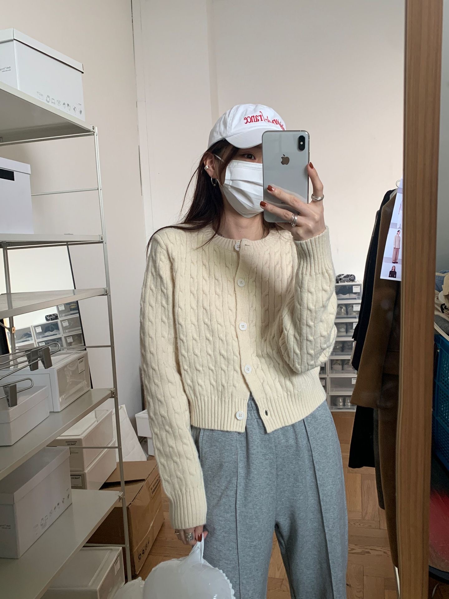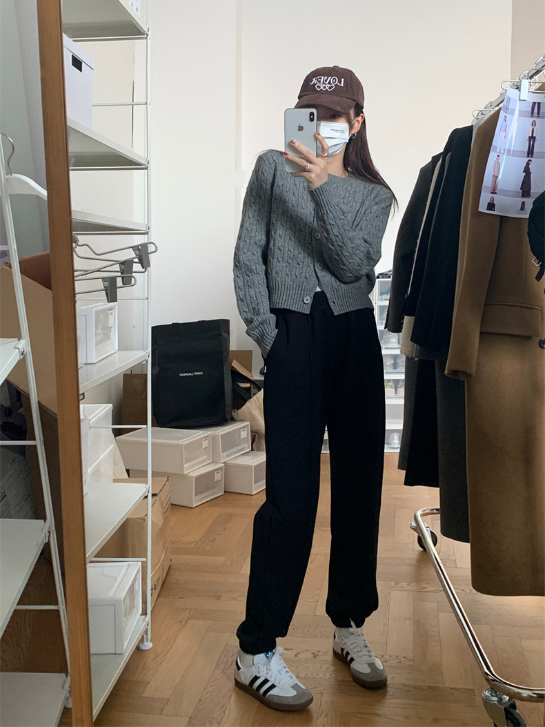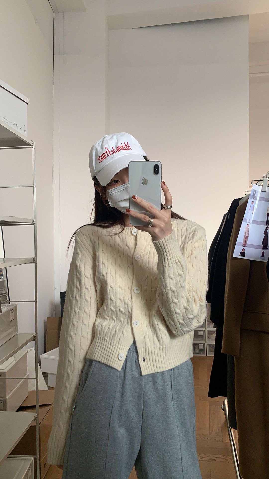 麻花開衫毛衣女外套秋冬內搭學院風灰色紅色針織衫小個子短款上衣