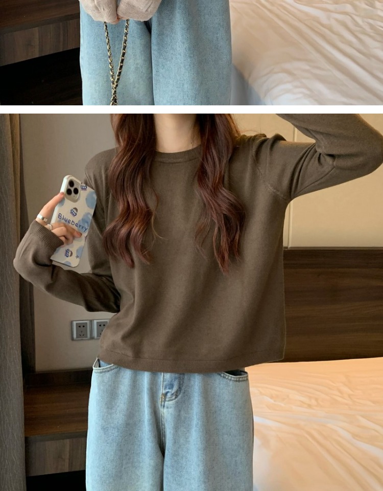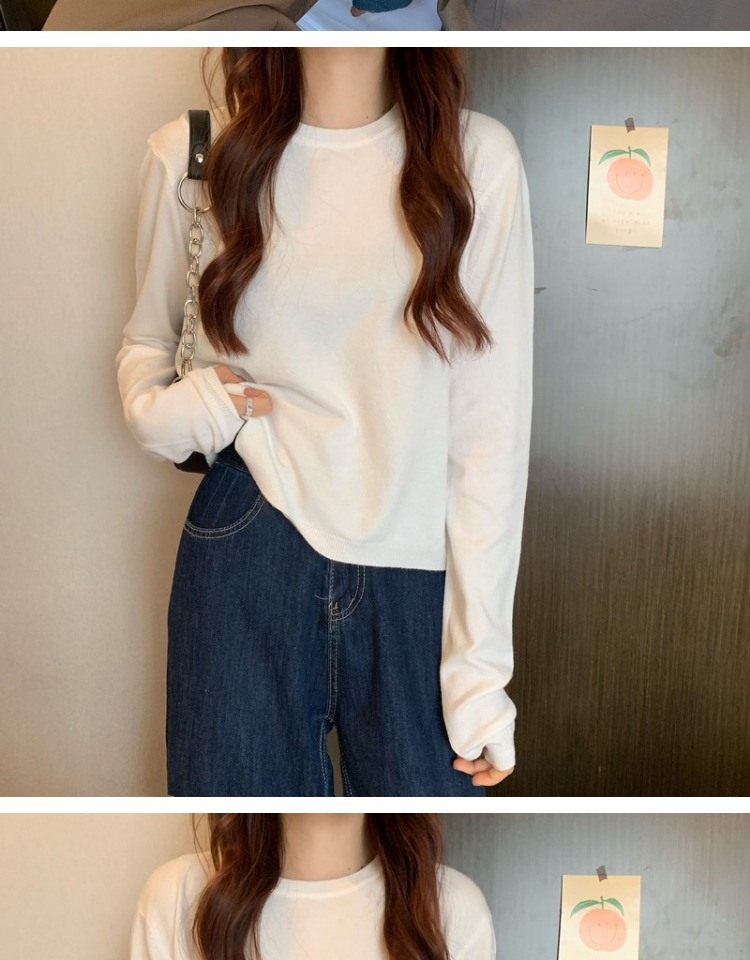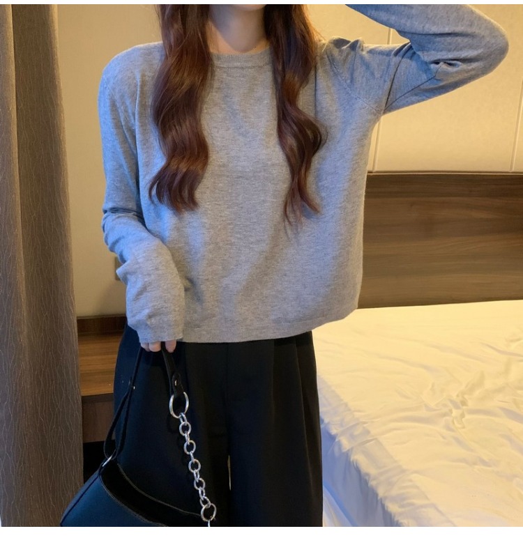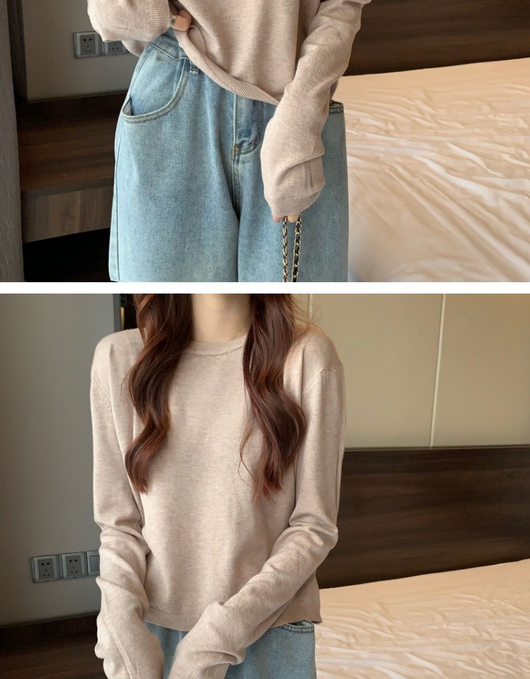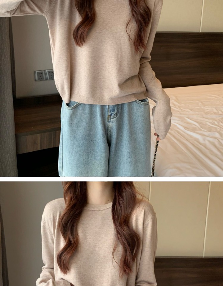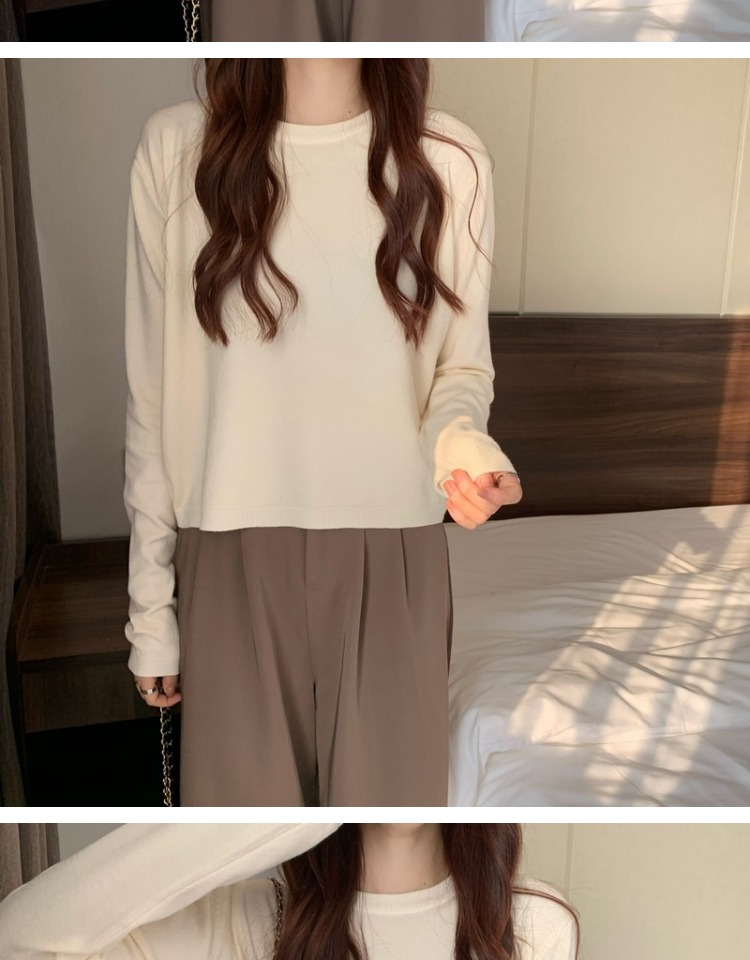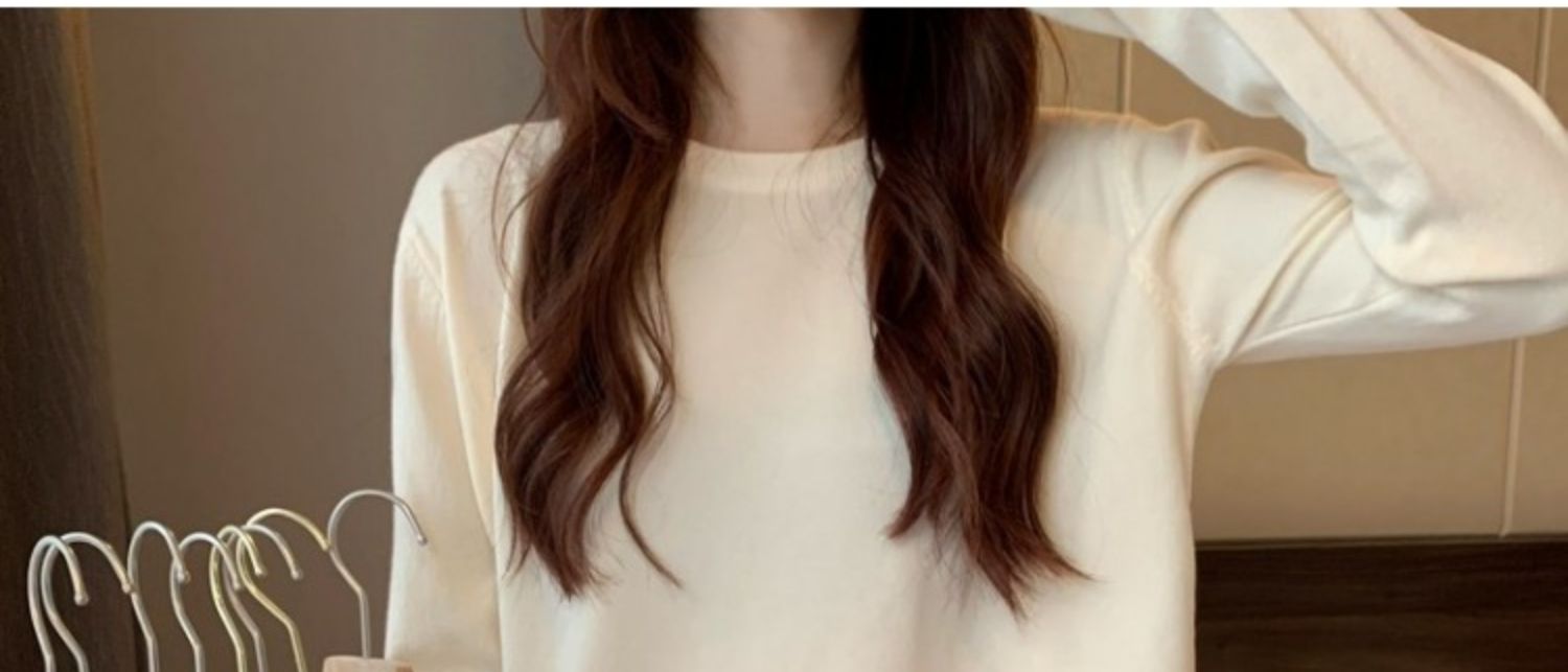 米白針織衫上衣女秋冬薄款2025寬松套頭圓領外搭打底短款杏色毛衣