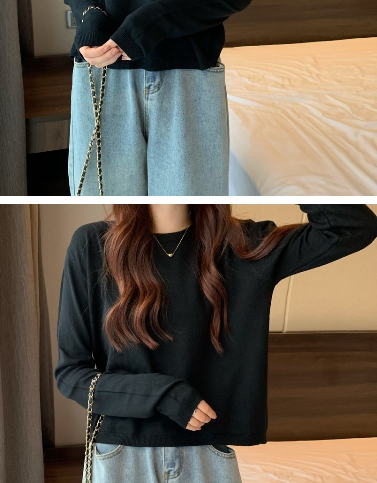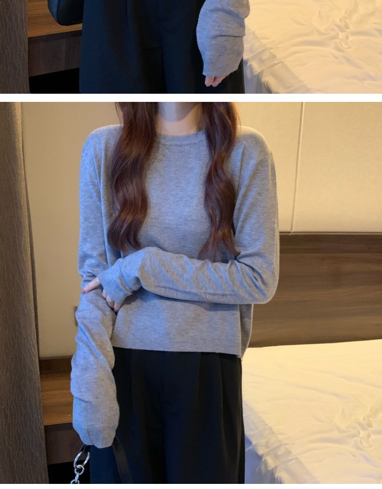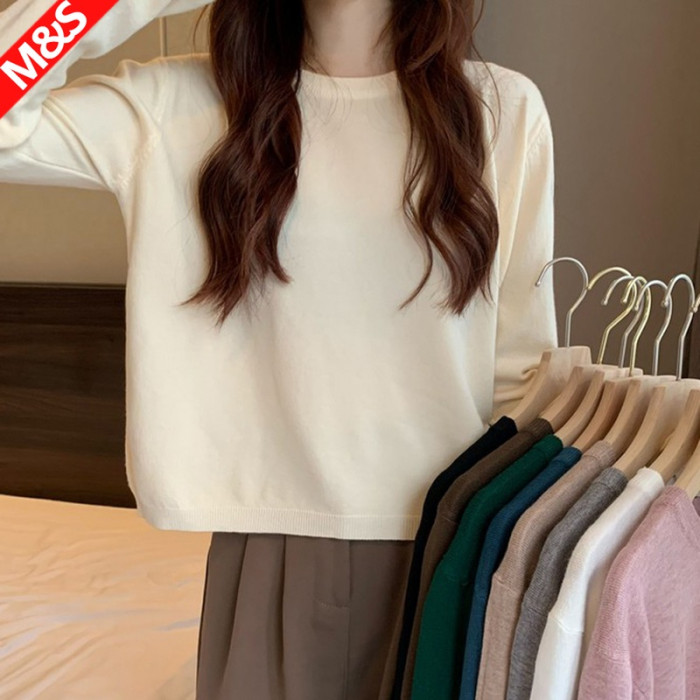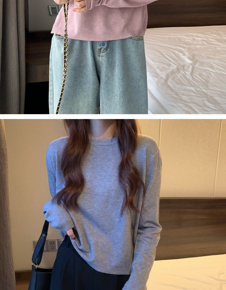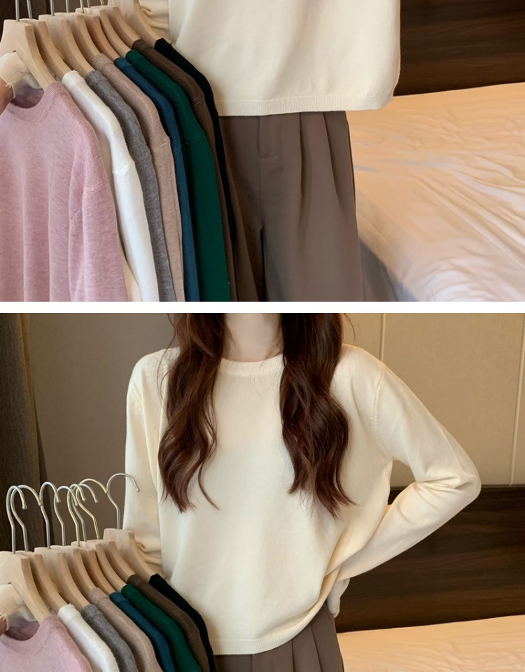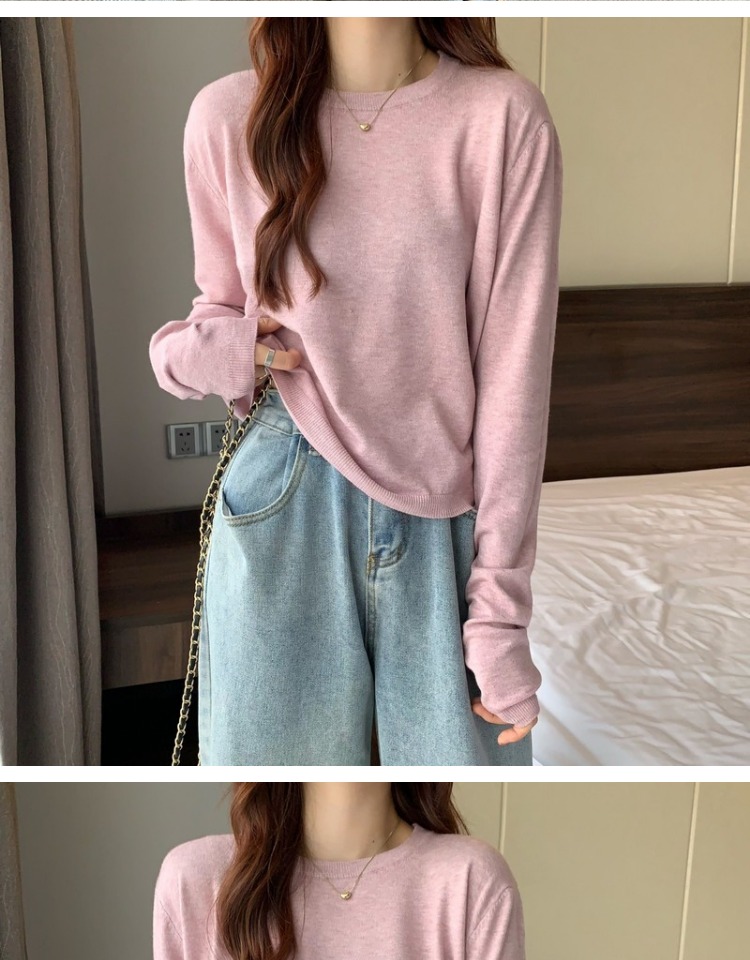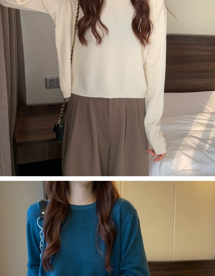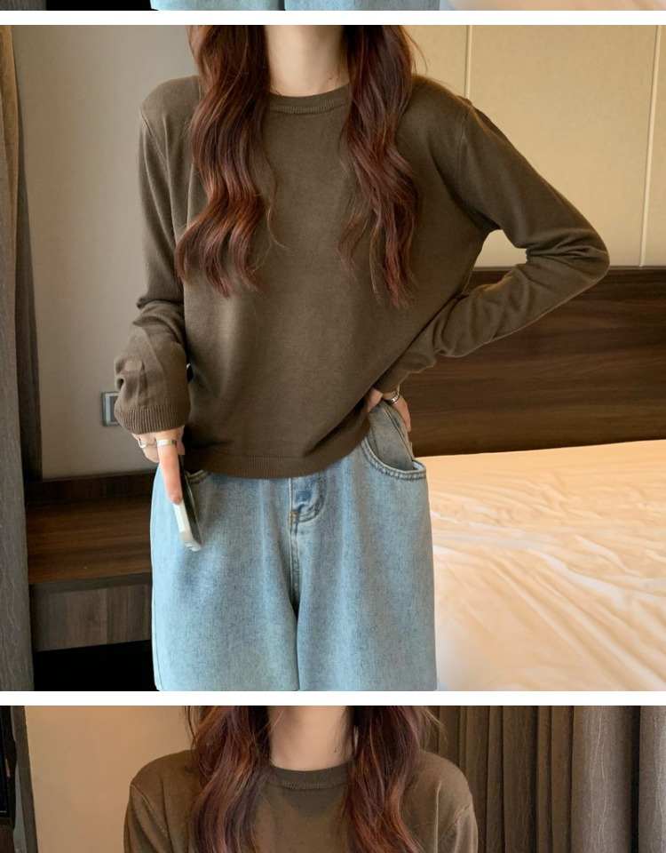 米白針織衫上衣女秋冬薄款2025寬松套頭圓領外搭打底短款杏色毛衣
