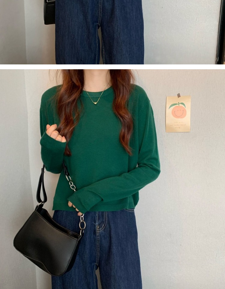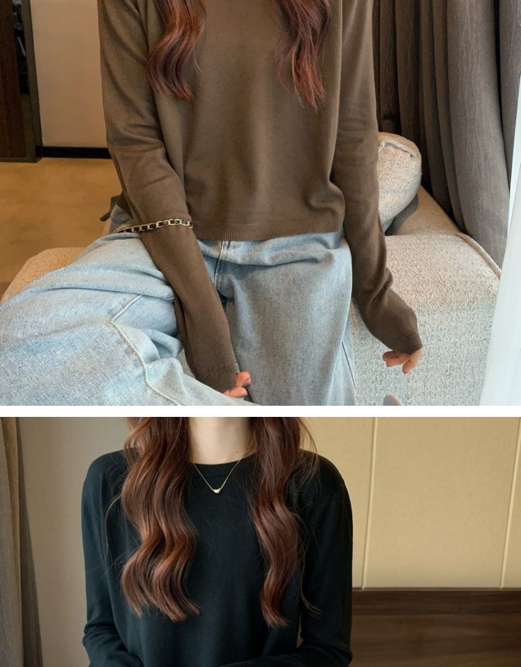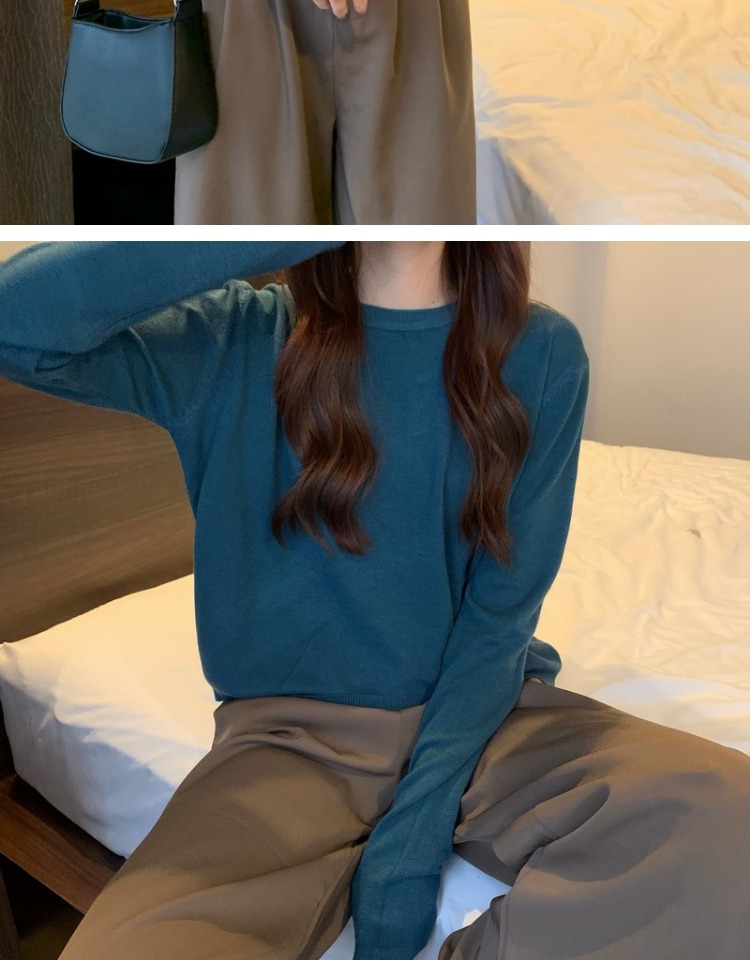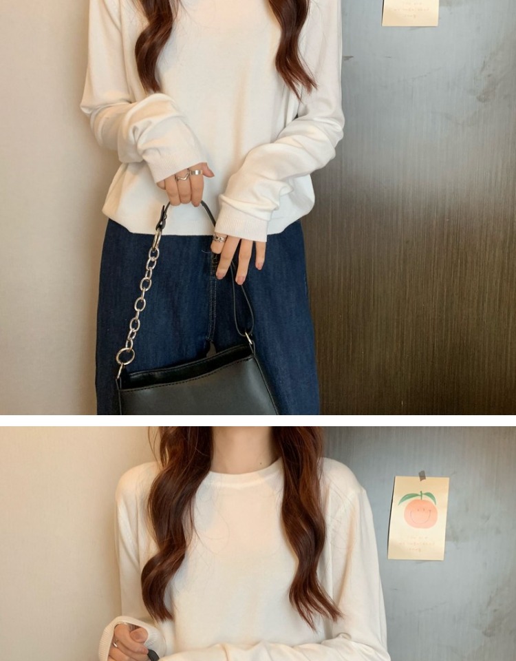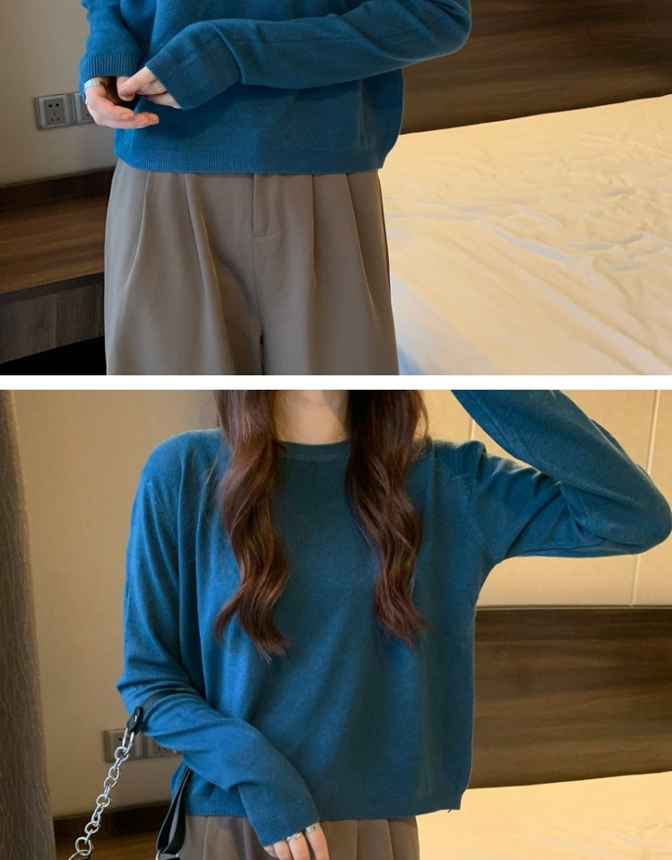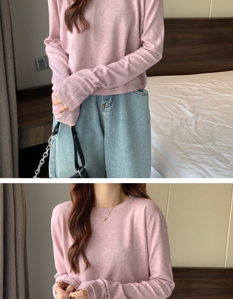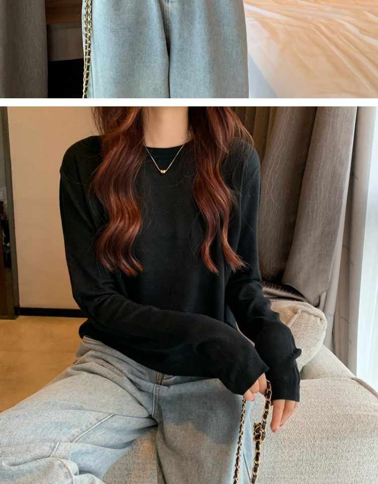 米白針織衫上衣女秋冬薄款2025寬松套頭圓領外搭打底短款杏色毛衣