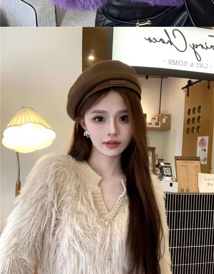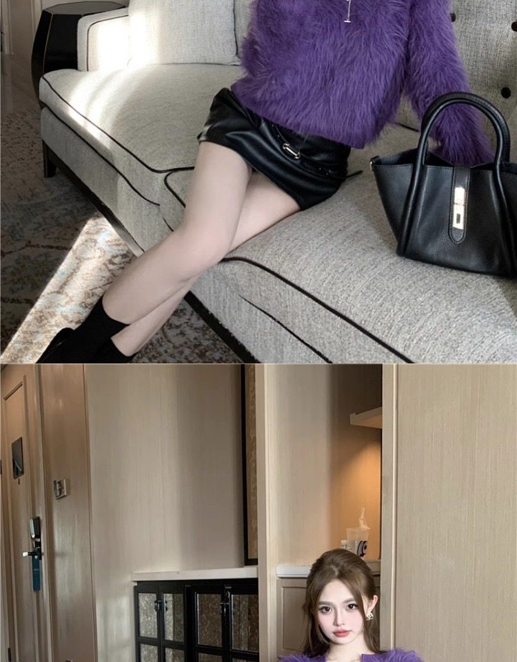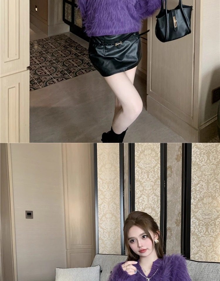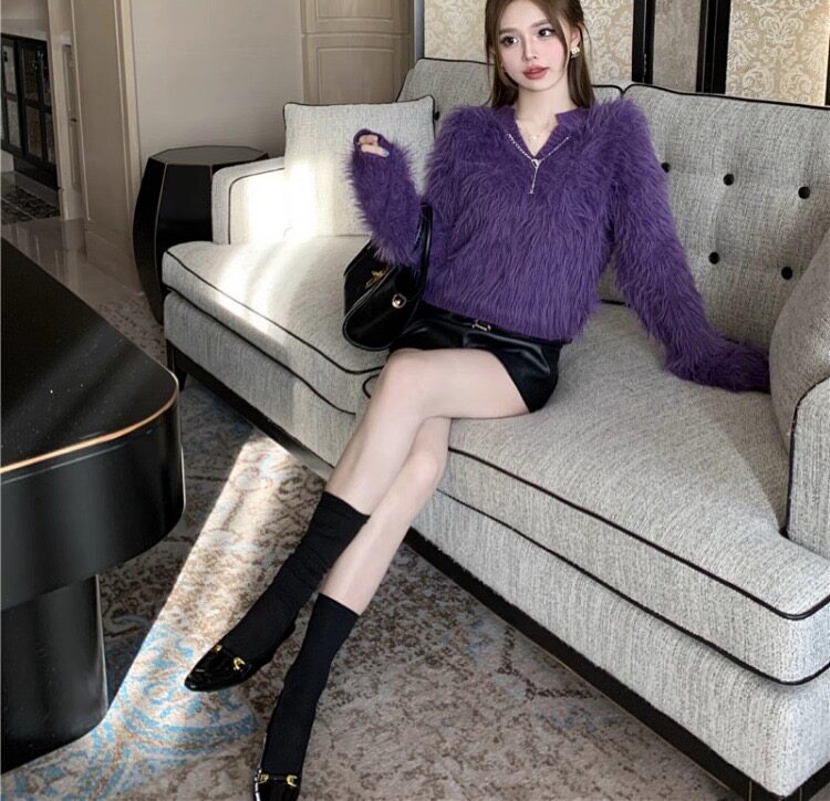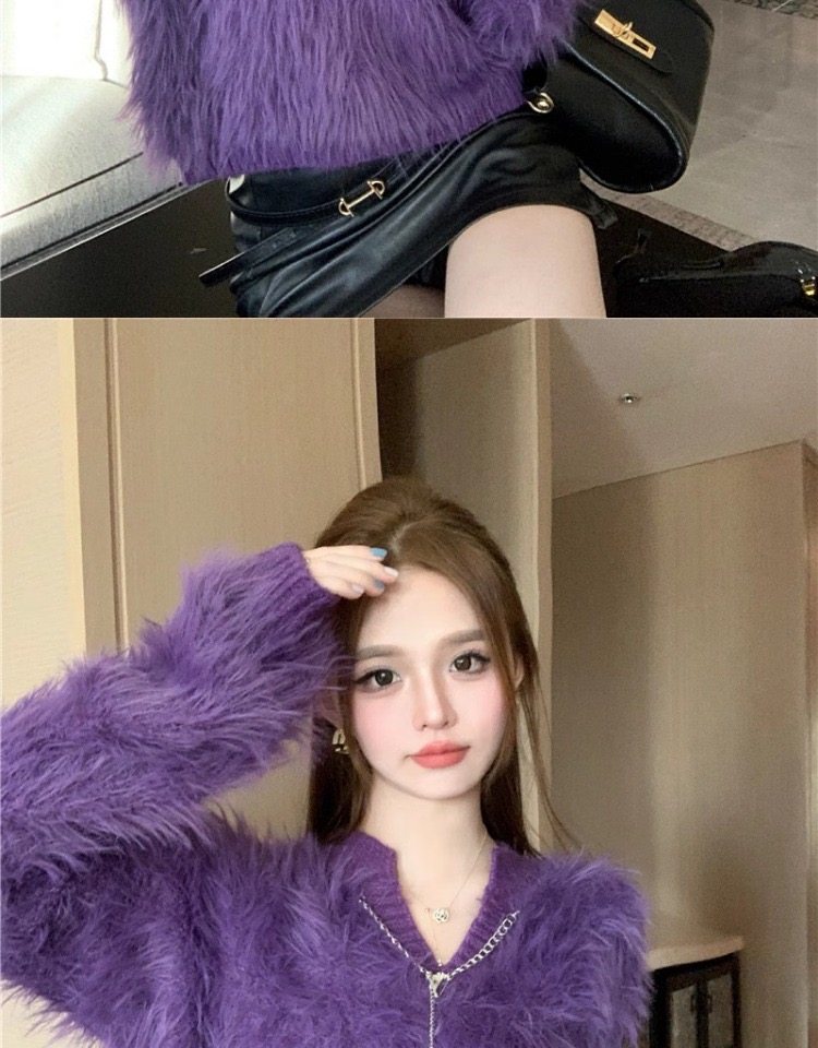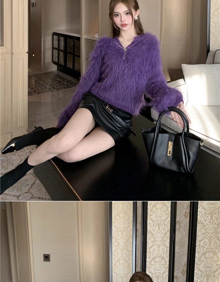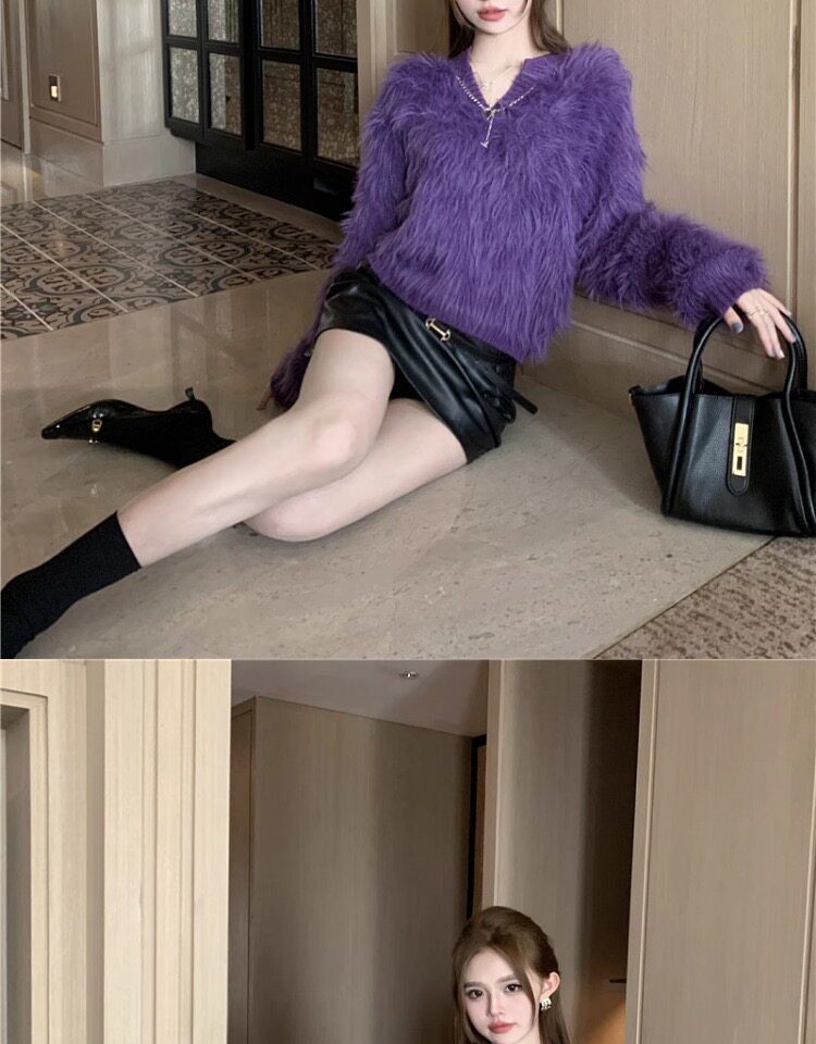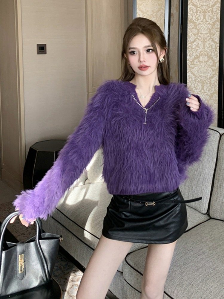 慵懶風復古毛衣女秋冬加厚設計感小衆V領短款水貂毛針織溫柔上衣