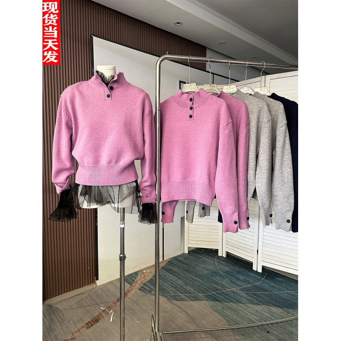 MONA 50綿羊毛 高級氣質百搭 立領針織衫上衣女小個子 2025爆款