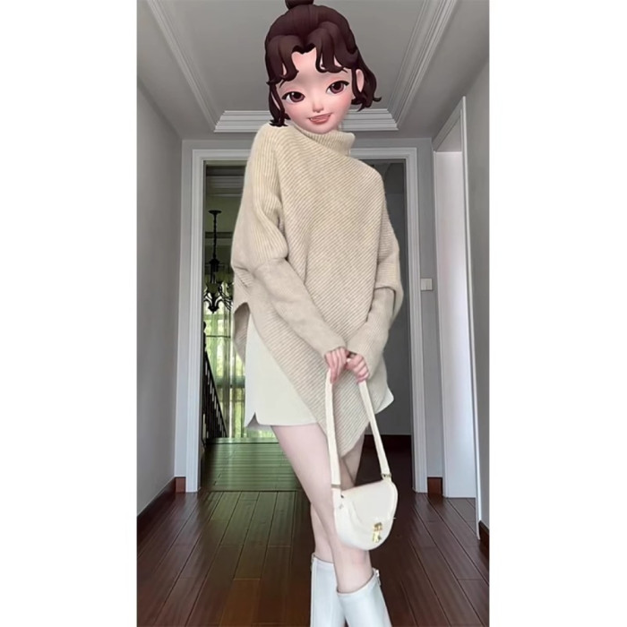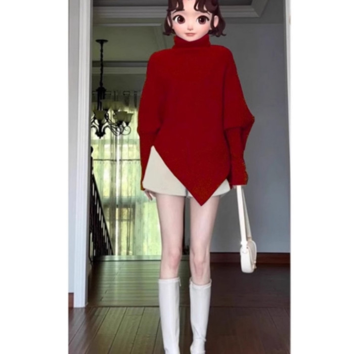 小香風內搭紅色毛衣女秋冬季2025新款不規則小衆不撞款高領針織衫