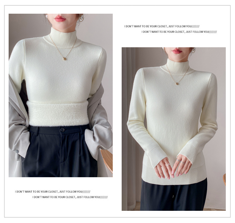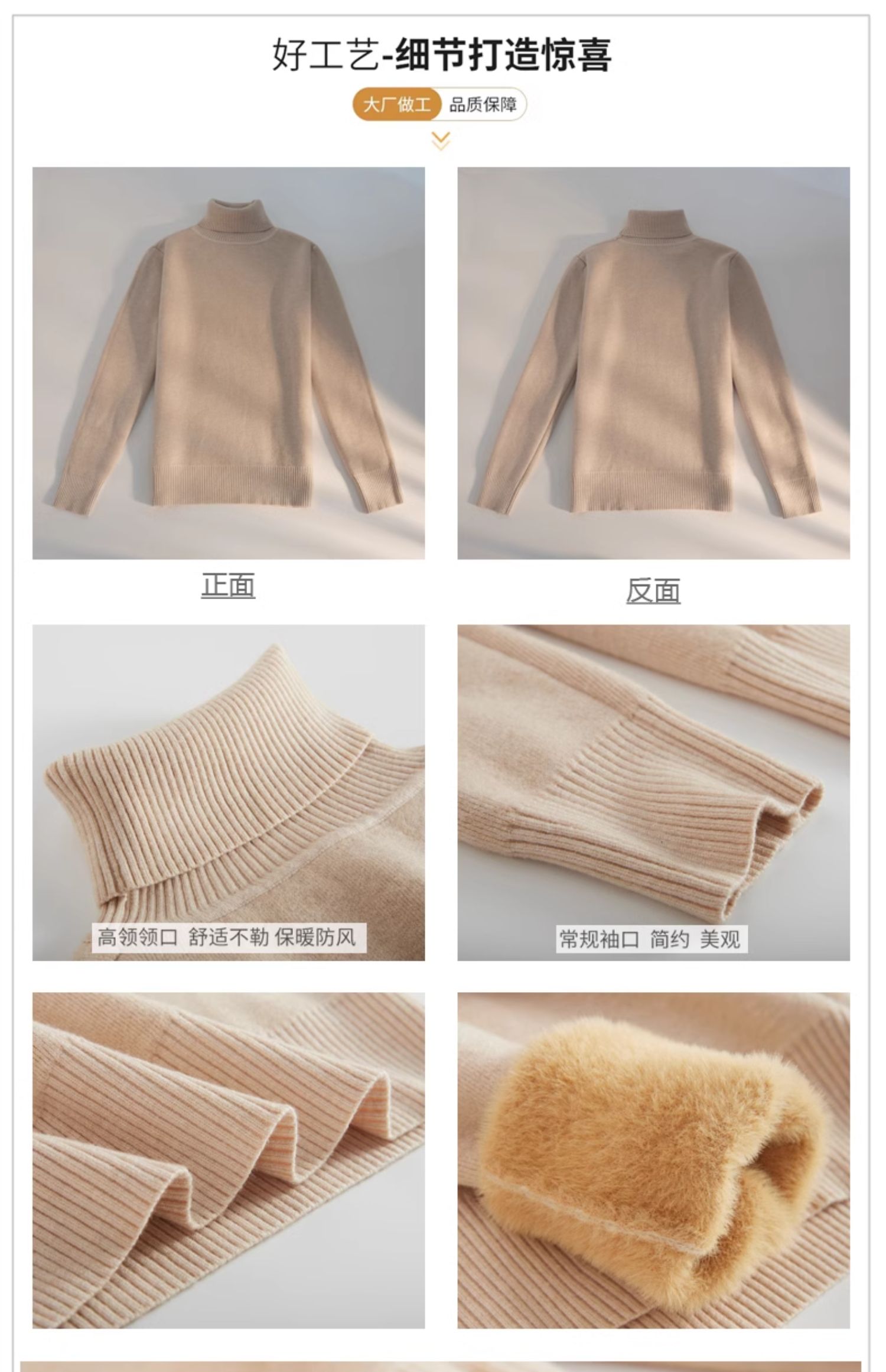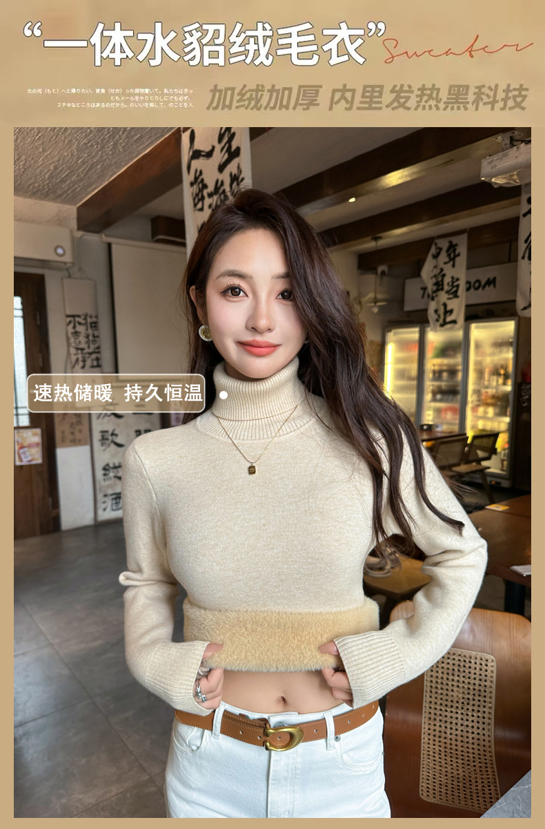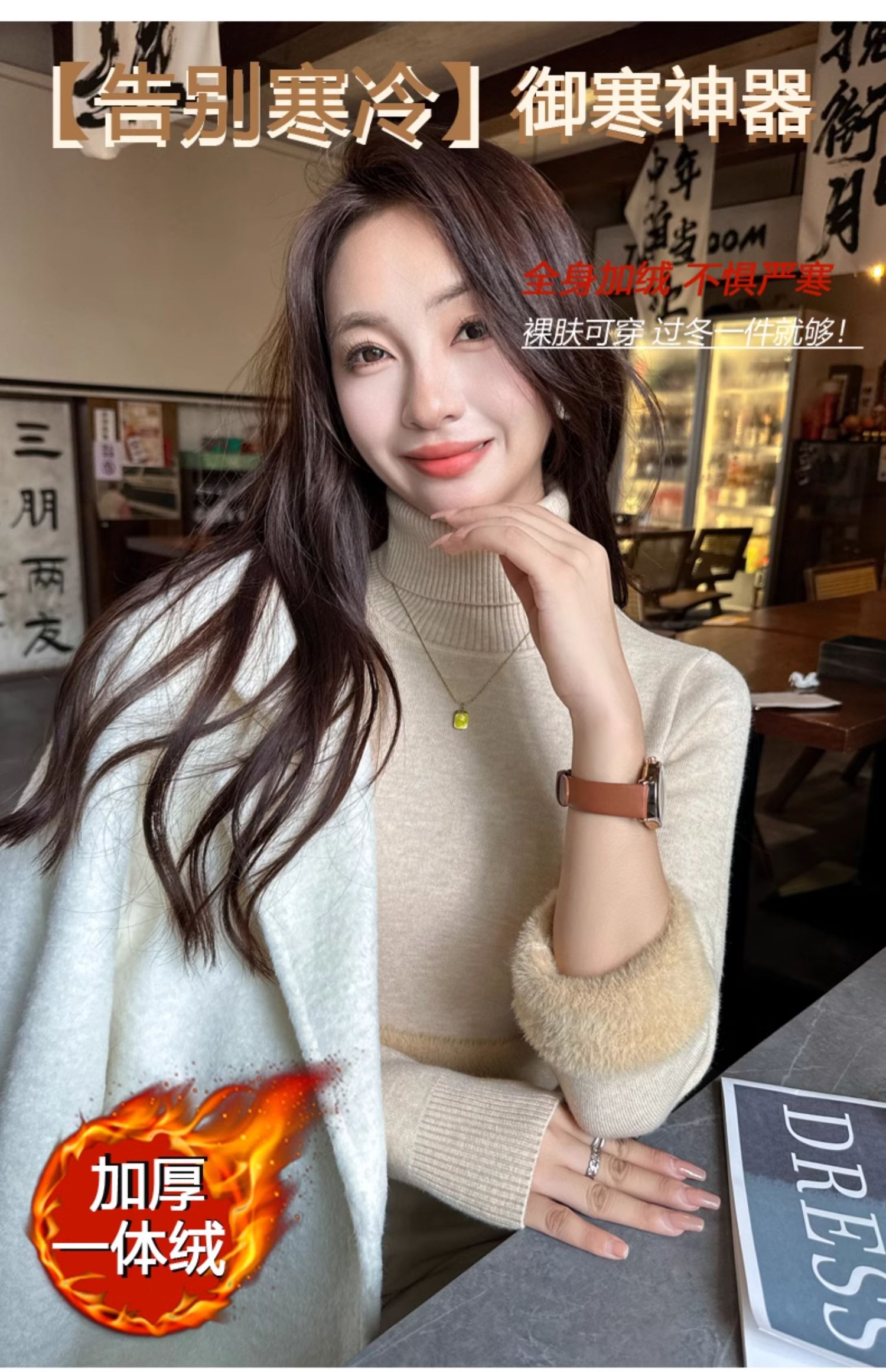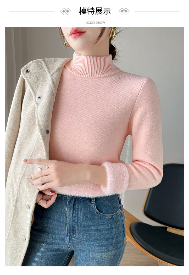 高領毛衣女秋冬加絨加厚打底衫內搭一體水貂絨保暖堆堆領針織上衣