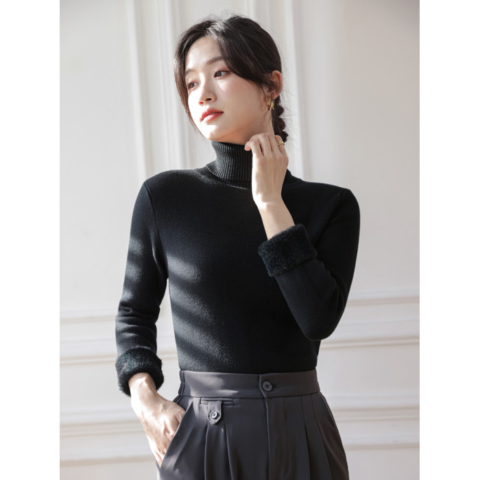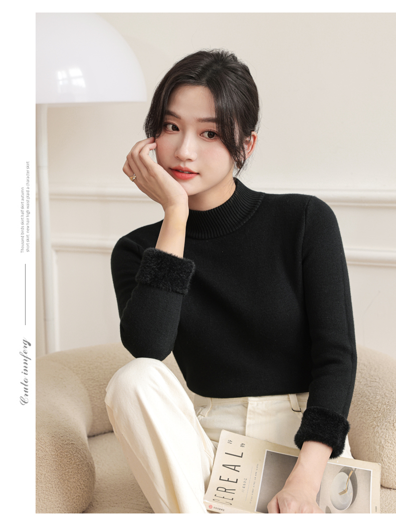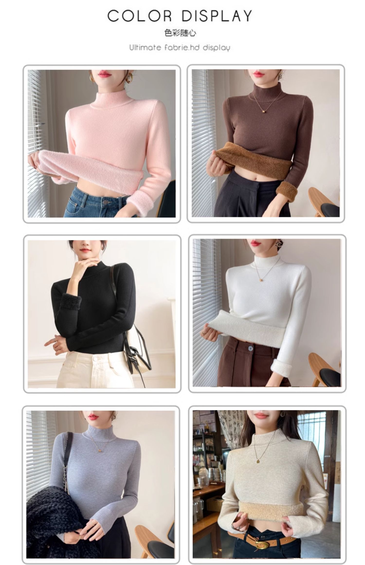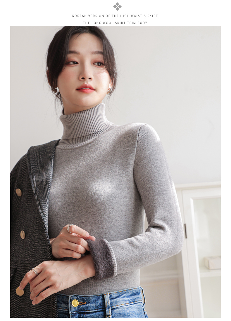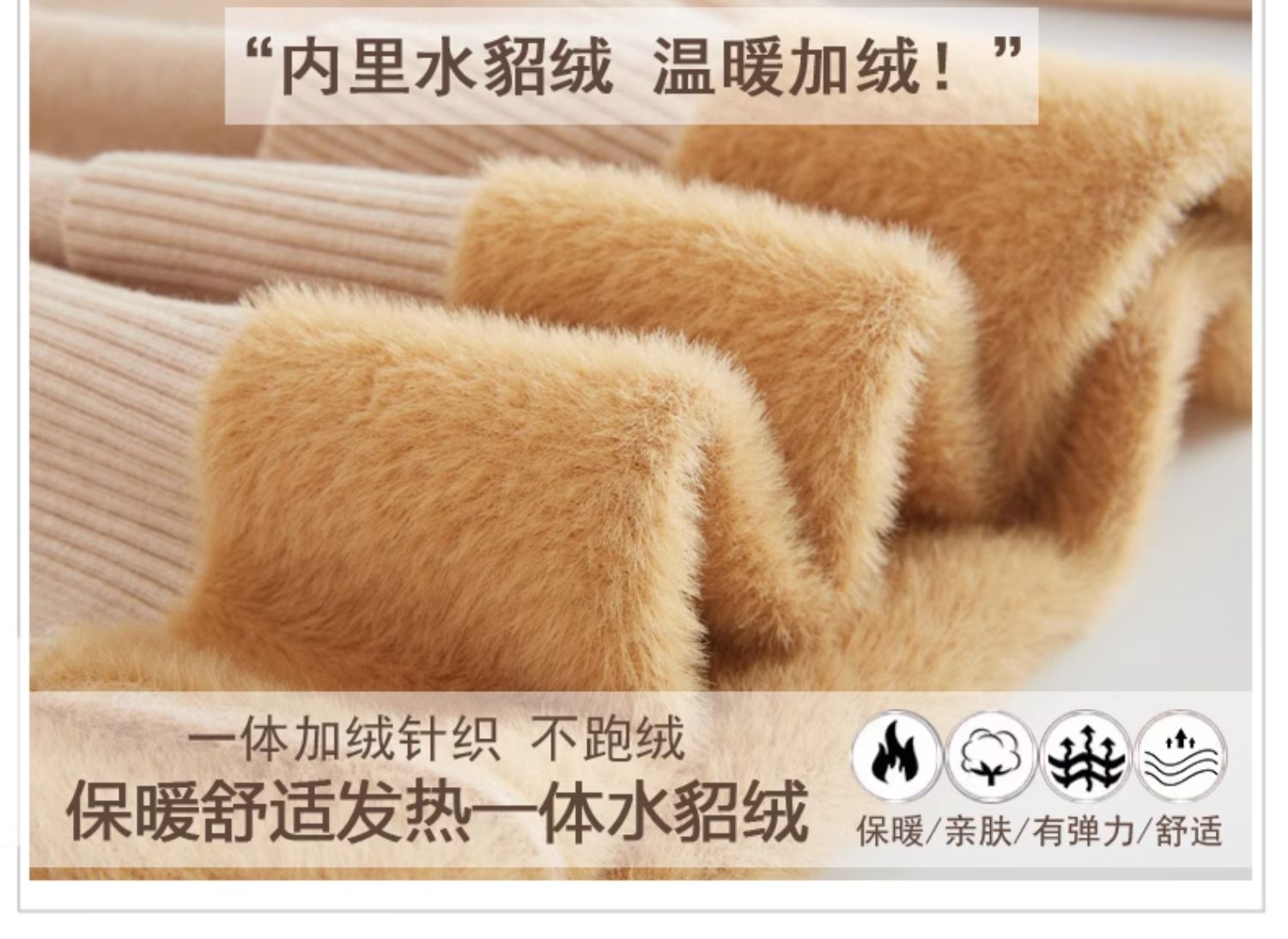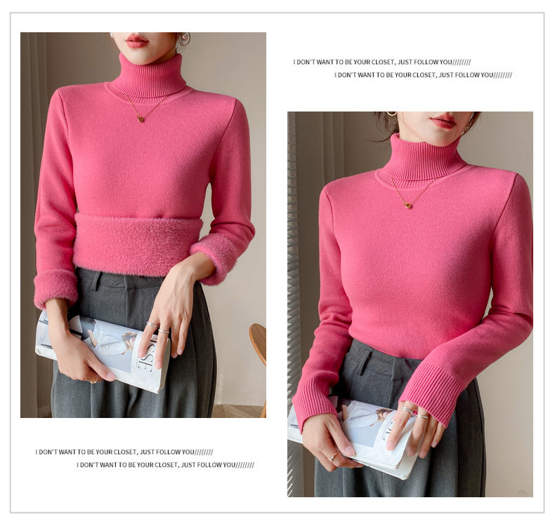 高領毛衣女秋冬加絨加厚打底衫內搭一體水貂絨保暖堆堆領針織上衣