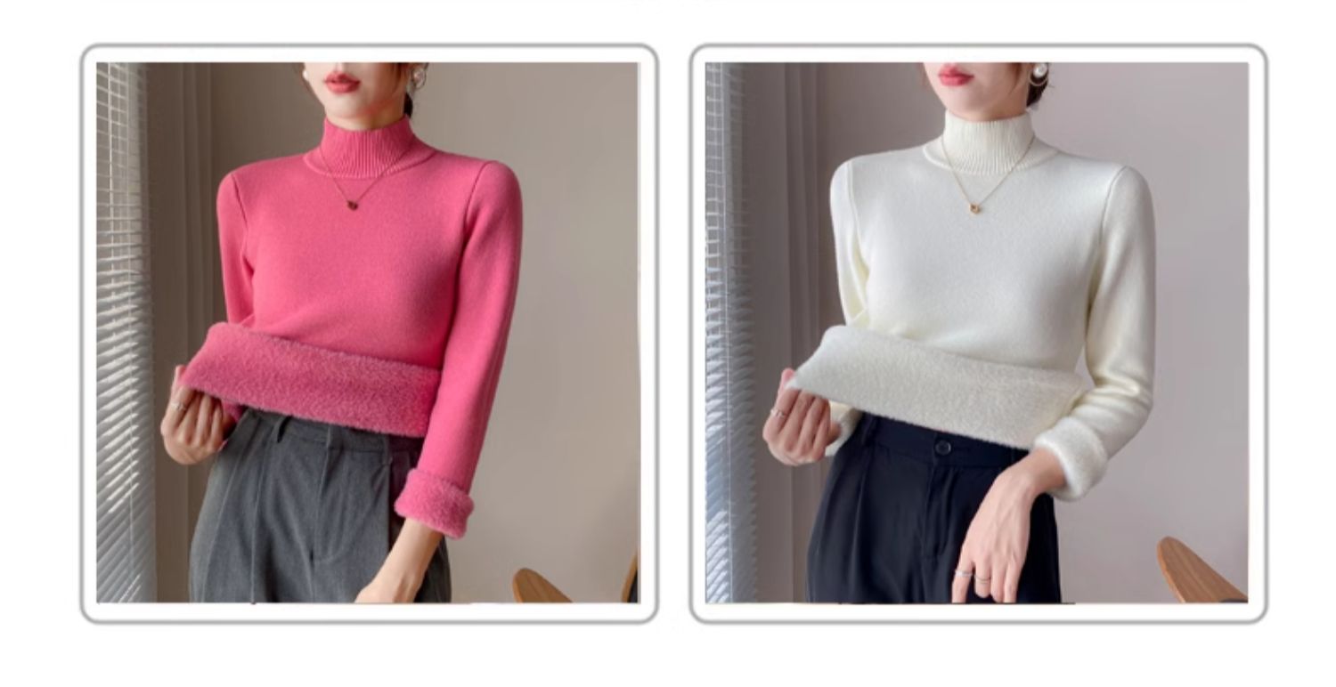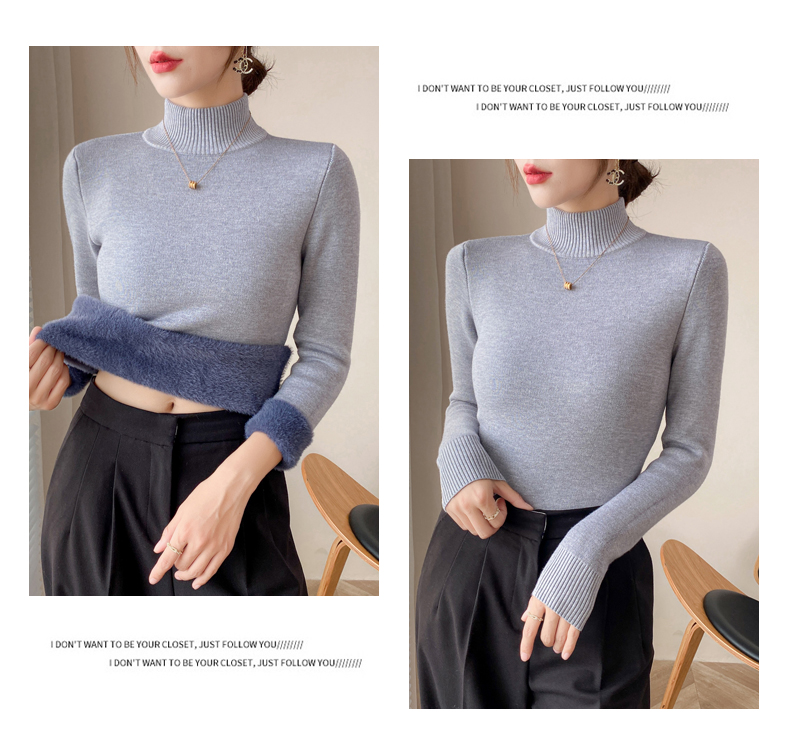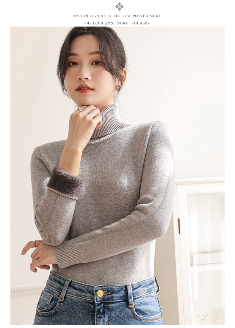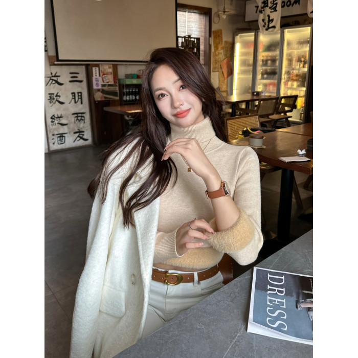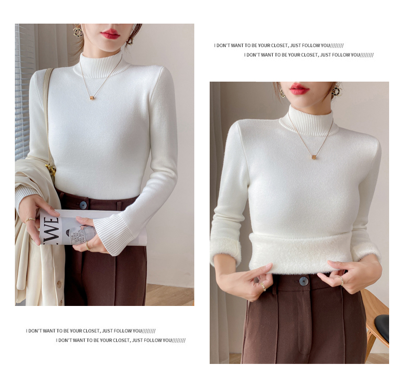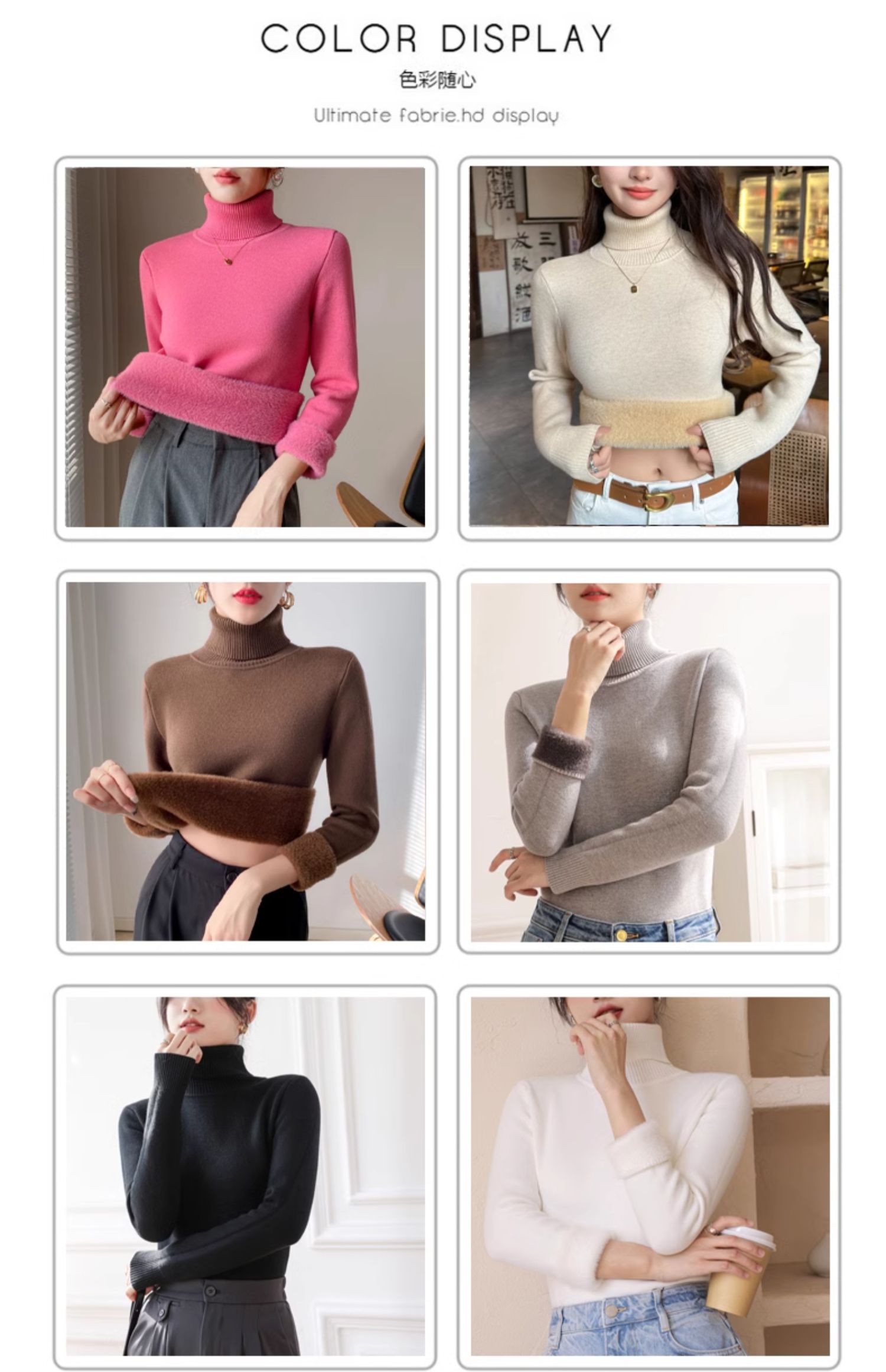 高領毛衣女秋冬加絨加厚打底衫內搭一體水貂絨保暖堆堆領針織上衣