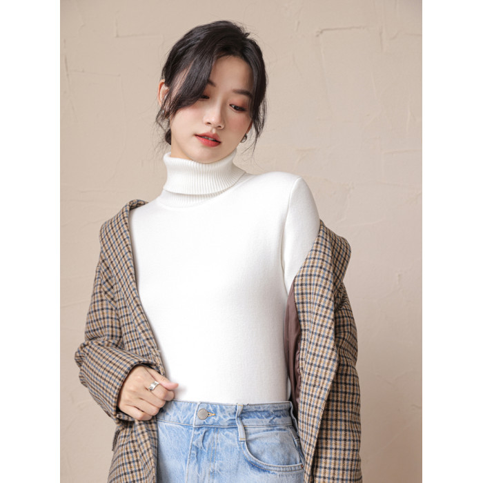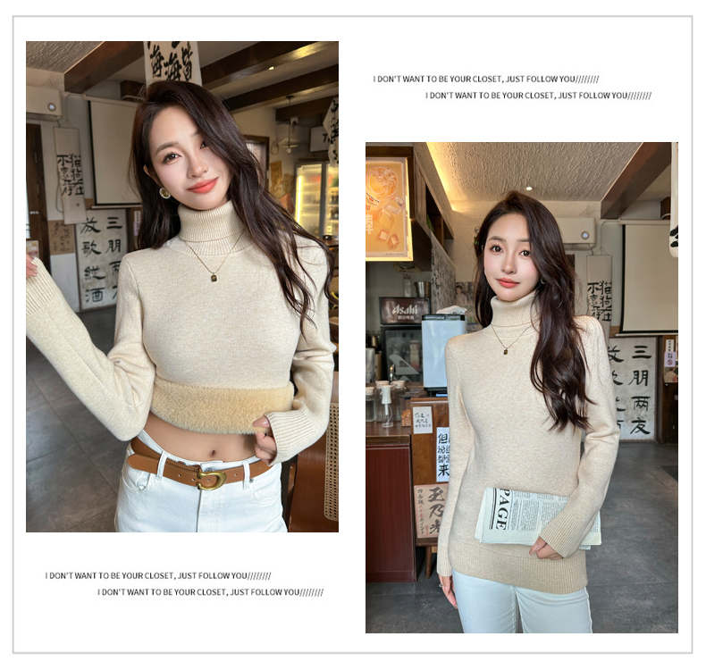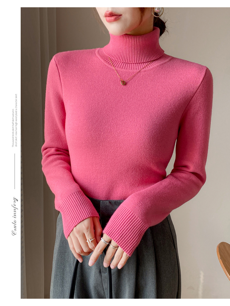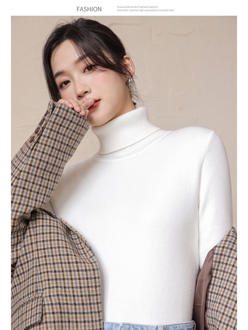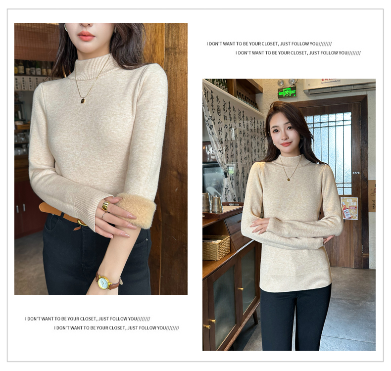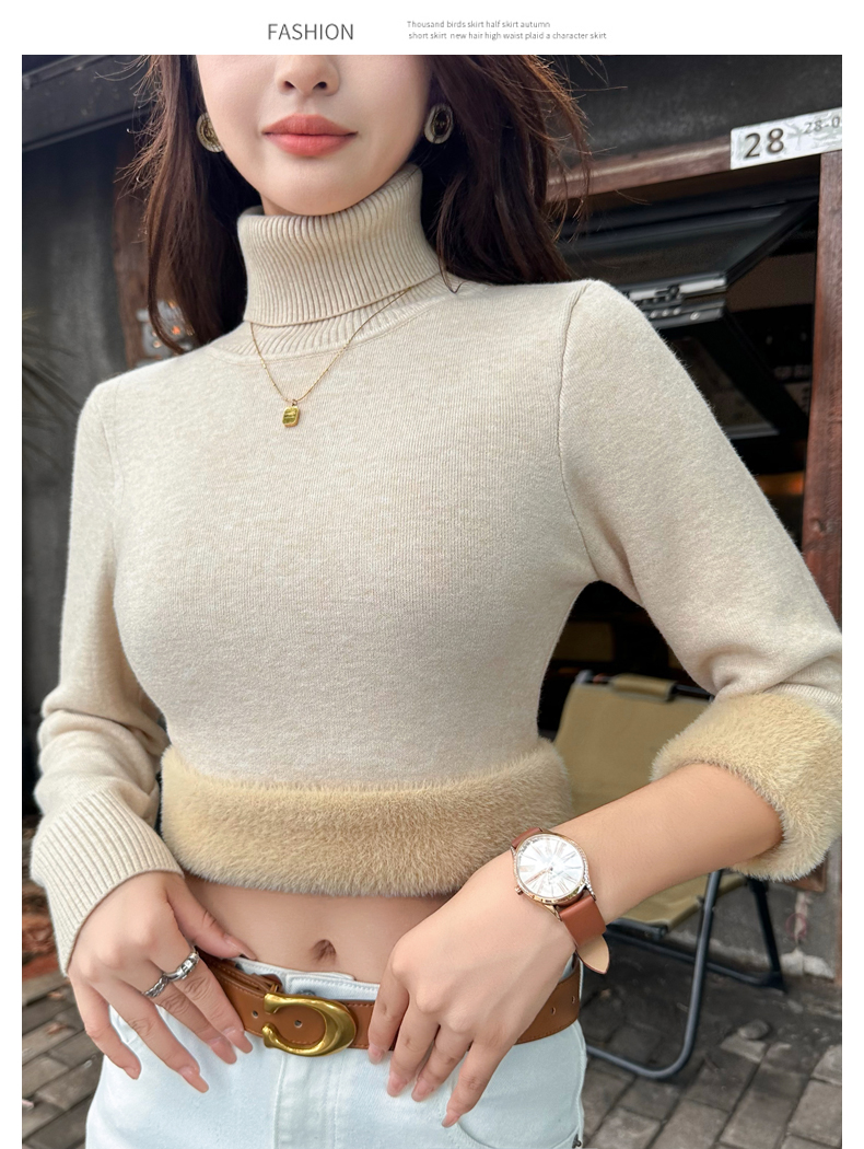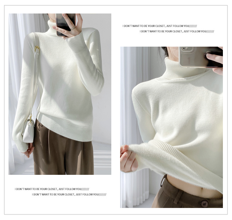 高領毛衣女秋冬加絨加厚打底衫內搭一體水貂絨保暖堆堆領針織上衣