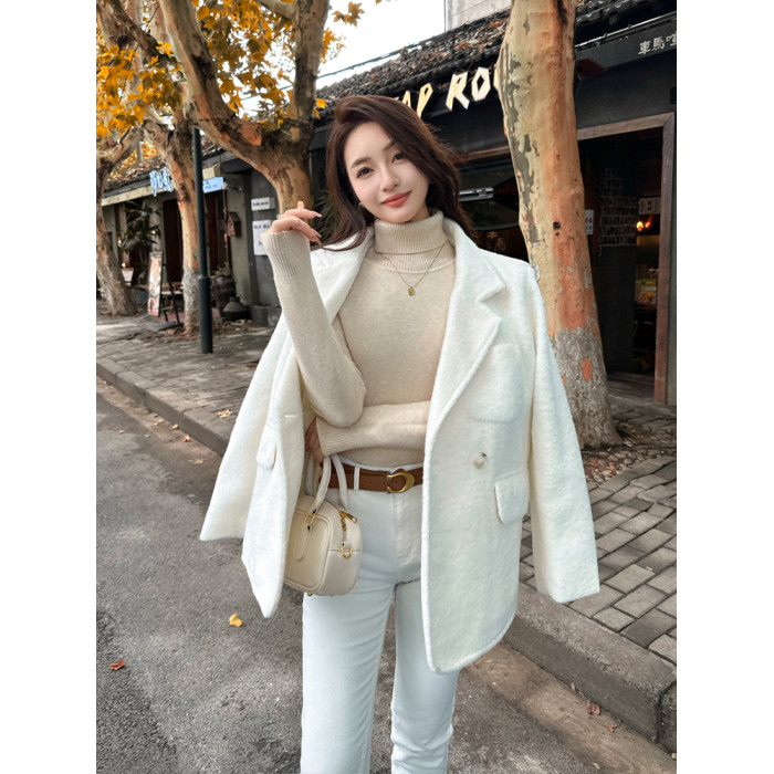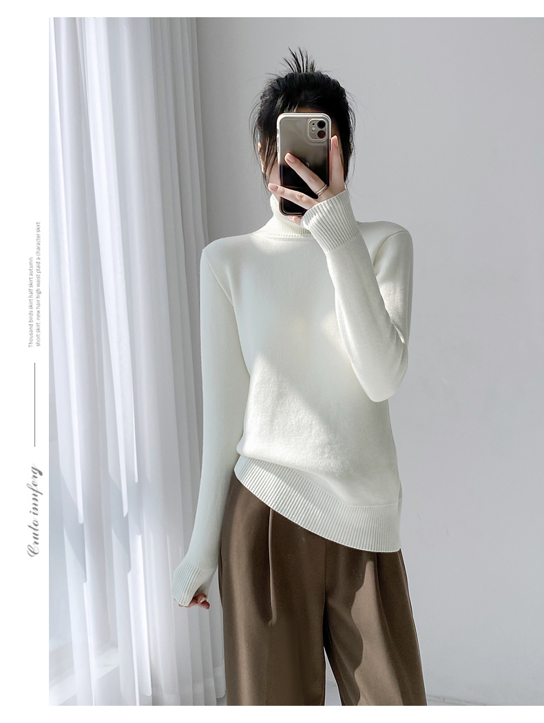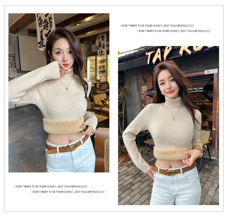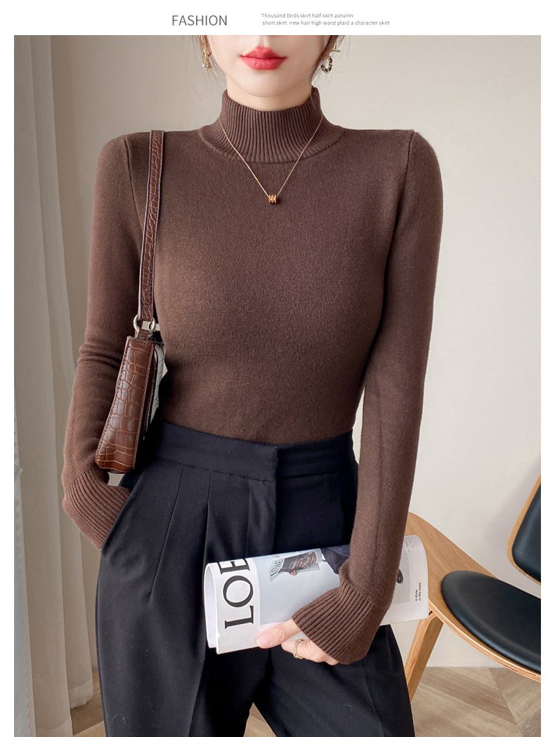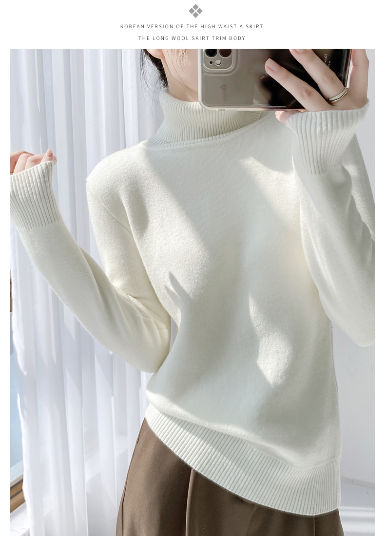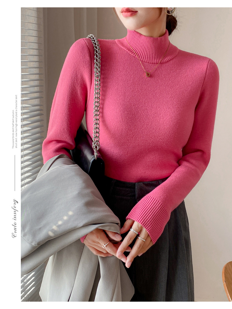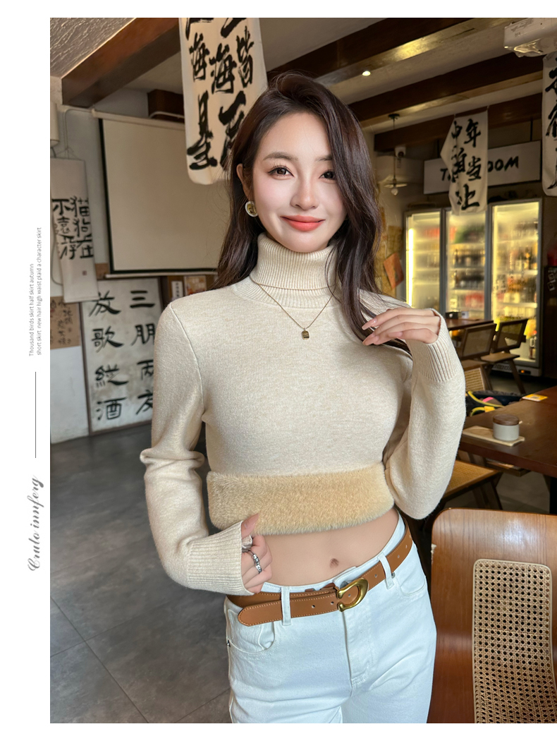 高領毛衣女秋冬加絨加厚打底衫內搭一體水貂絨保暖堆堆領針織上衣