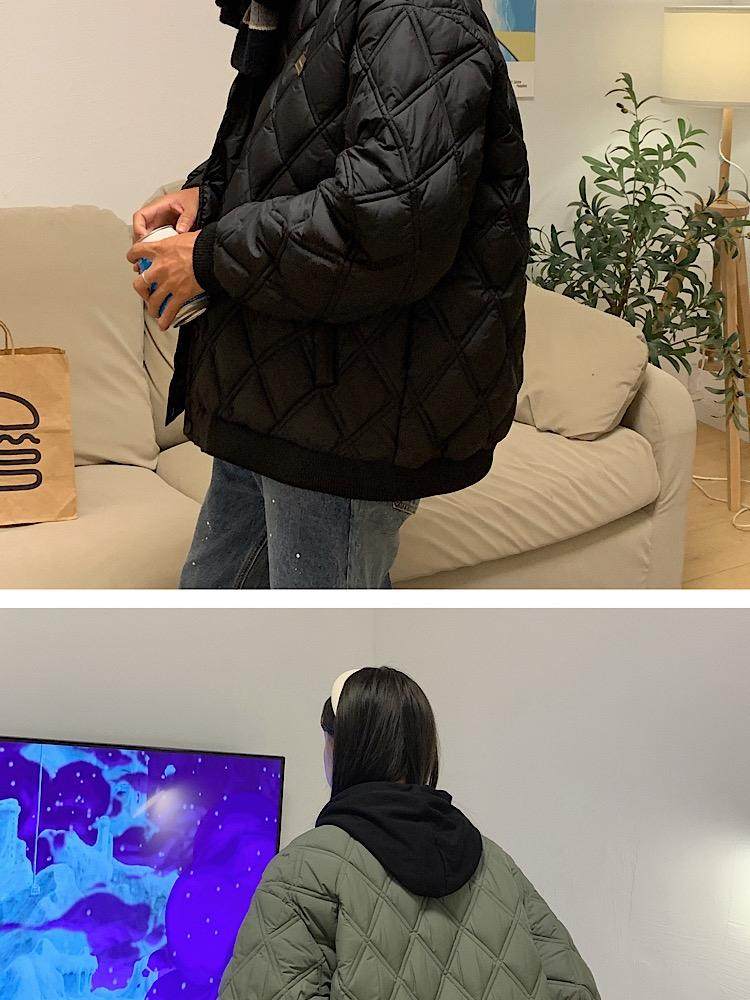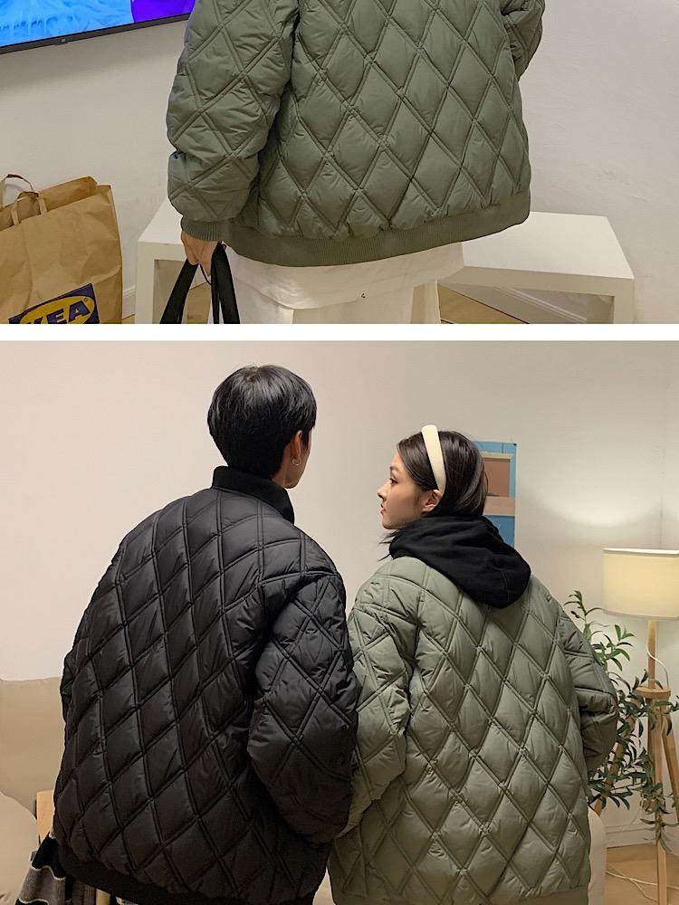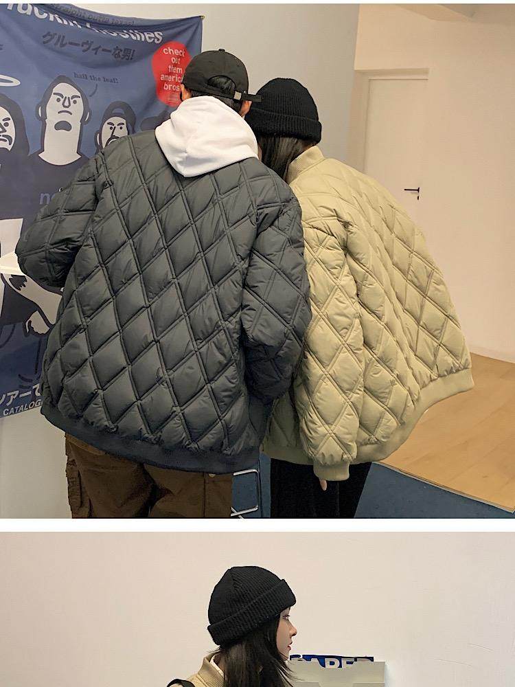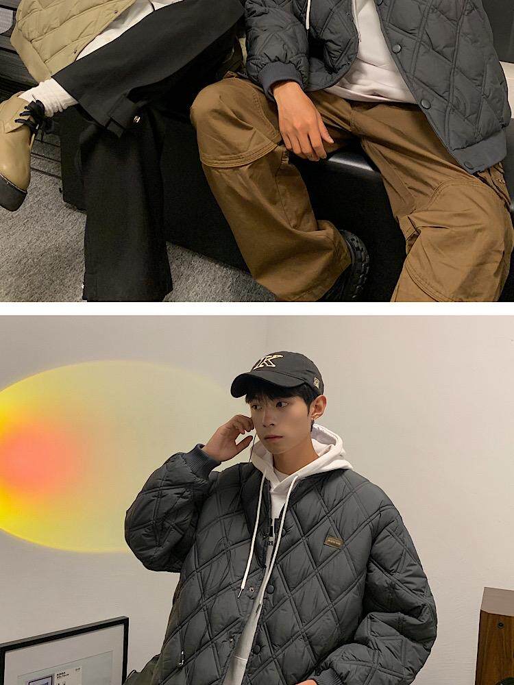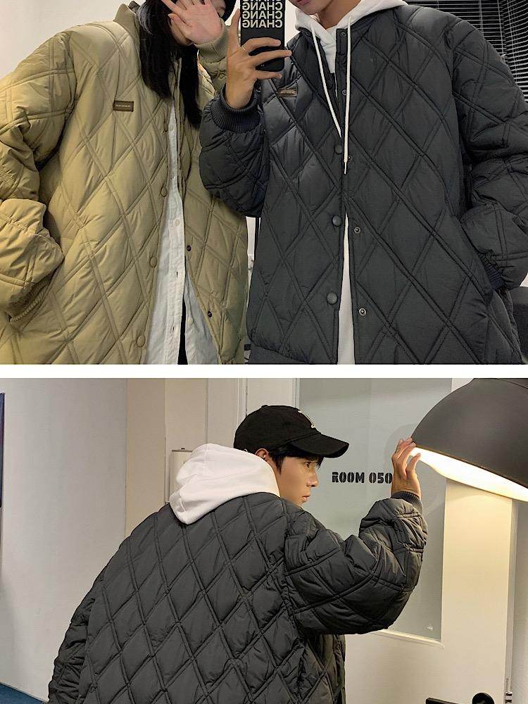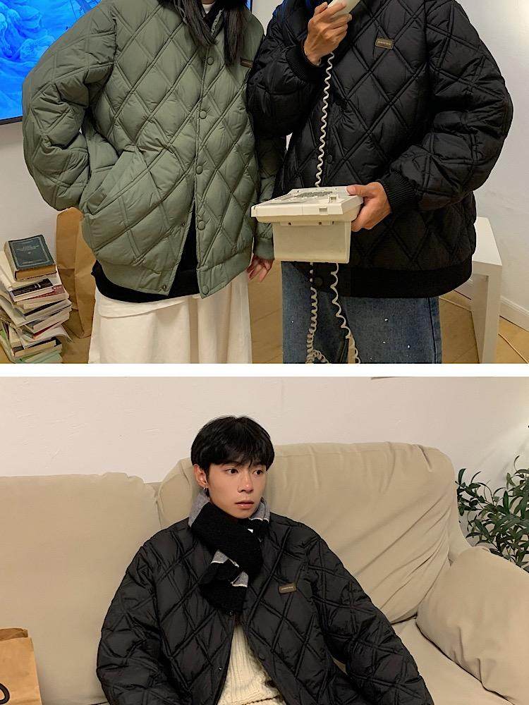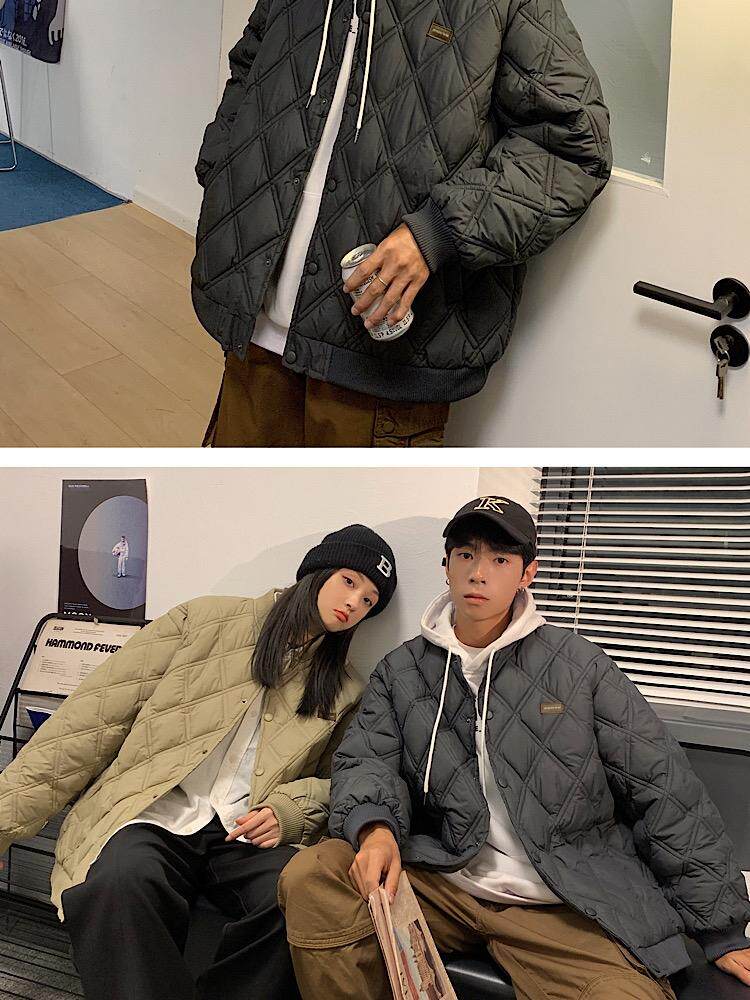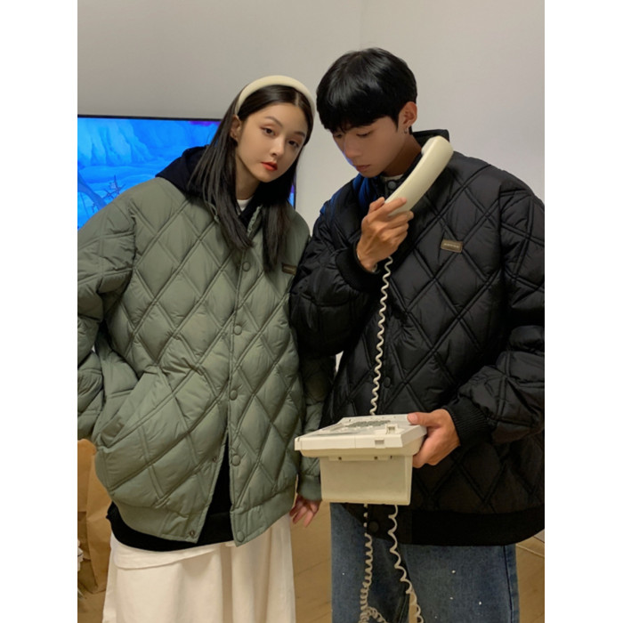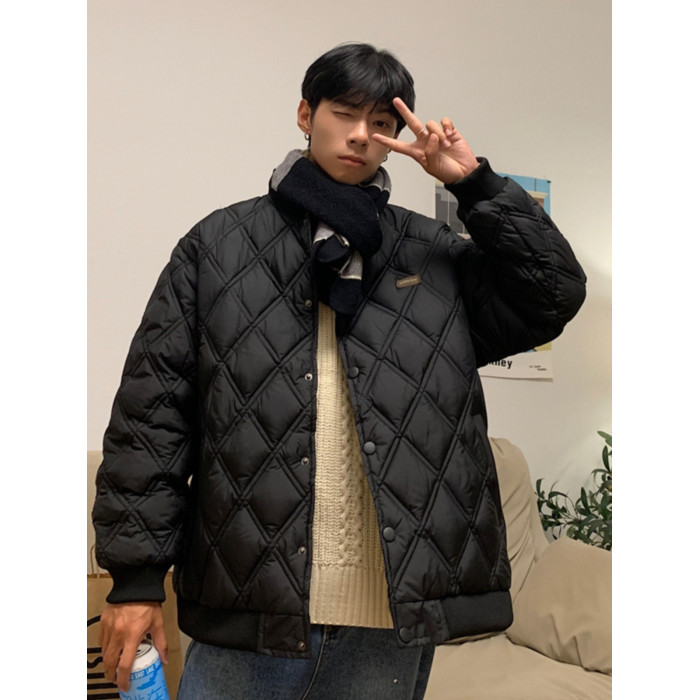 Kusen 美式潮牌菱形格棉衣夾克男潮流寬鬆情侶保暖學生棒球領棉服