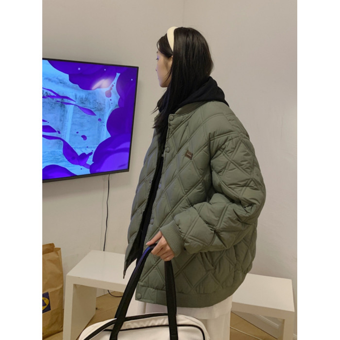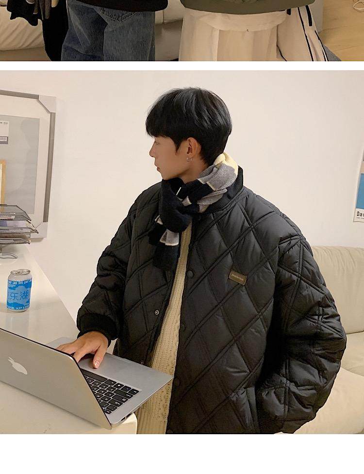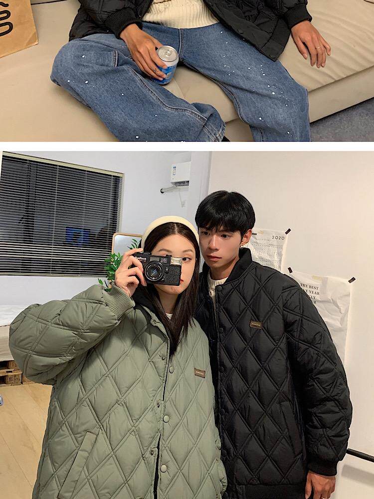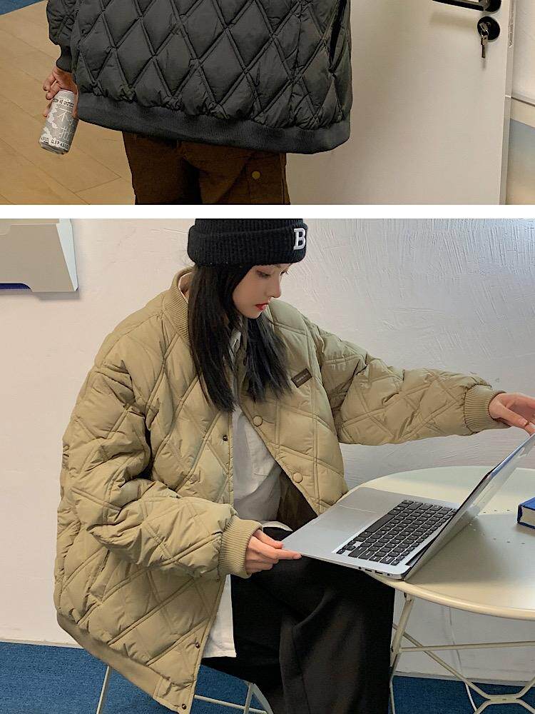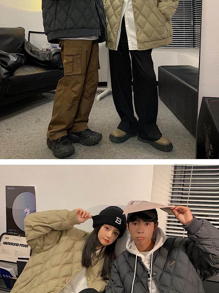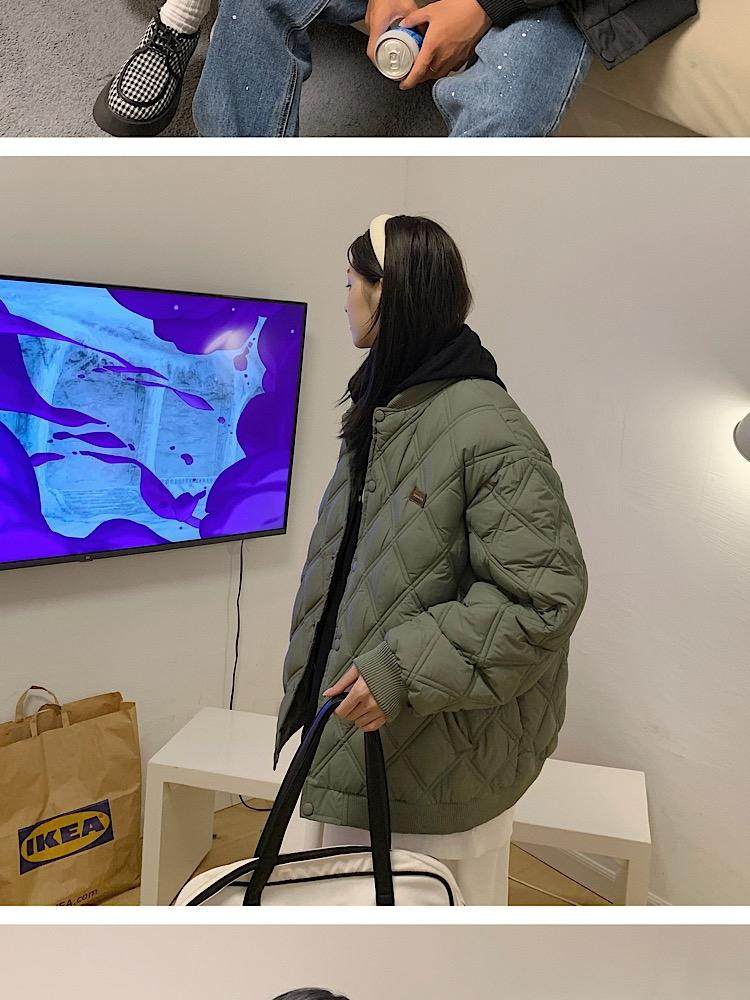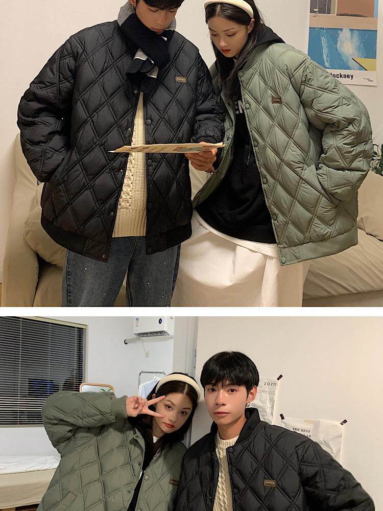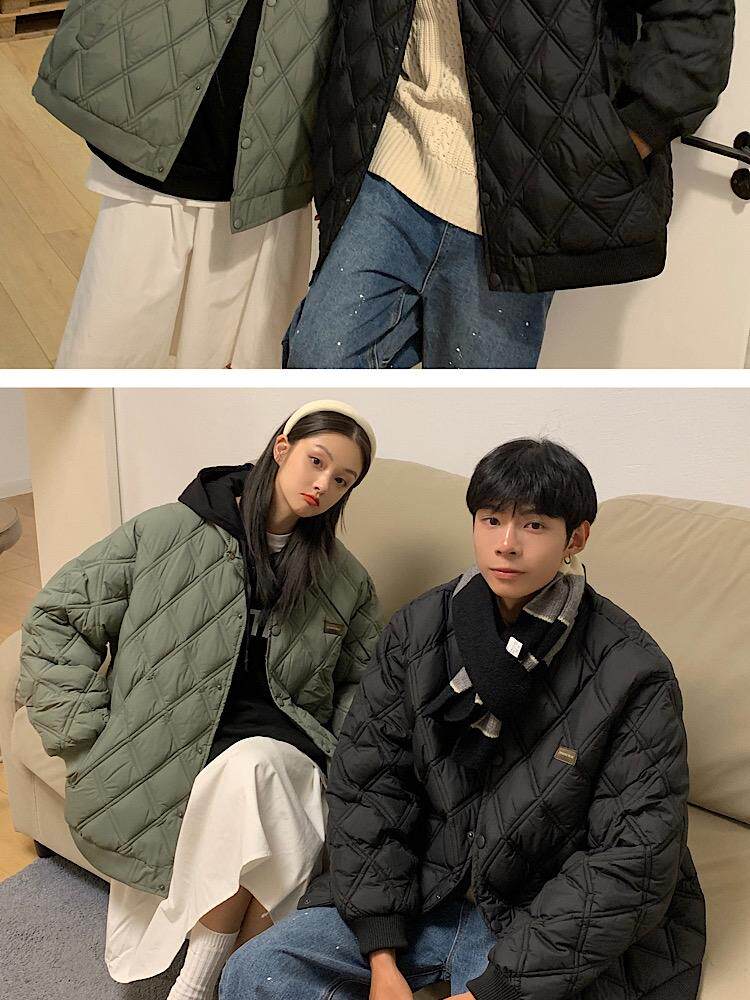 Kusen 美式潮牌菱形格棉衣夾克男潮流寬鬆情侶保暖學生棒球領棉服