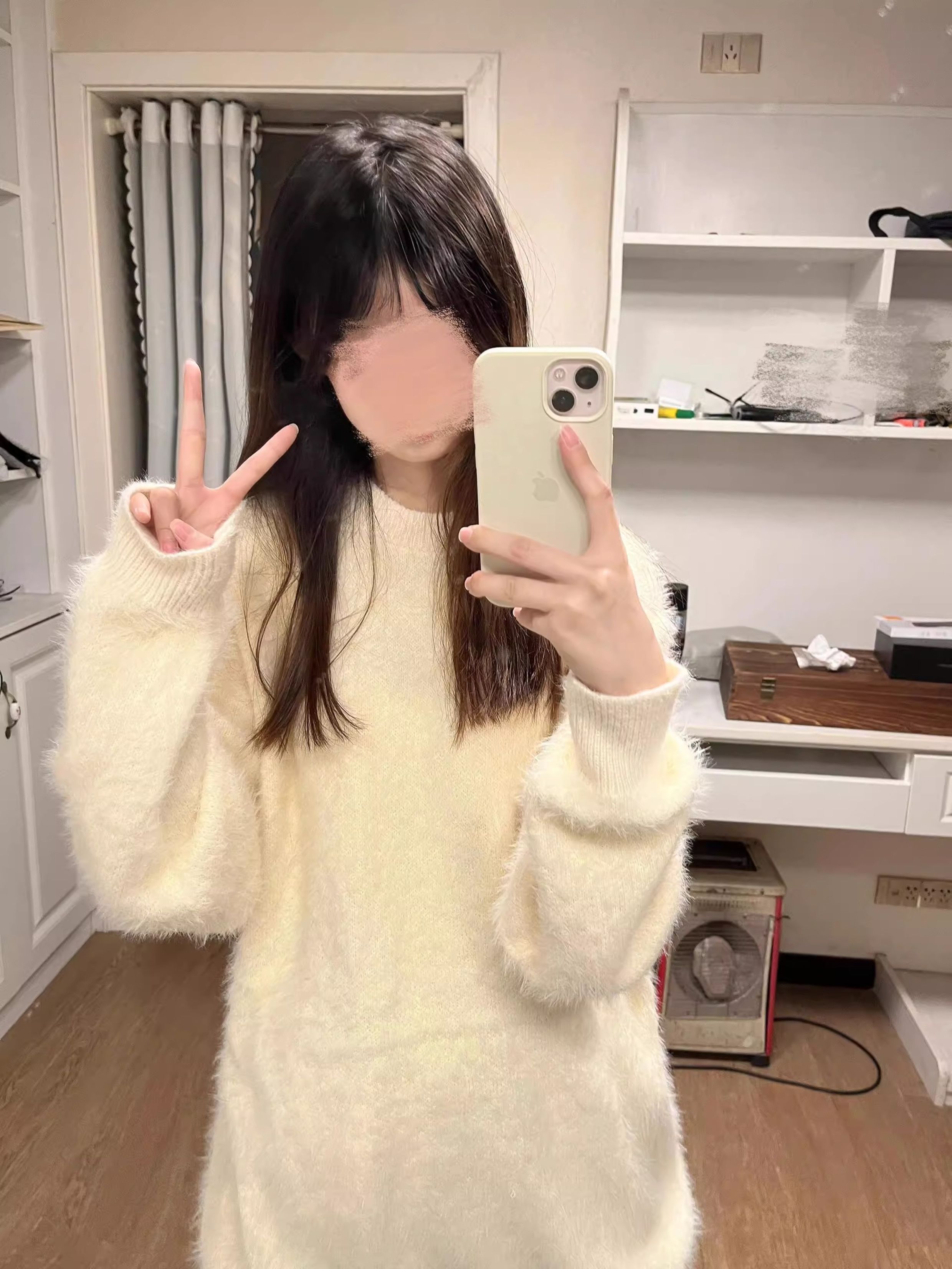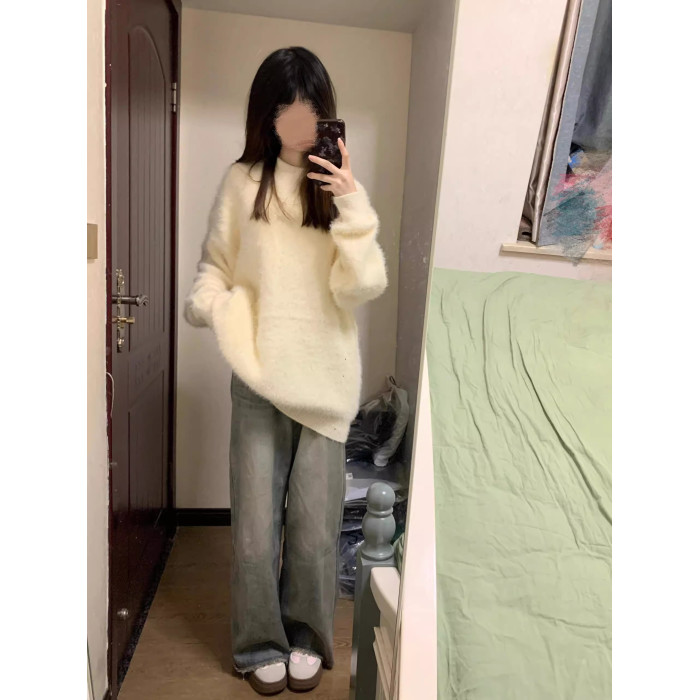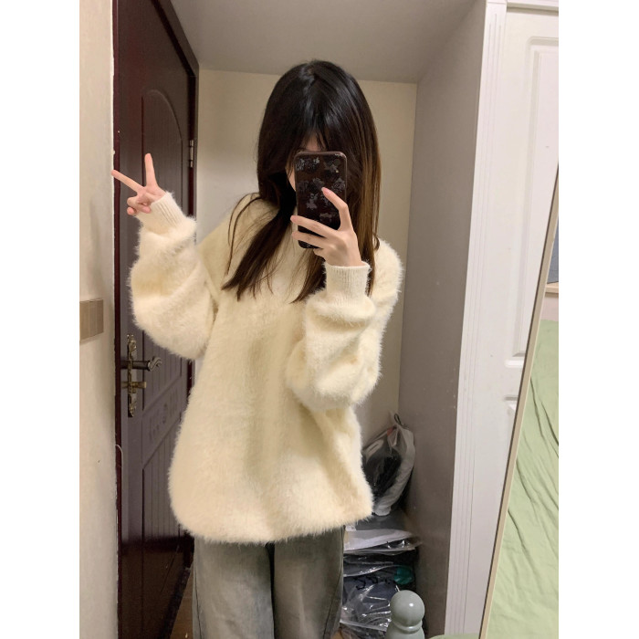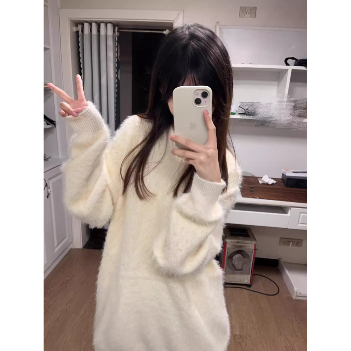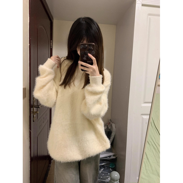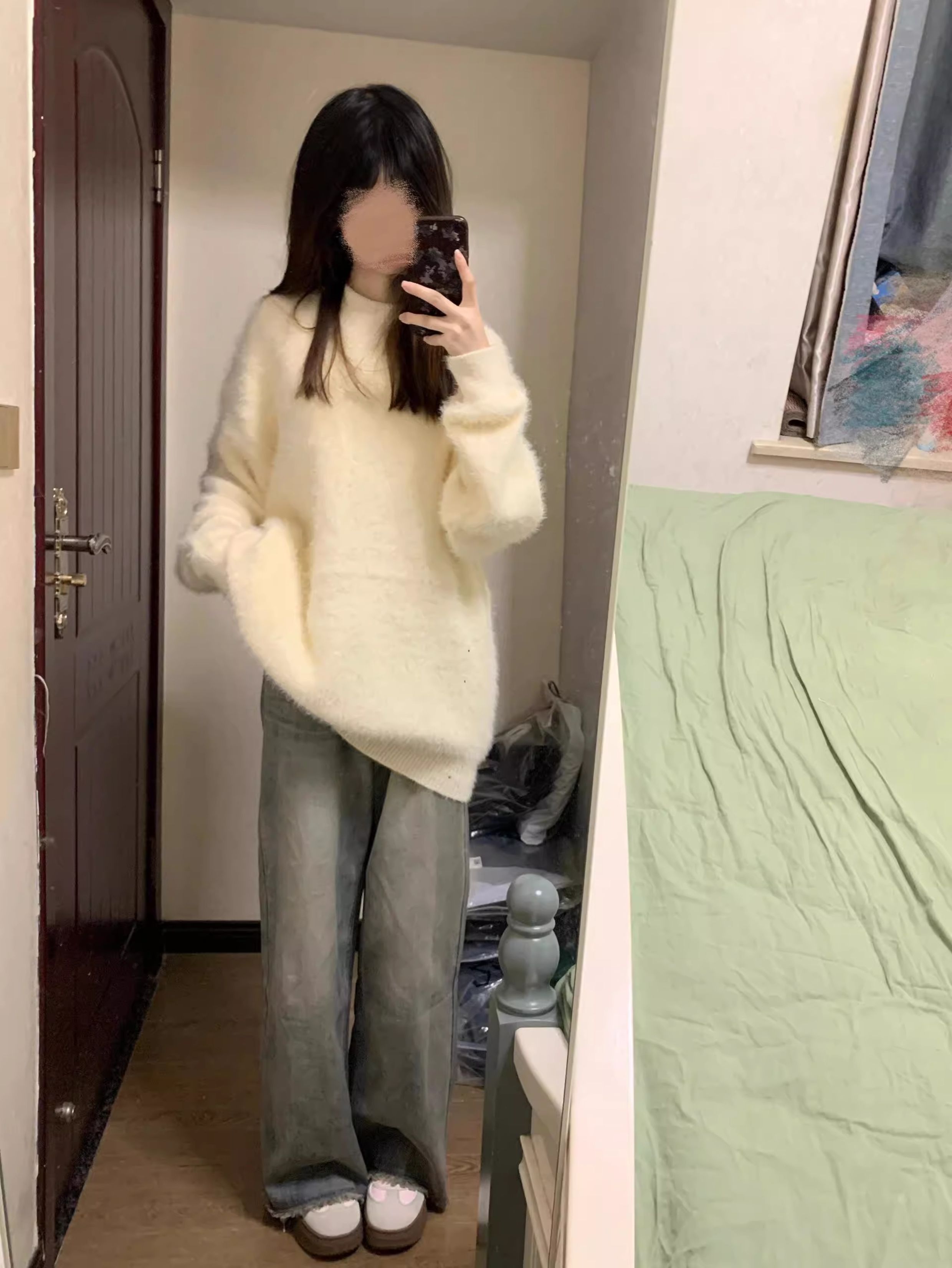 米白色海馬毛軟糯毛衣女高級感韓系慵懶風針織打底衫秋冬加厚上衣