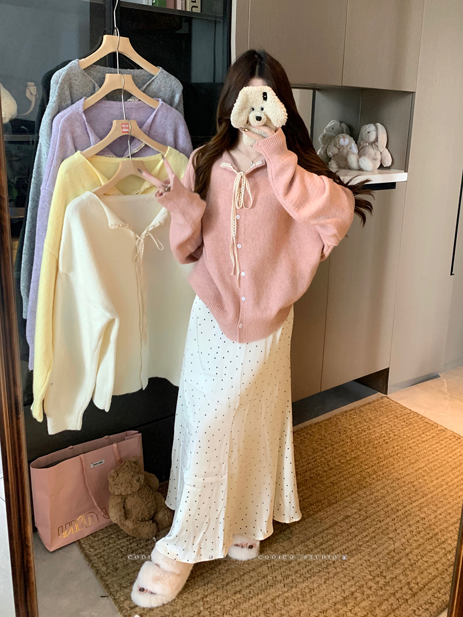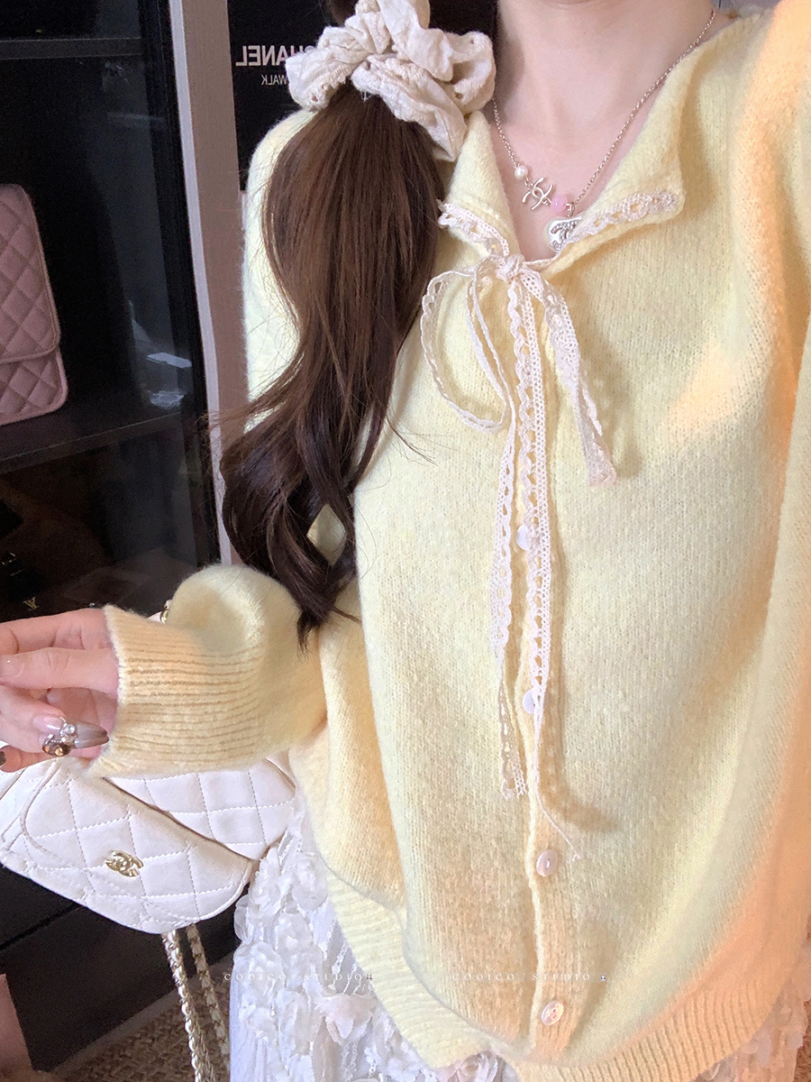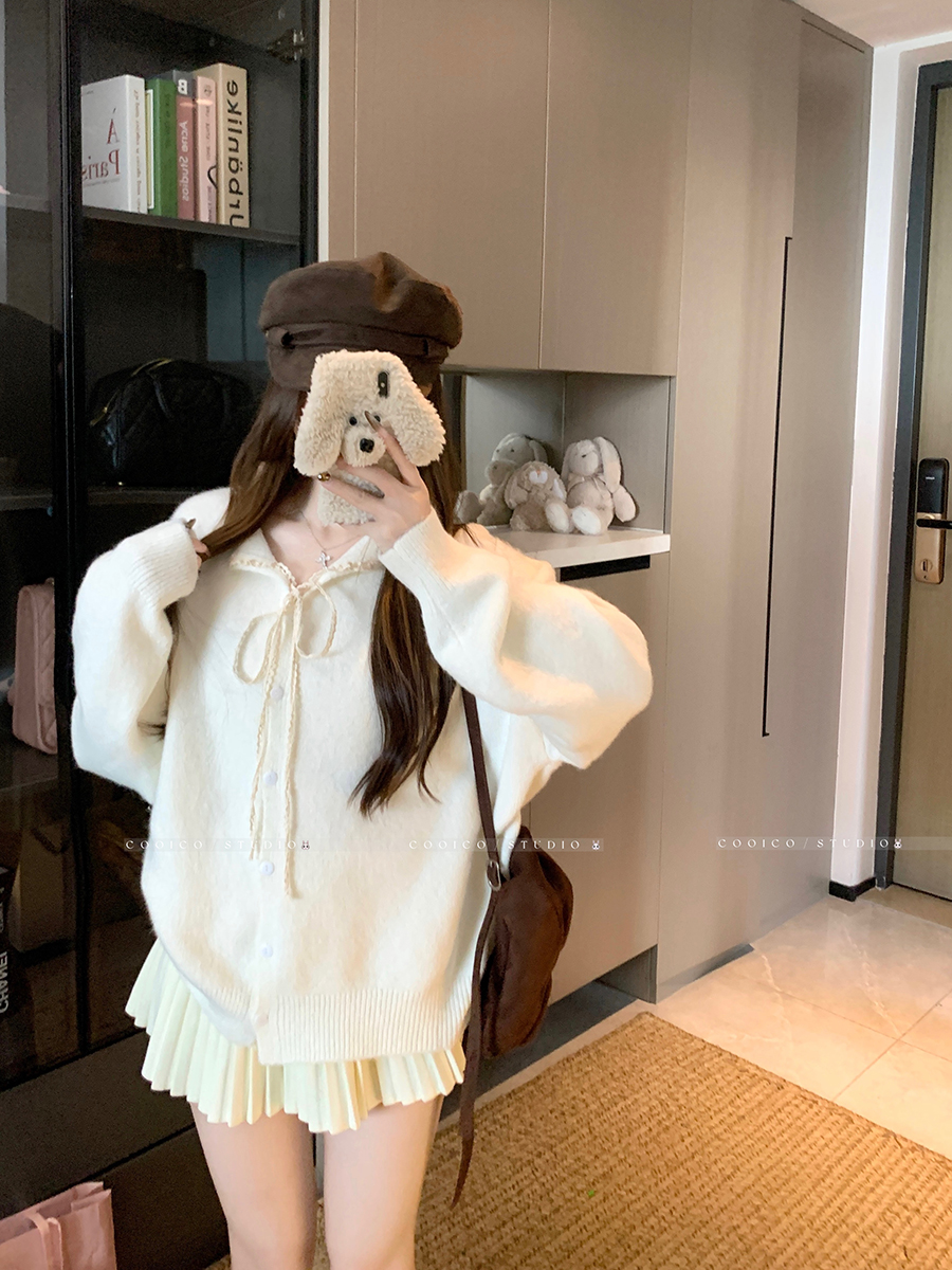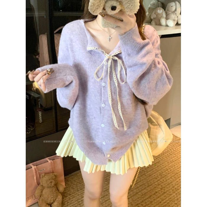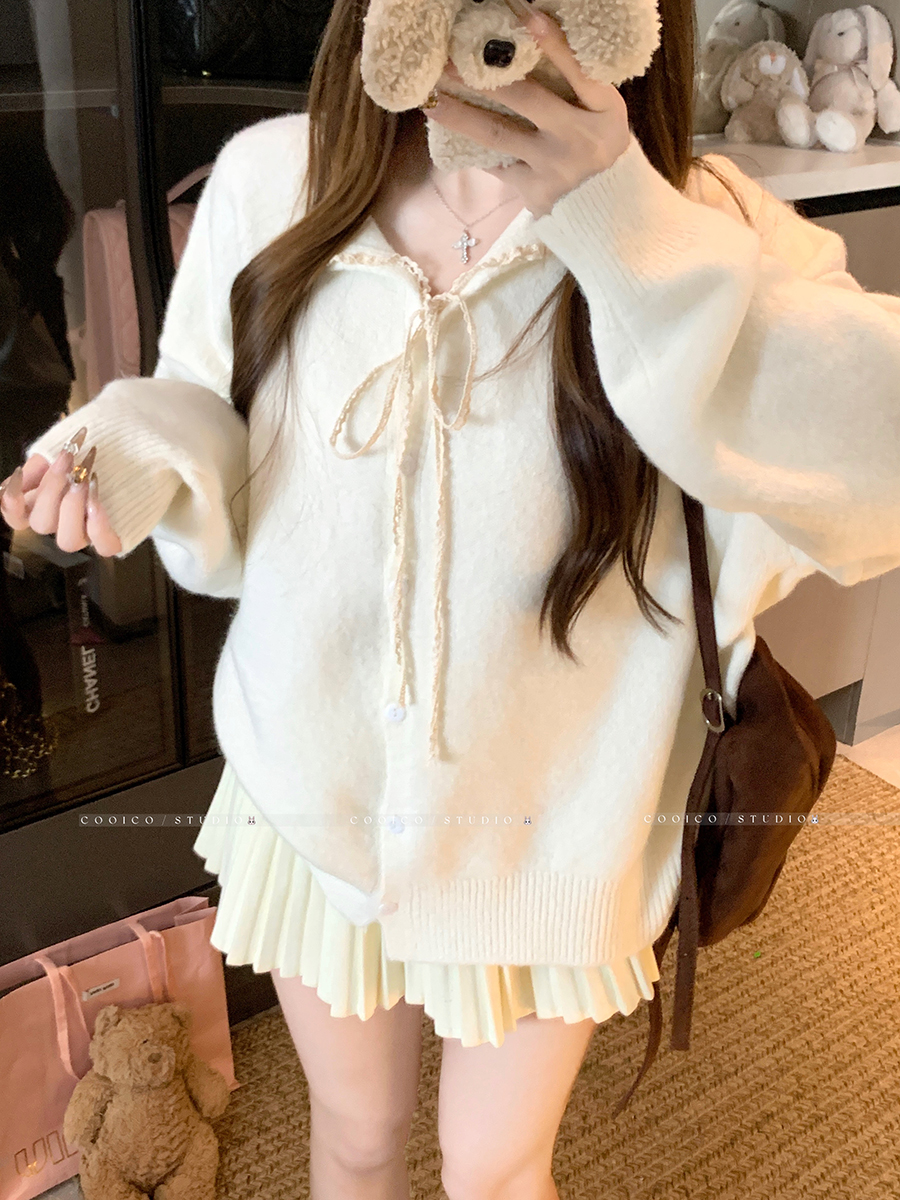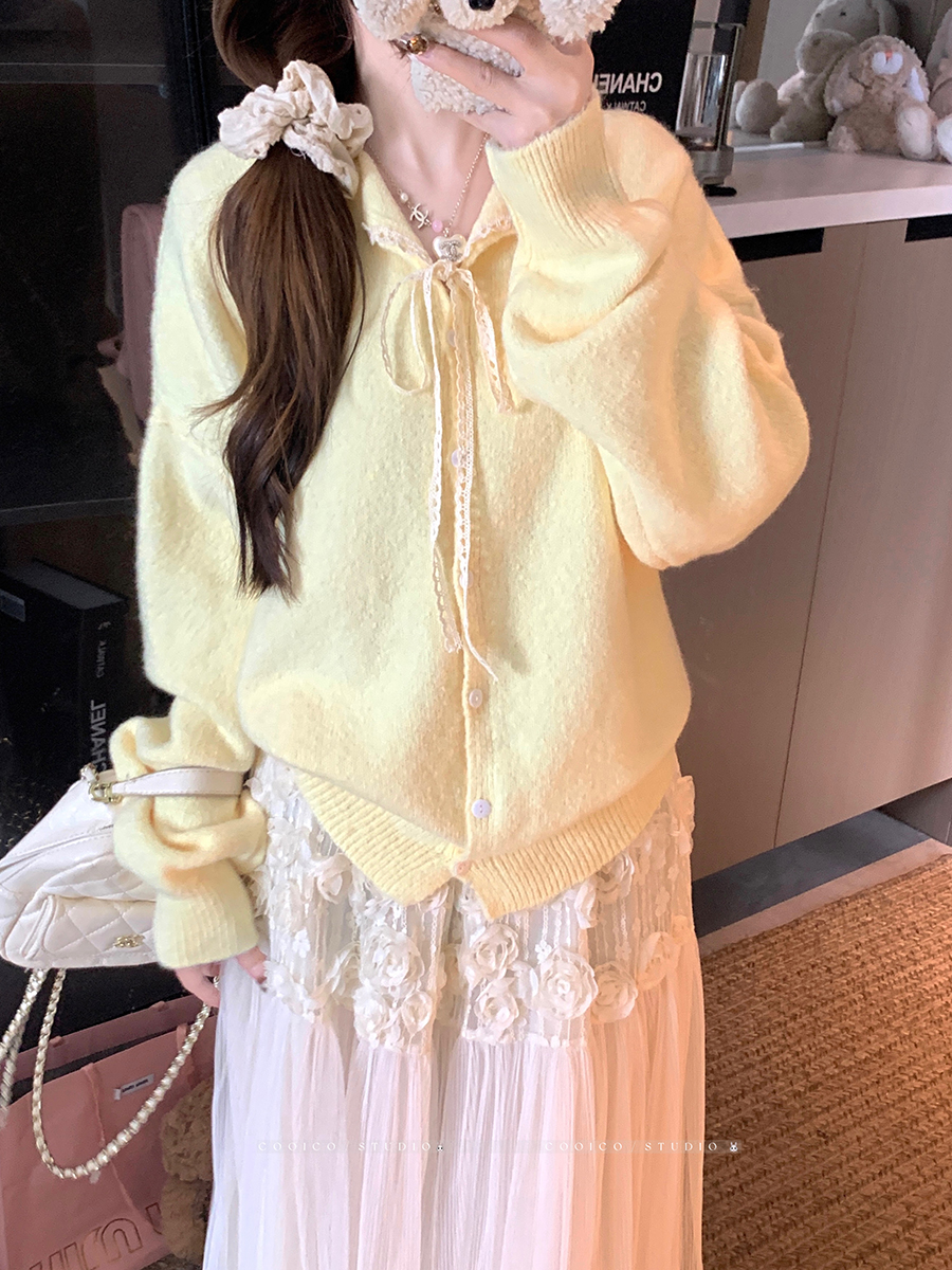 大碼微胖慵懶風蕾絲毛衣女2025新款秋季軟糯休閒長袖針織開衫上衣