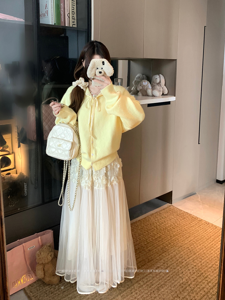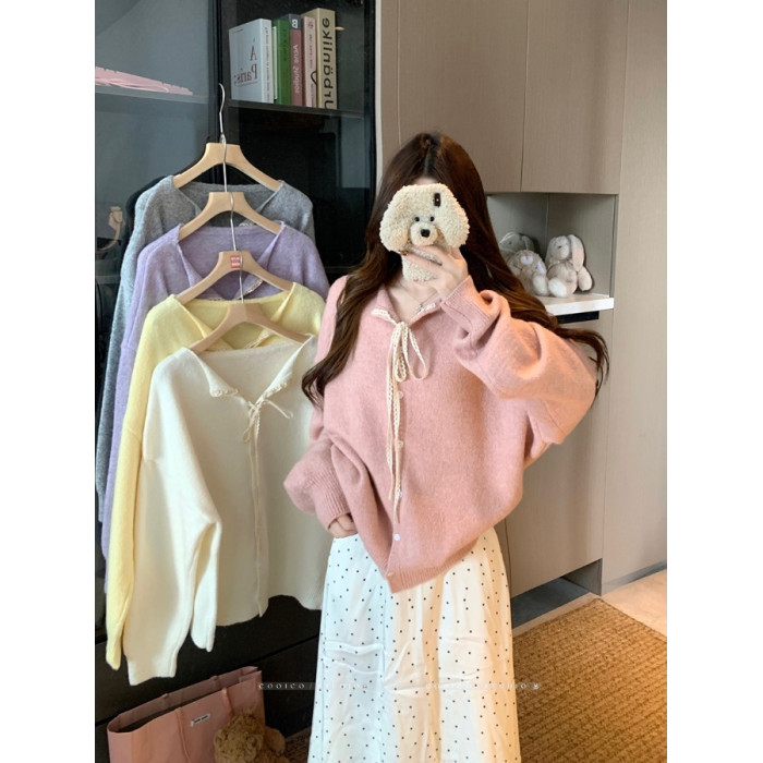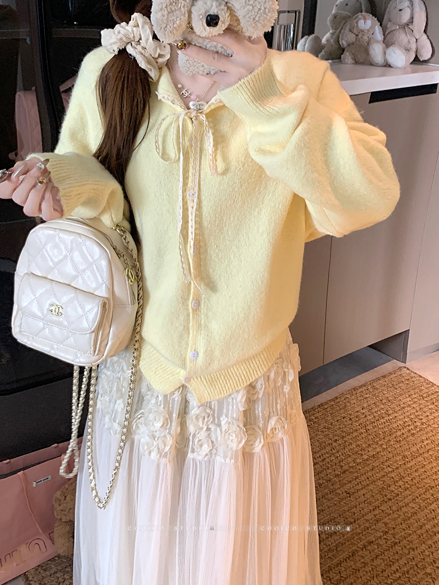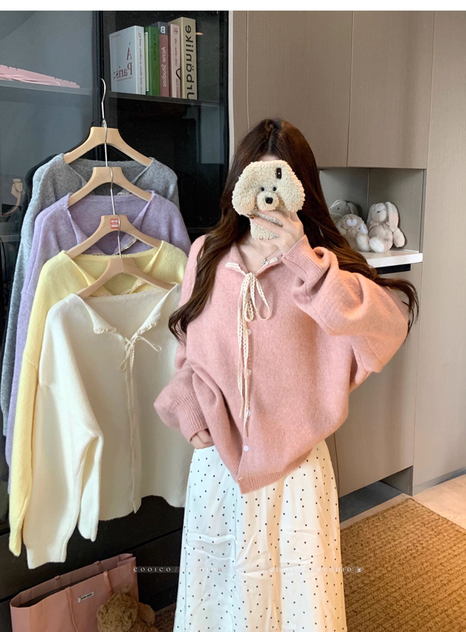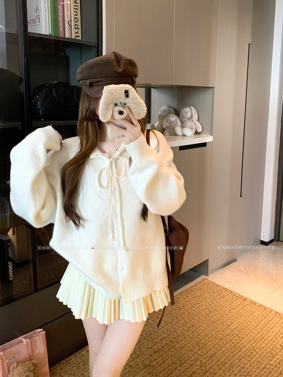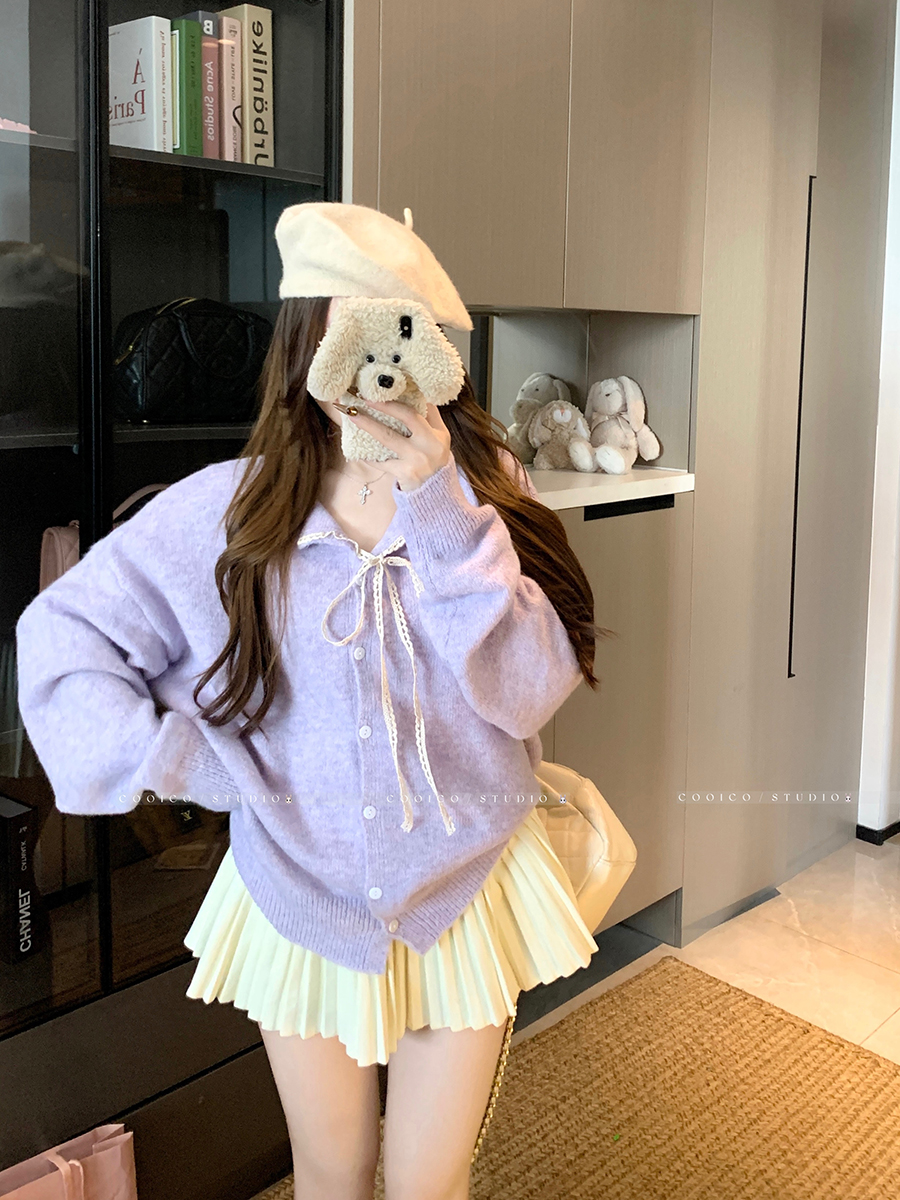 大碼微胖慵懶風蕾絲毛衣女2025新款秋季軟糯休閒長袖針織開衫上衣