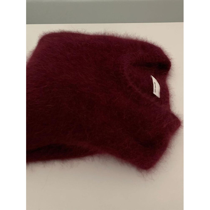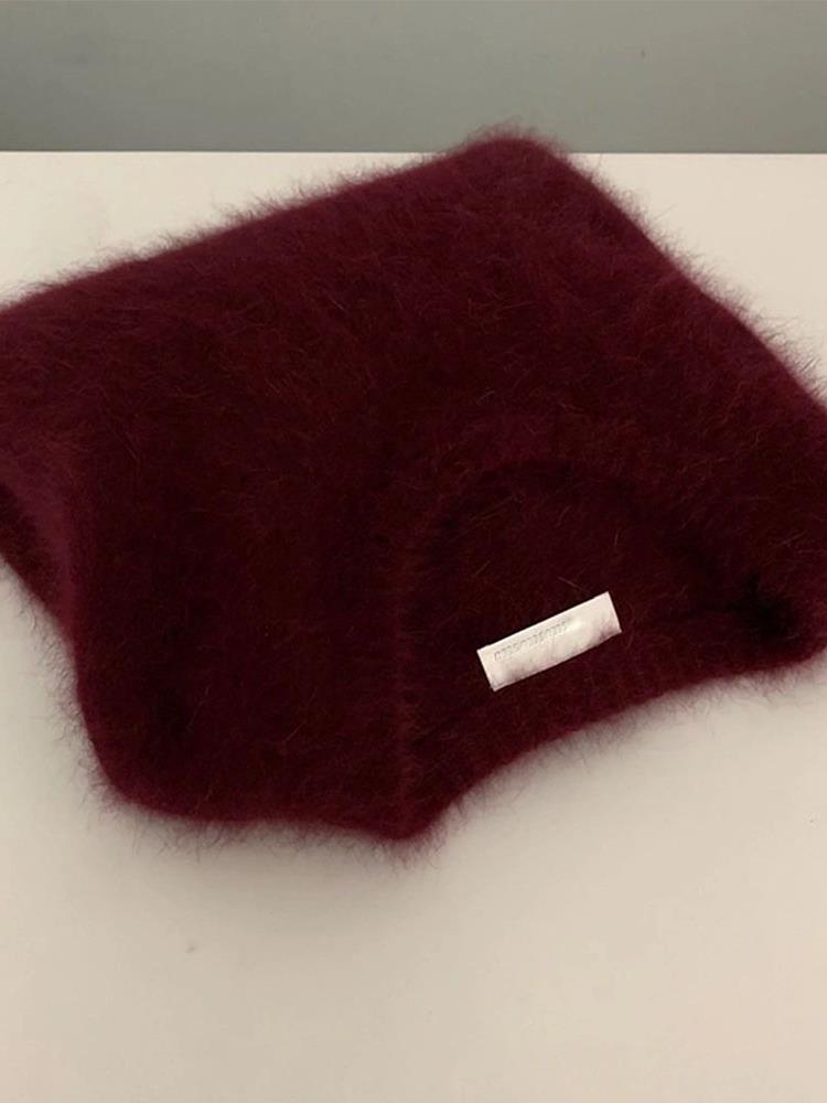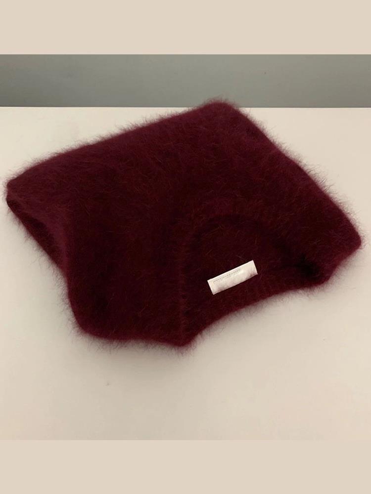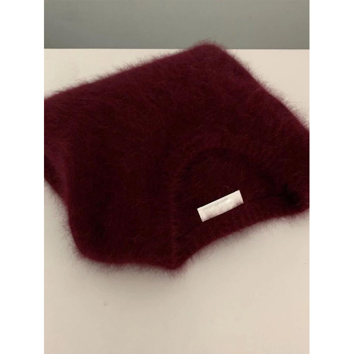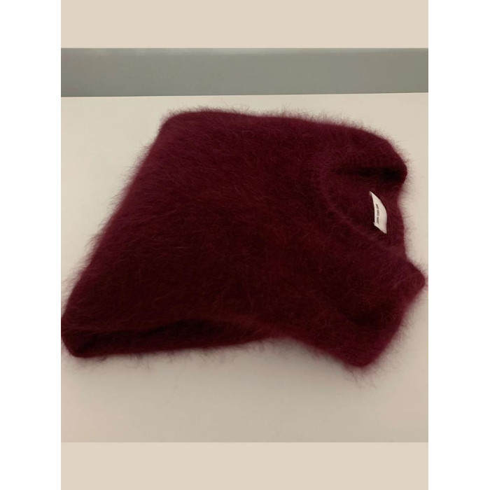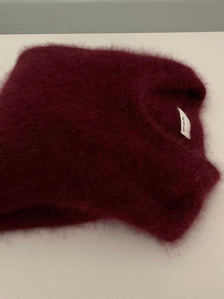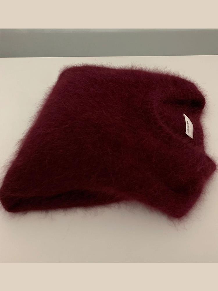 酒紅色復古圓領水貂絨毛衣女秋冬新款高級感超好看慵懶軟糯針織衫