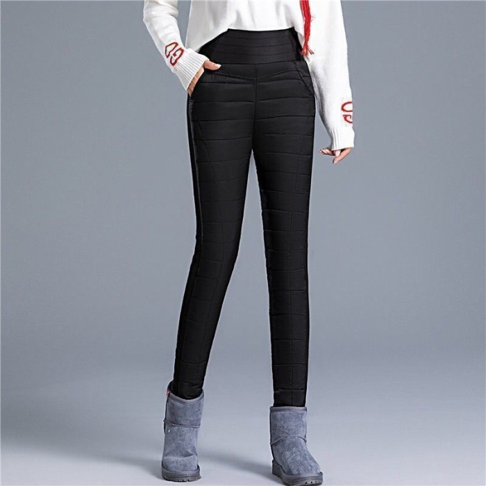 羽絨棉褲女彈力修身韓版加厚抗寒冬季外穿高腰新款女士保暖棉褲女
