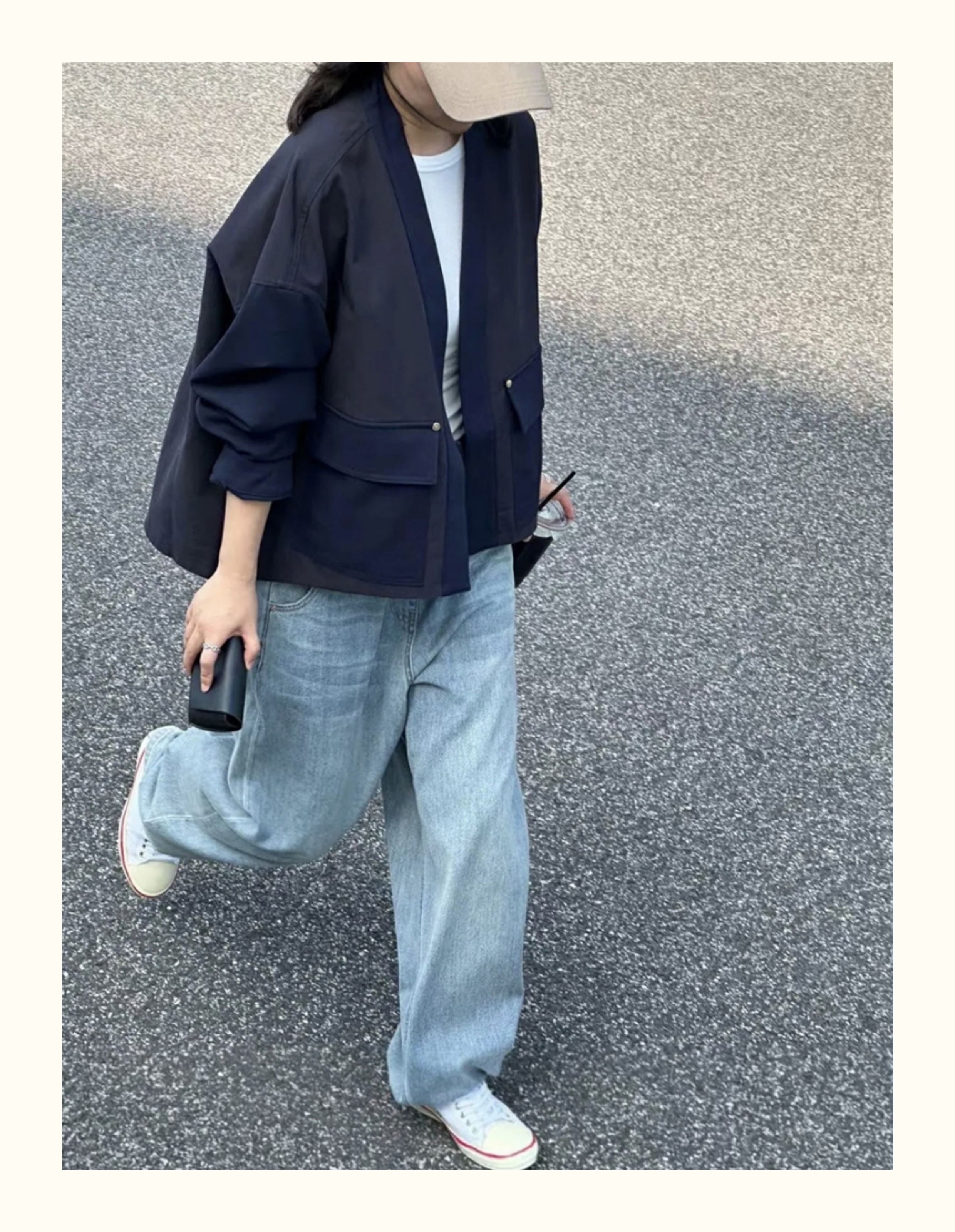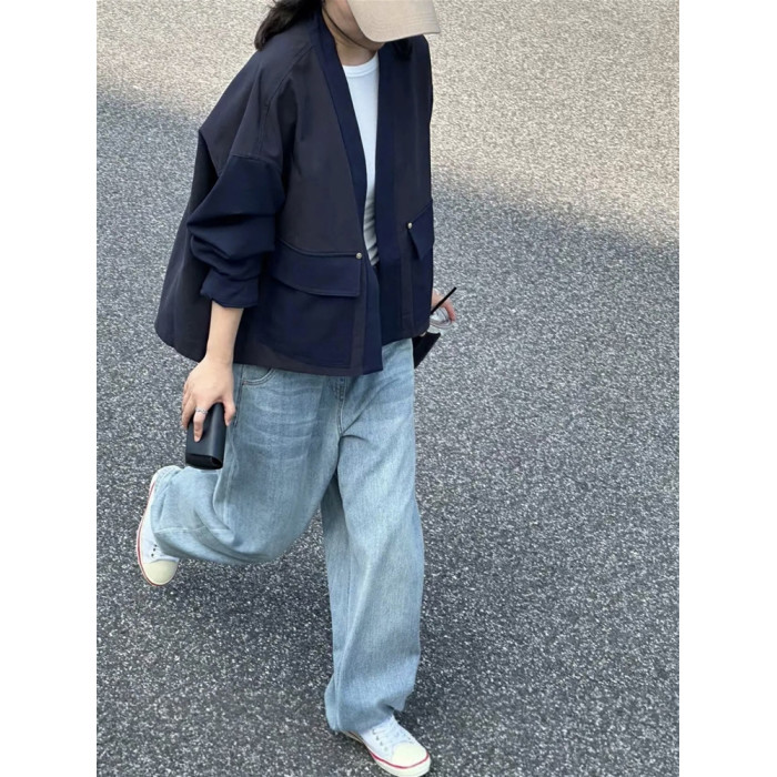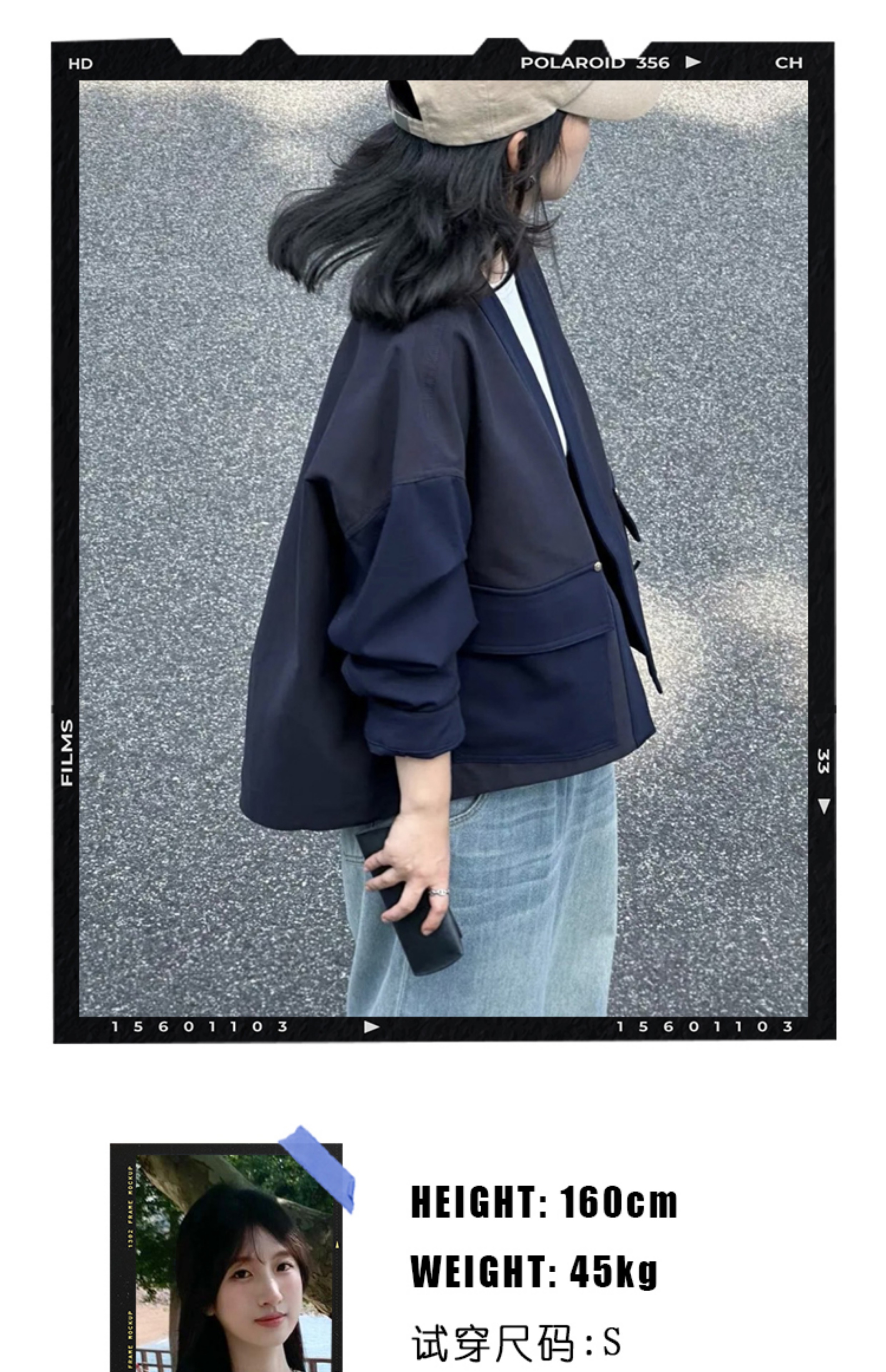 日系復古寬松V領小個子夾克外套女秋季高級感氣質工裝風短款上衣
